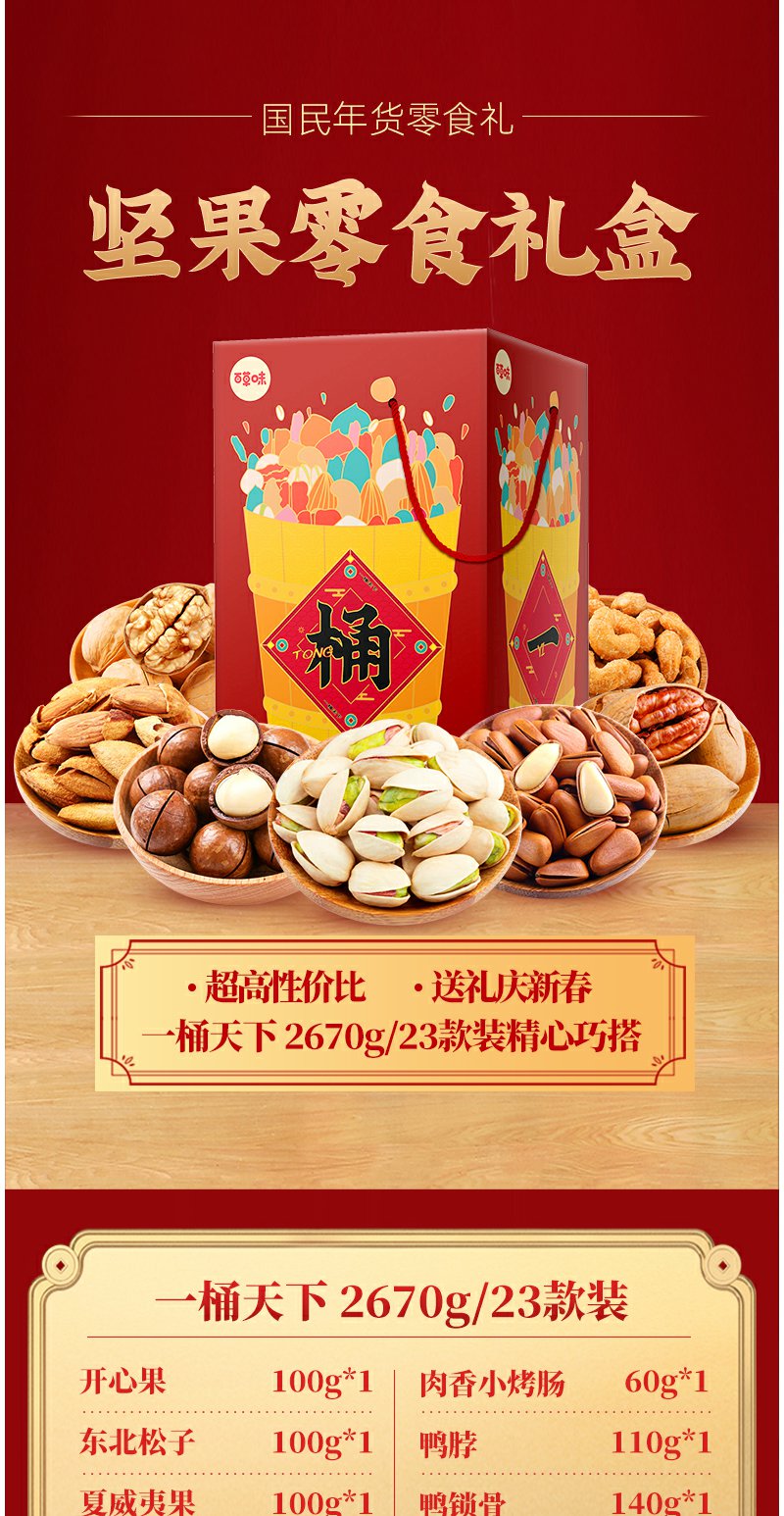 百草味 零食大礼包 混合干果零食礼盒 一桶天下 2670g