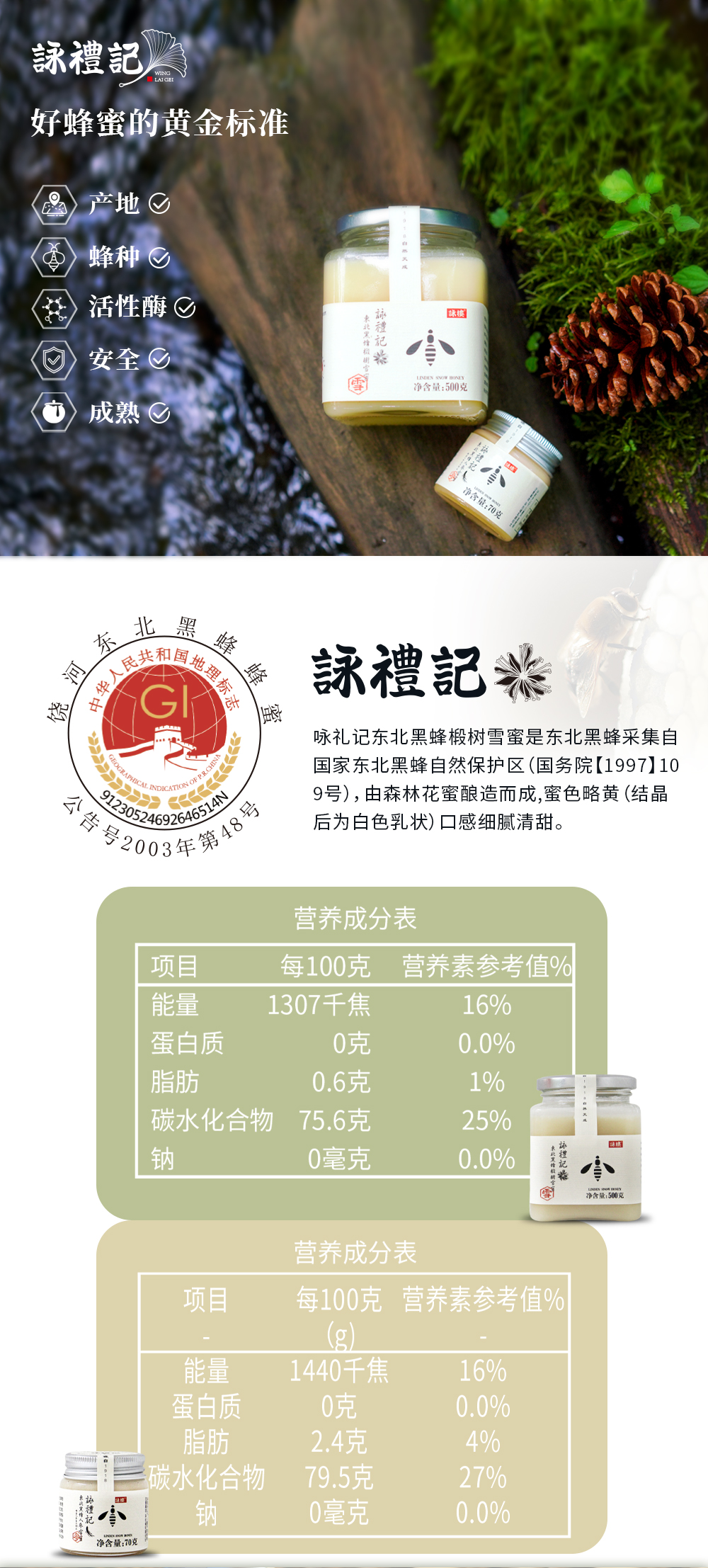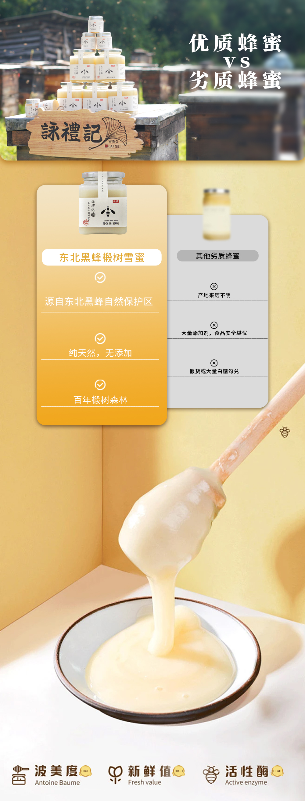【咏礼记黑蜂椴树雪蜜】国家地理标识认证蜂蜜,奶油冰激凌口感固态蜜!