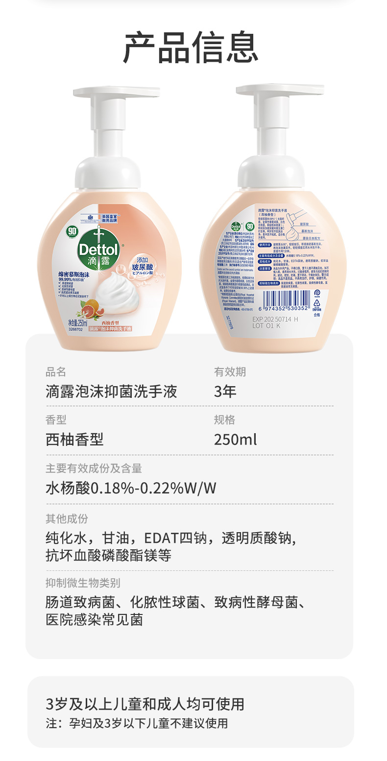 Dettol滴露 泡沫洗手液 250ml (西柚/青柠/花香)