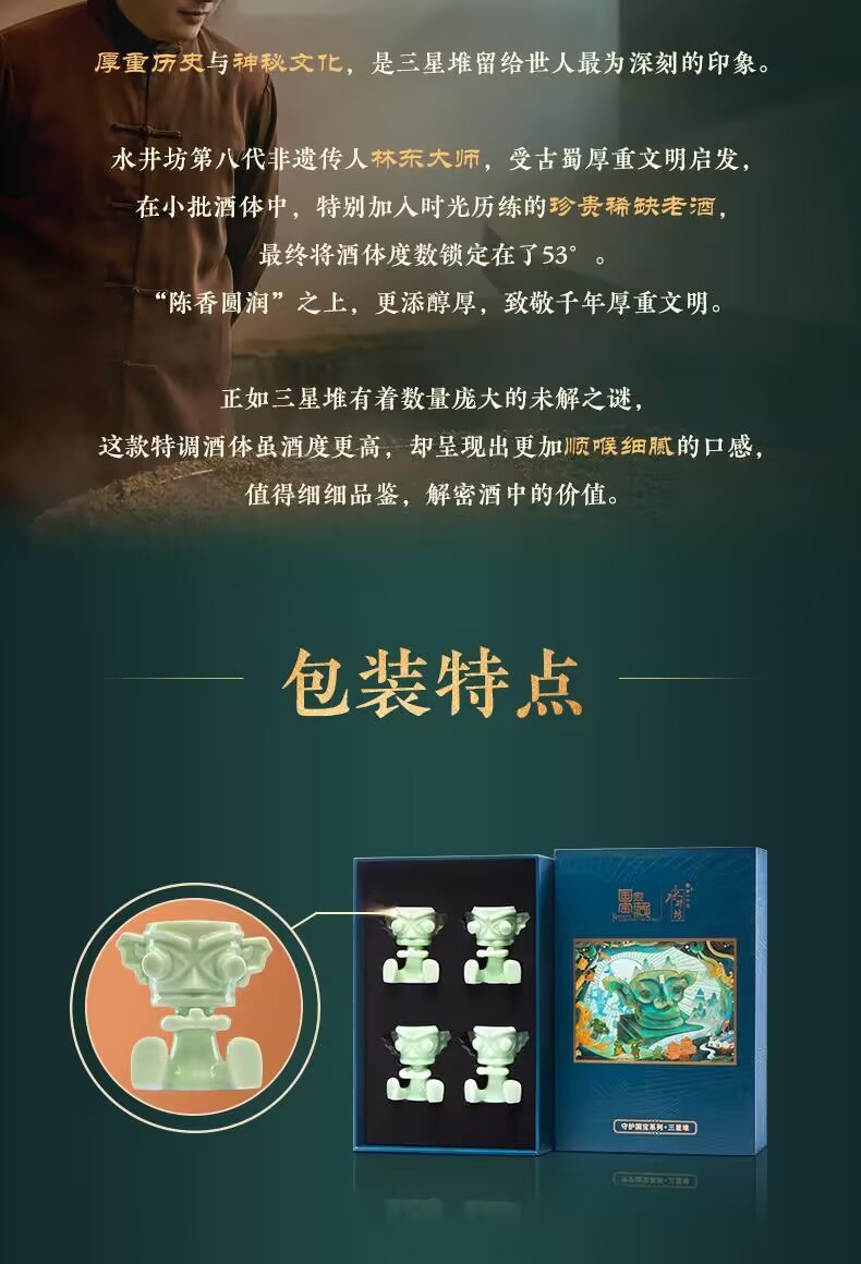 【2022年】水井坊 三星堆 单瓶礼盒(带酒具)浓香型 53度 500ml
