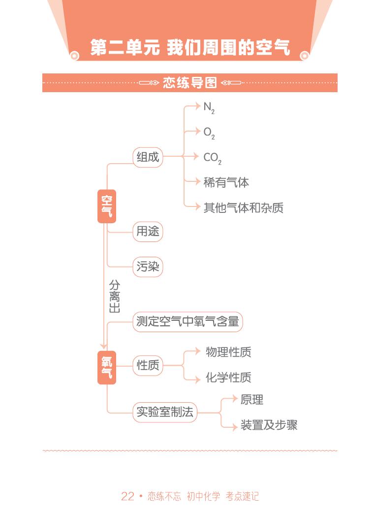 本书栏目主要包括:恋练导图、恋练速记、巧学妙记、恋练真题、实验活动。“恋练导图”位于每单元的起始页,导图梳理了本单元的知识架构,帮助学生建立知识体系。“恋练速记”对每一课题的重点知识和常考考点进行总结、提炼,帮助学生完善化学知识网络。“巧学妙记”总结了易混、易错知识的记忆口诀和学习方法,帮助学生补全知识漏洞。“恋练真题”中选用与课题中的内容高度相关的近年的典型中考真题,并对题目进行解析,帮助学生熟悉中考考法和解题方法。“实验活动”中总结了常考实验的实验装置、实验步骤、实验操作注意事项和实验常见问题等内容,助力学生补齐实验短板。