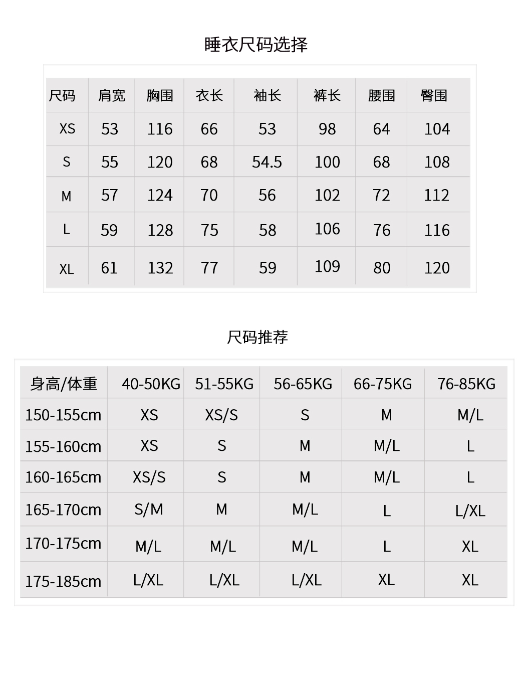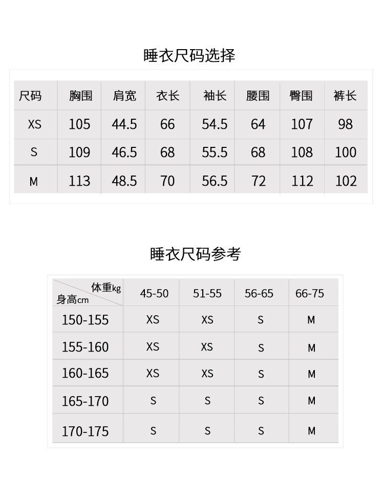 睡衣尺码选择👇