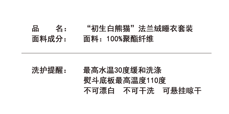 🔔白熊猫睡衣的尺码选择为XS-XL
