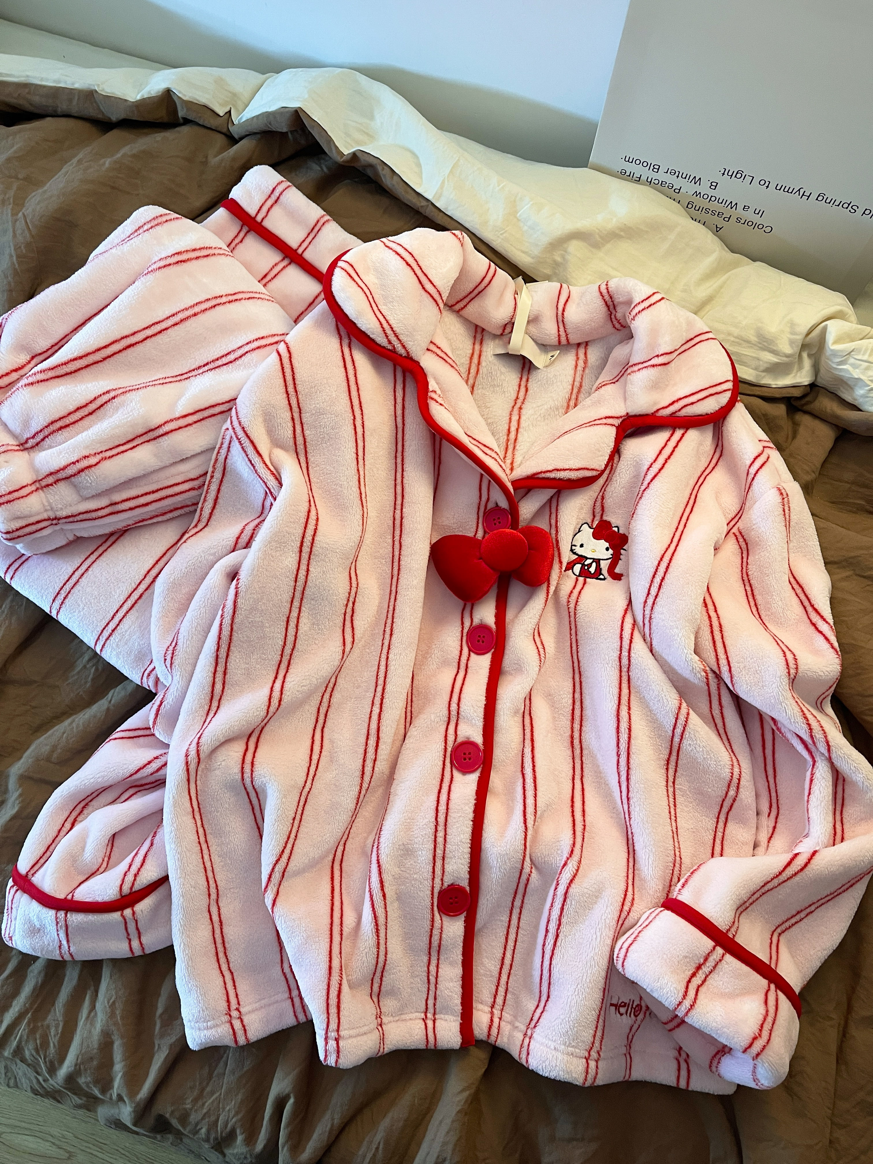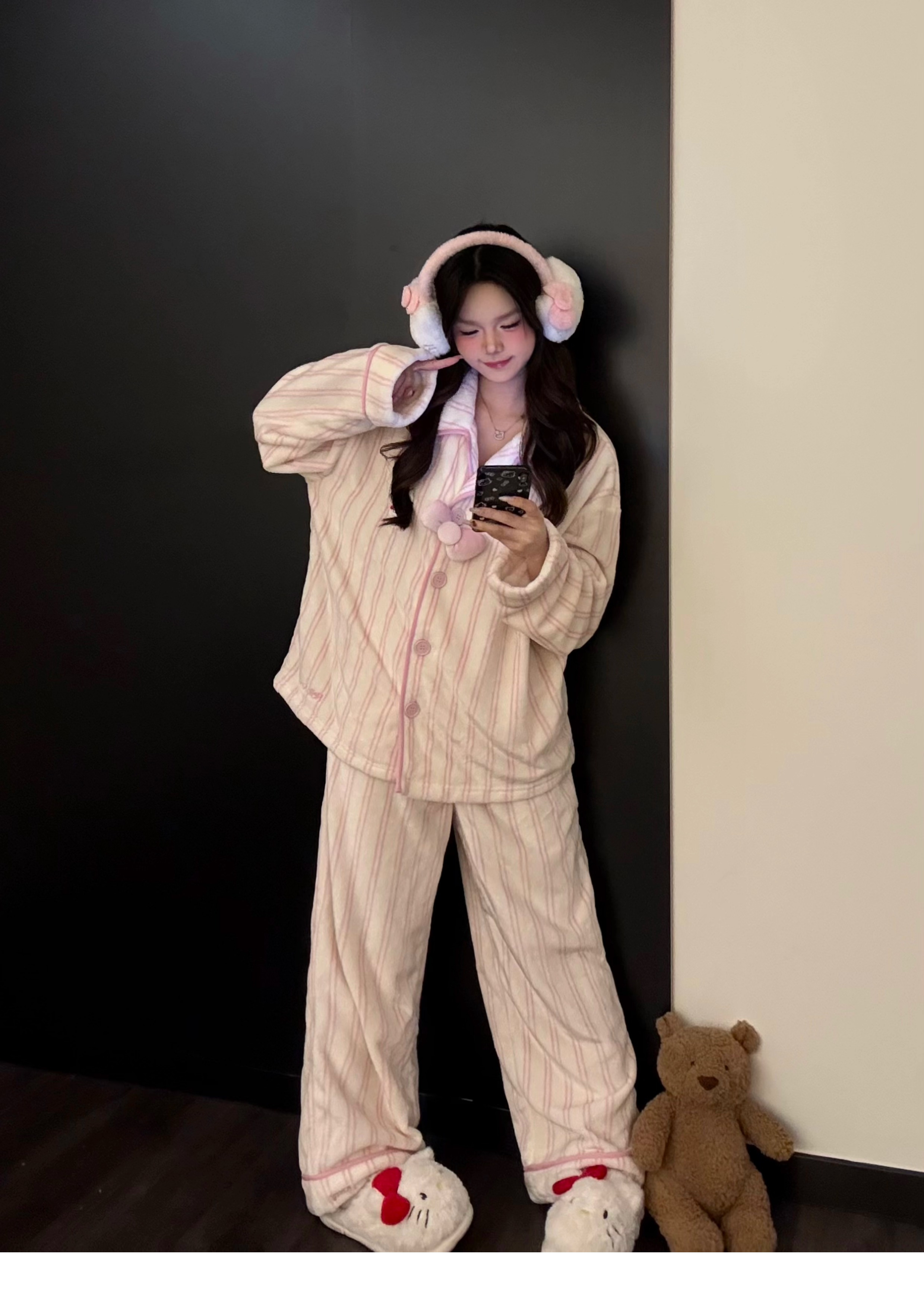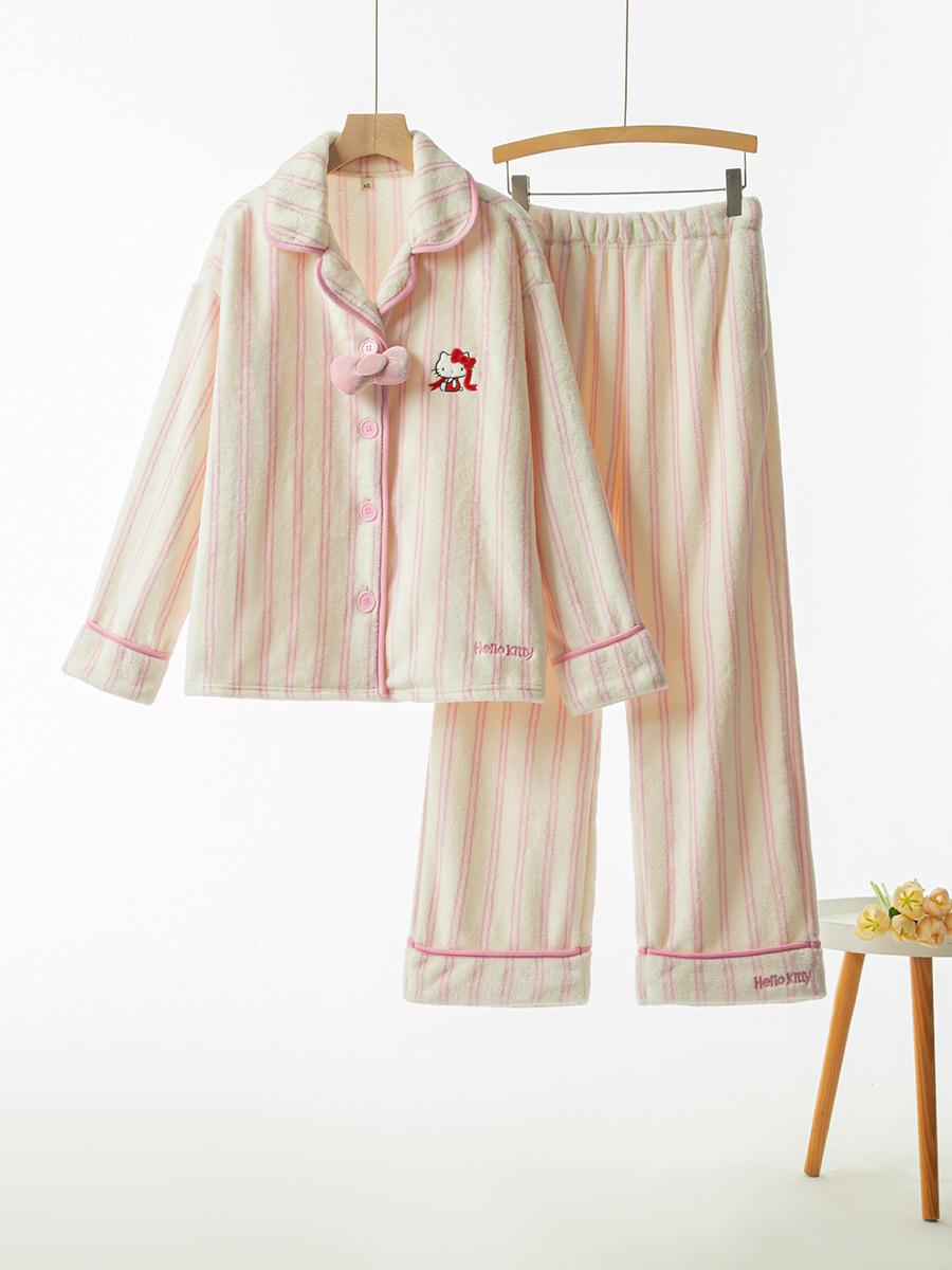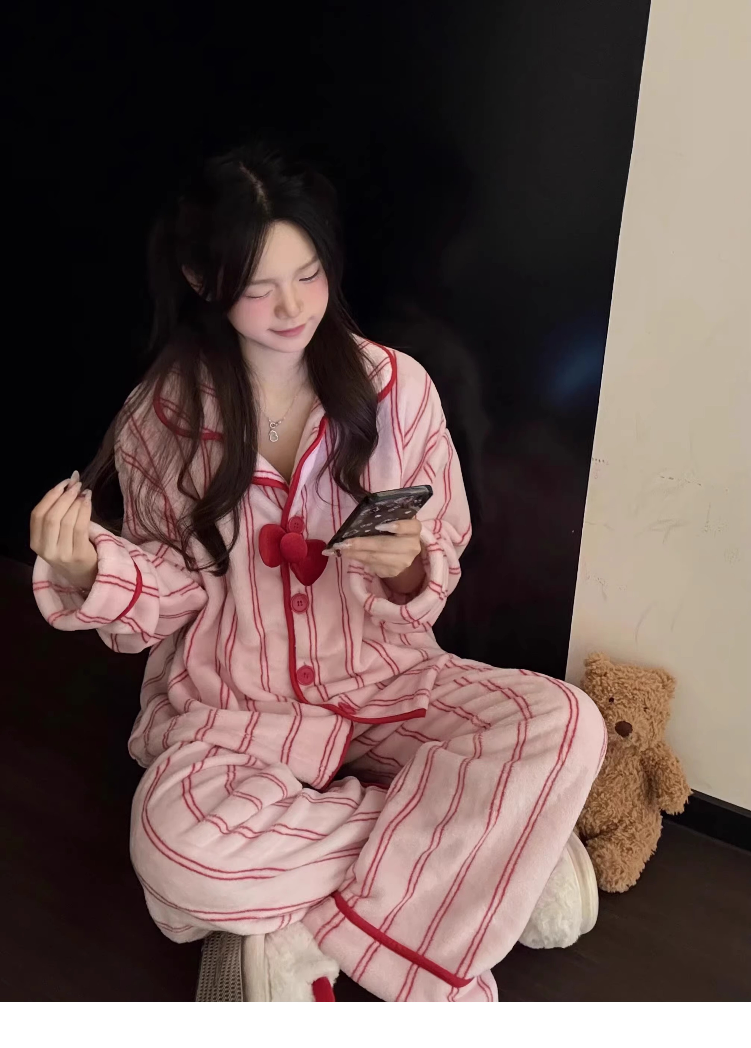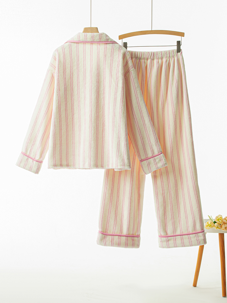 “野S派同款来啦”🔥超软糯法兰绒条纹家居服 暖冬必入🎀秋冬可外穿翻领睡衣 高颜值可爱家居服!轻盈又温暖