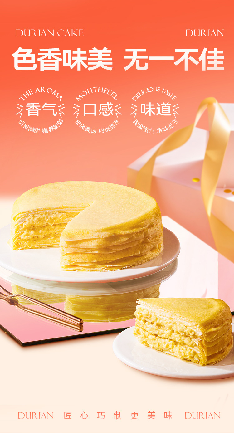 蛋糕铺上了三层厚厚的榴莲果肉❗❗❗不添加任何香精,入口的每一瞬间都是来自大自然的甜与鲜,美食带来的满足感足够跨越时空的屏障,把快乐带给每一个需要的人