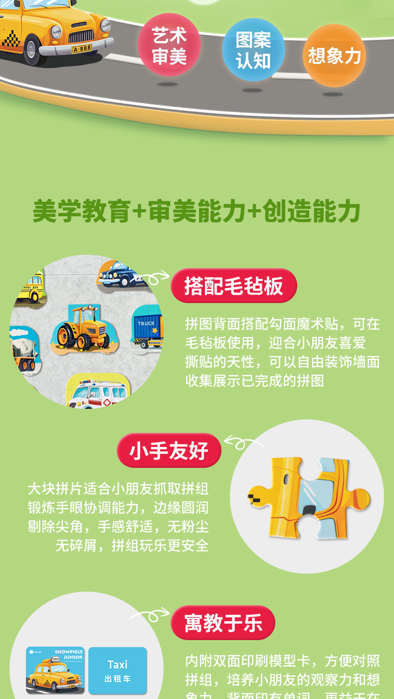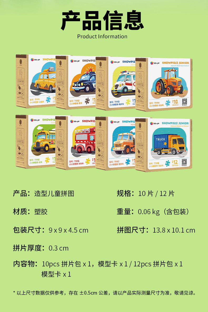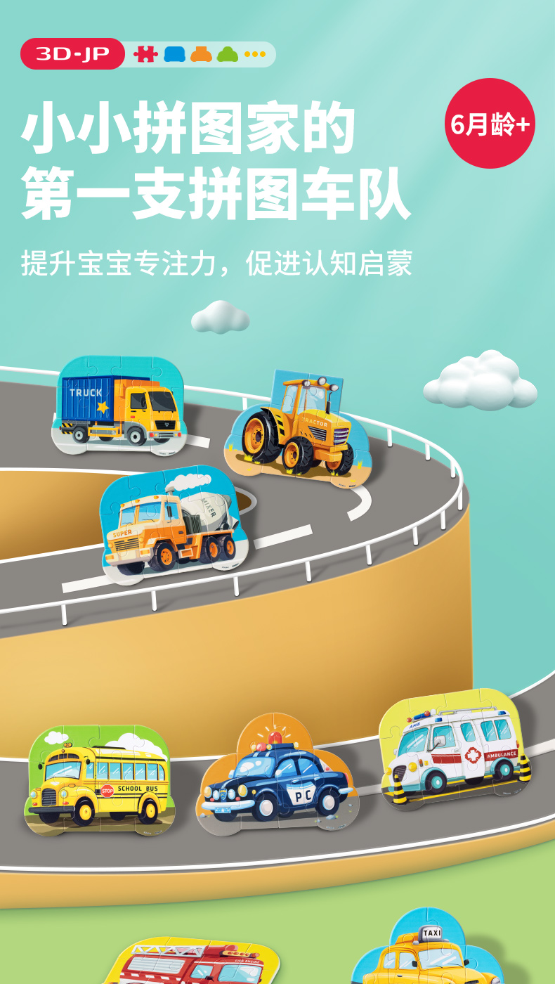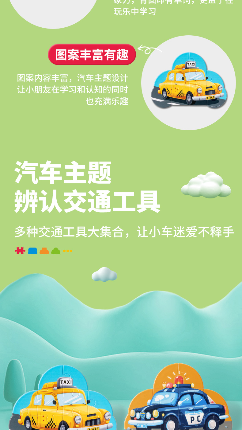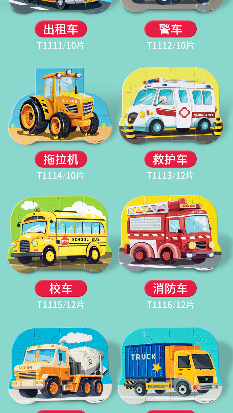 10-12片 单个造型儿童拼图 - 小小拼图家 车系列