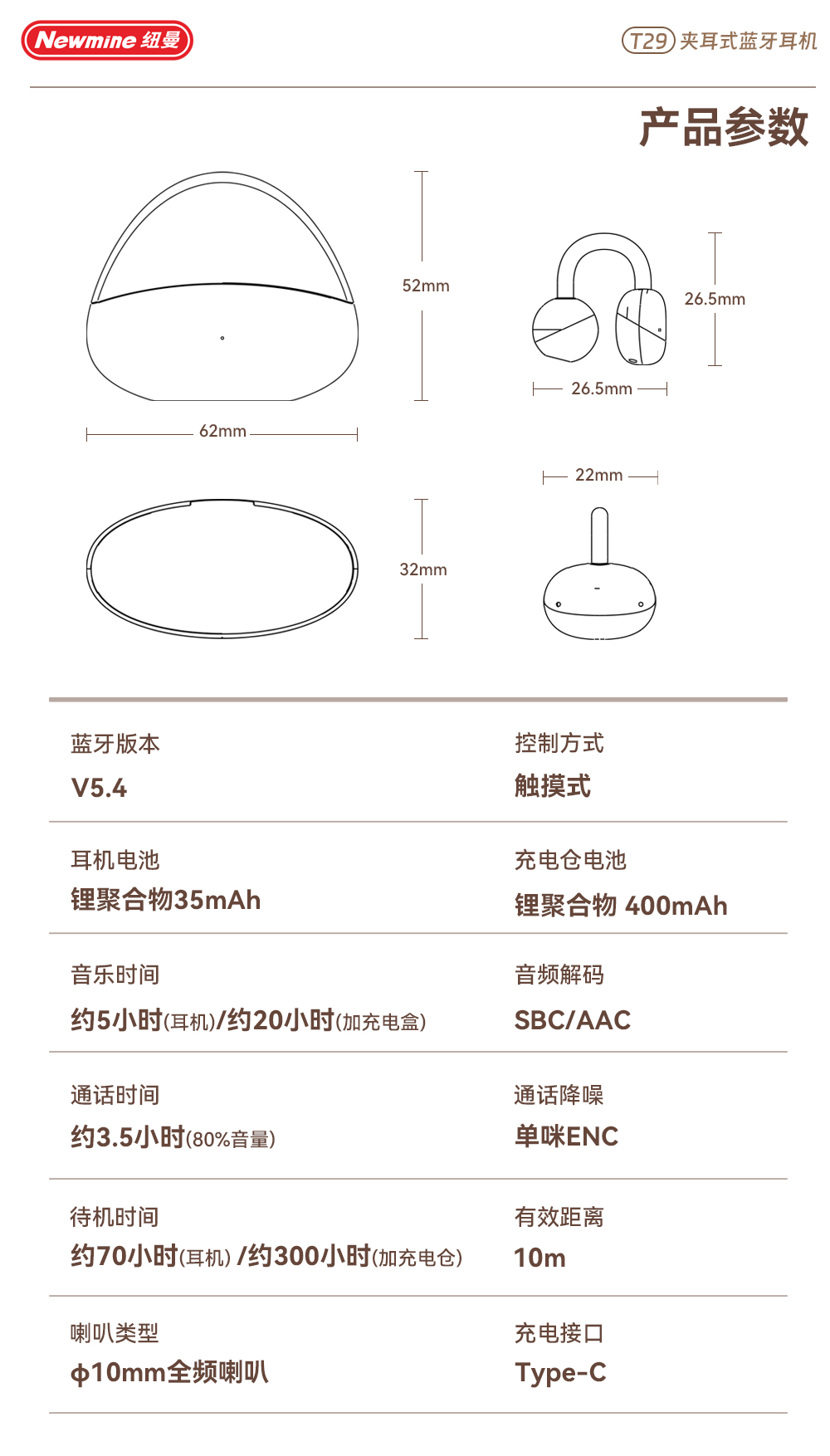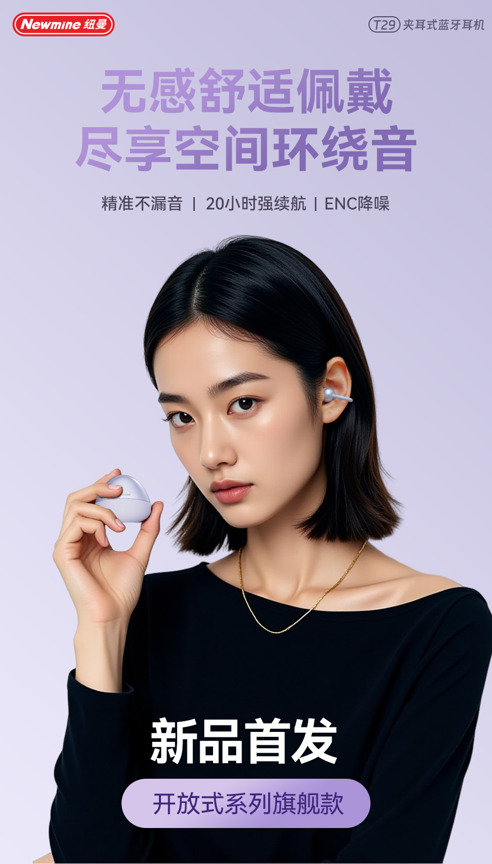 优选丨纽曼ows T29夹耳式无线蓝牙耳机
