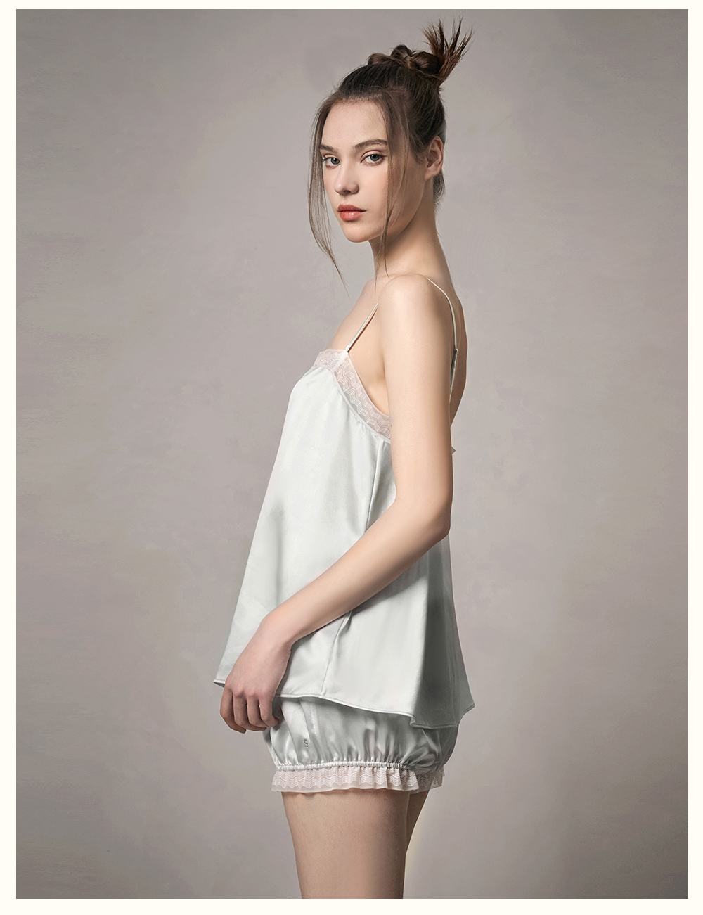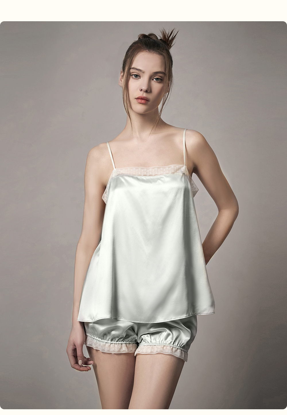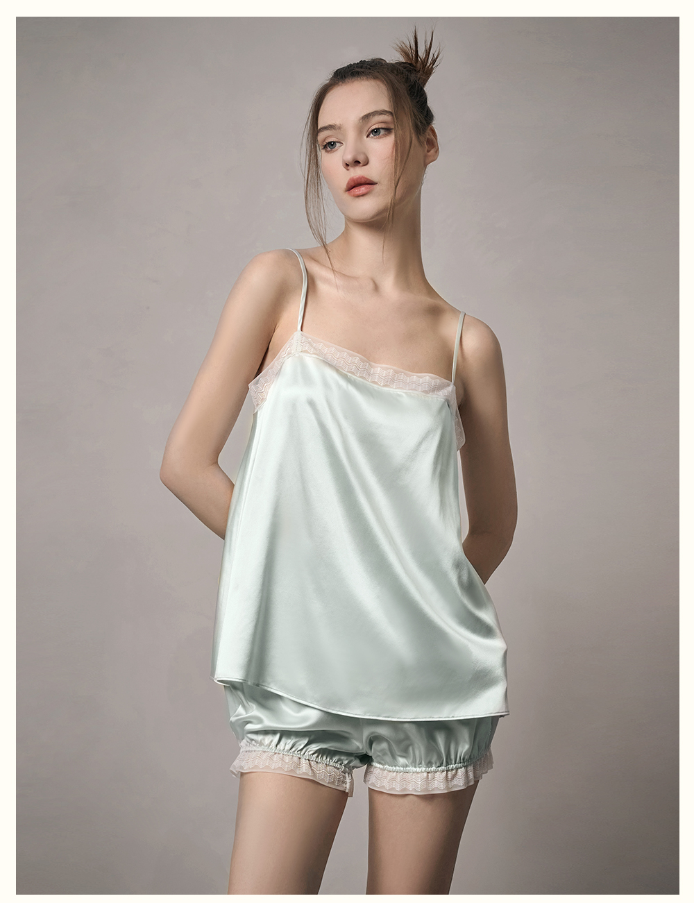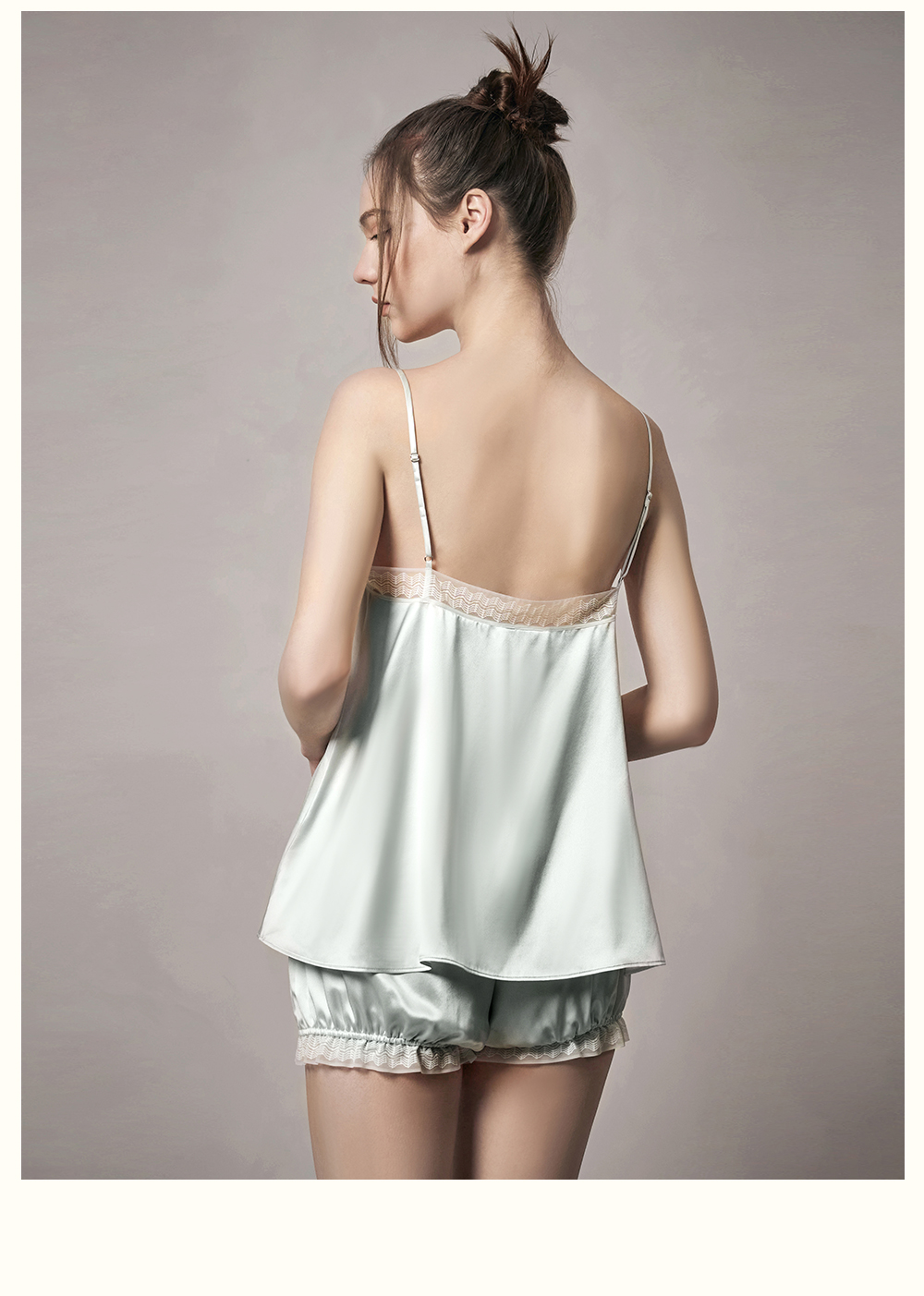 Solo seta22姆米真丝吊带短裤睡衣套装女桑蚕丝纯色秋冬家居服