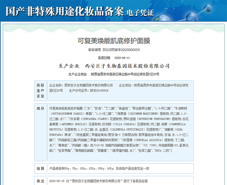 可复美焕能肌底修护面膜 165g (有效期24年8月至12月随机)