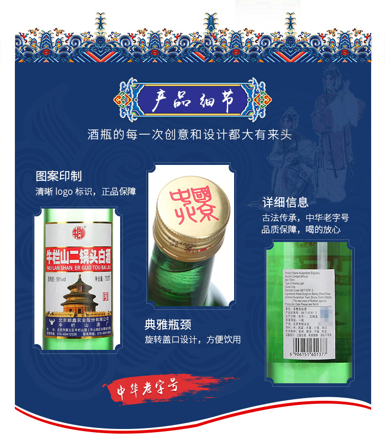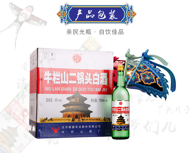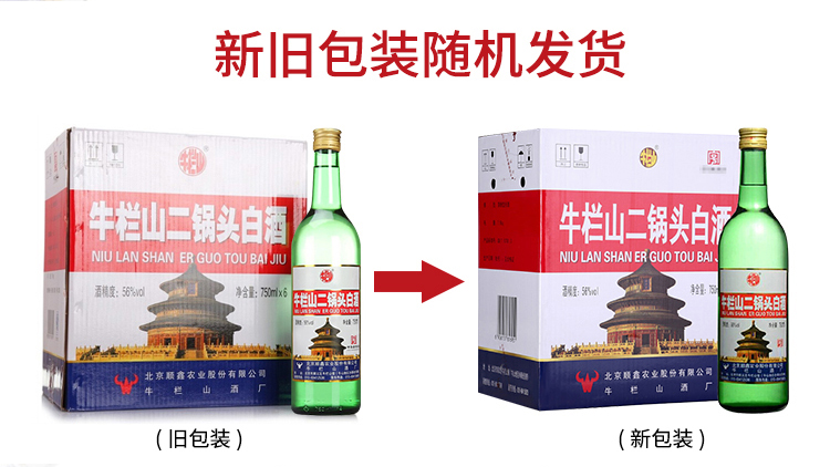 【现货】牛栏山 出口型二锅头 美国大瓶 56度 750ml x6 整箱