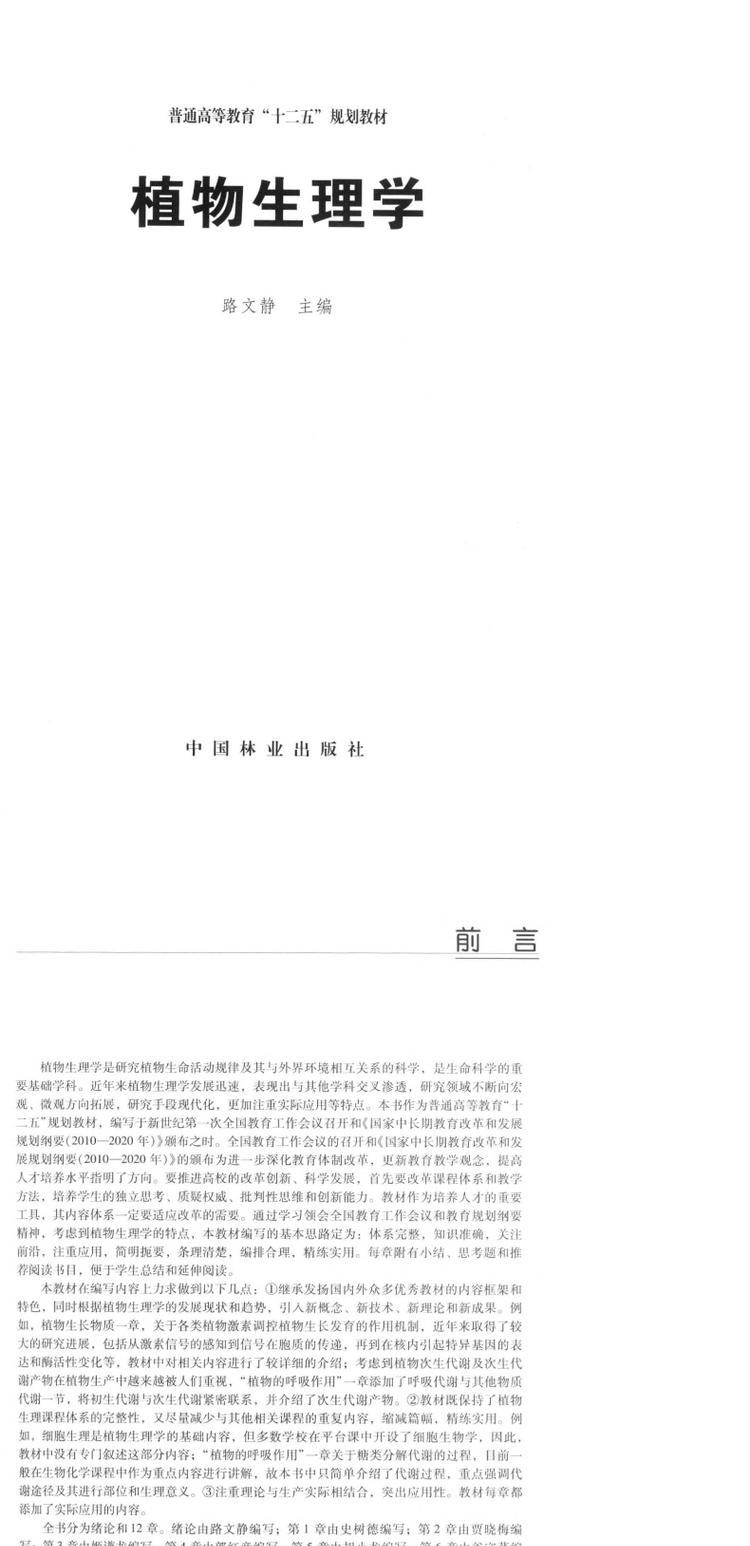植物生理学 中国林业出版社教材 6305