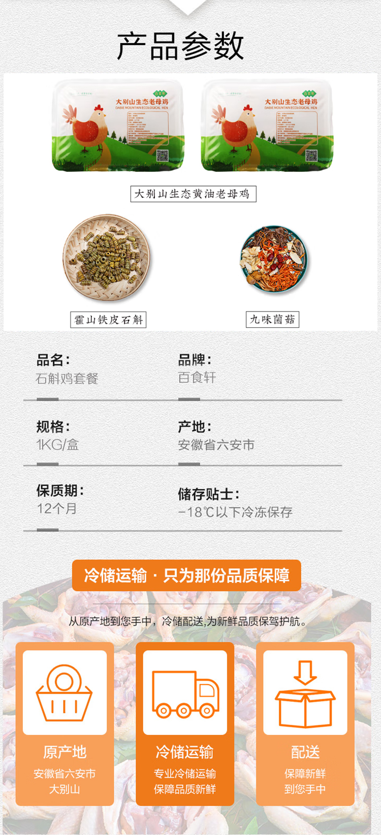 百食轩 安徽大别山石斛鸡套餐(2只装,彩箱,内有彩盒)