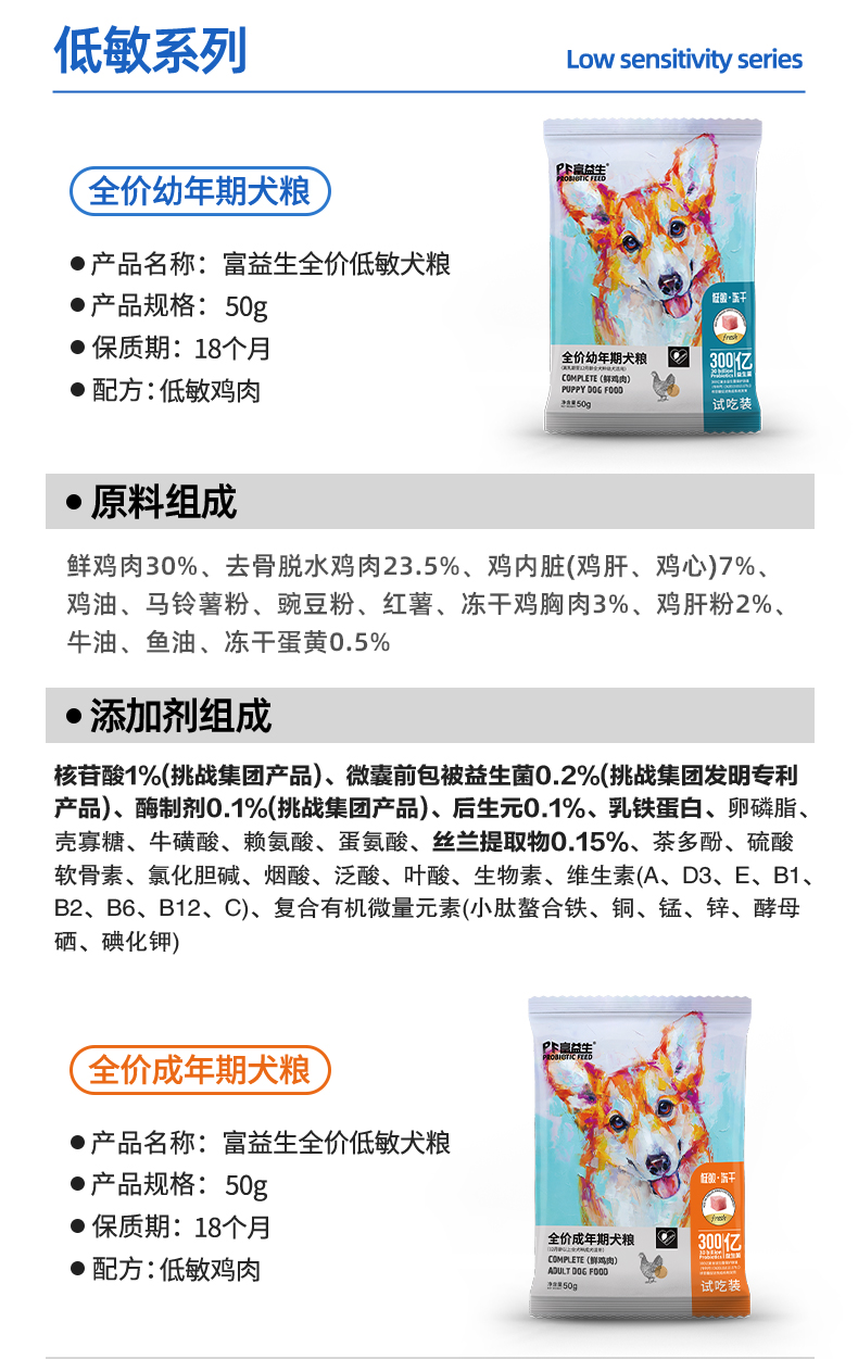 【9.9到手6件】富益生 狗狗尝鲜礼包 狗狗零食汤罐头170g*1+狗粮试吃50g*5