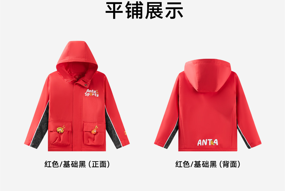安踏儿童外套男小童新年红色上衣2026春节喜庆宝宝摇粒绒厚外套352619619S