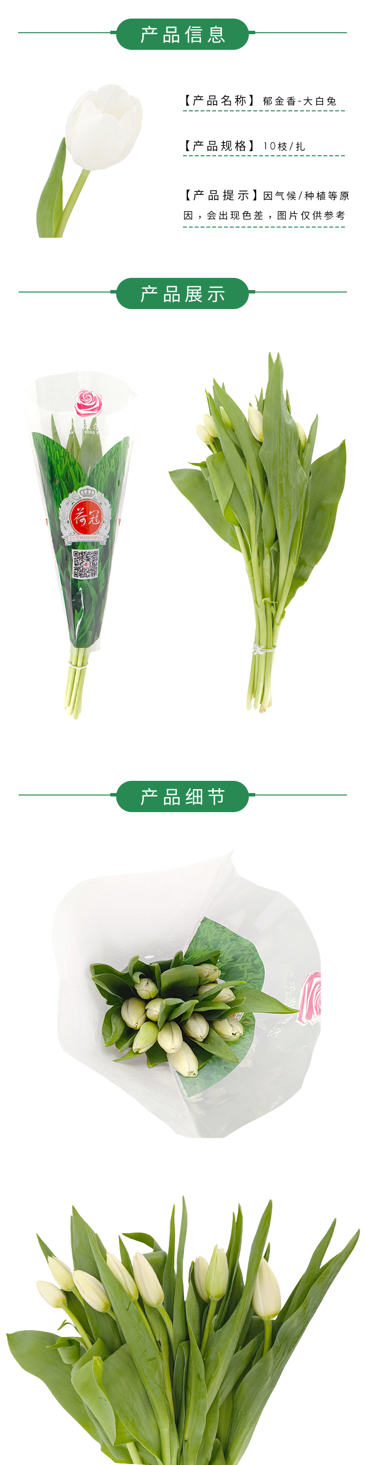 【单瓣郁金香】 大白兔 10枝一扎