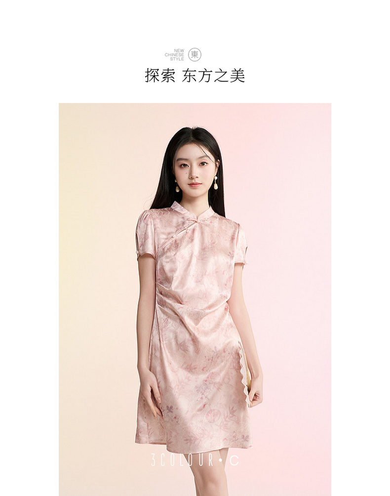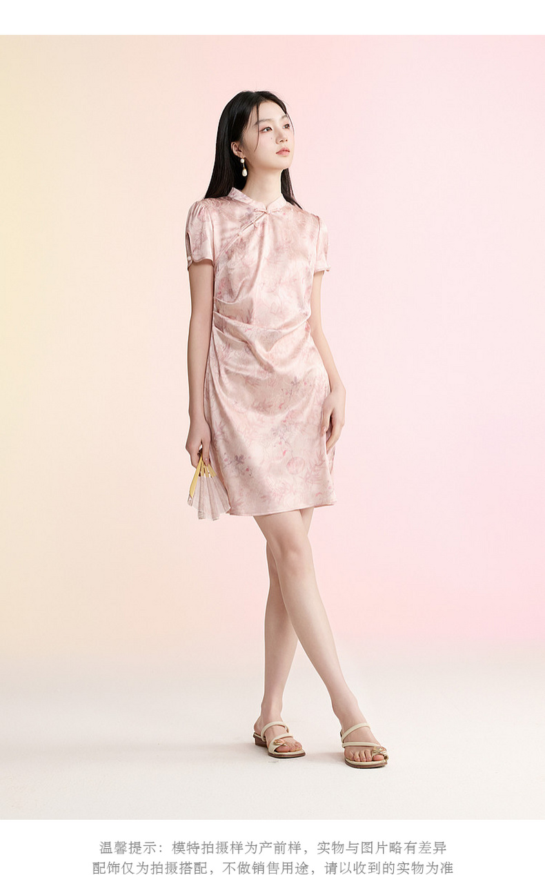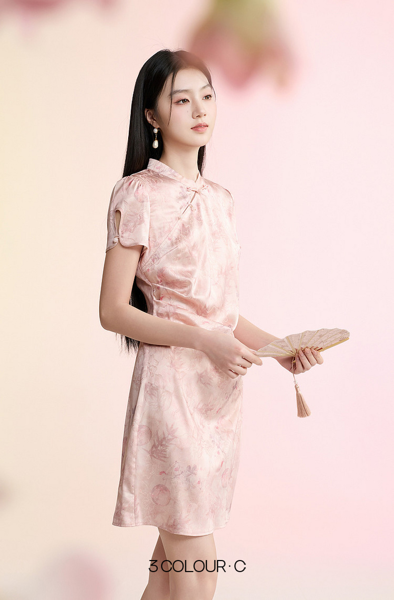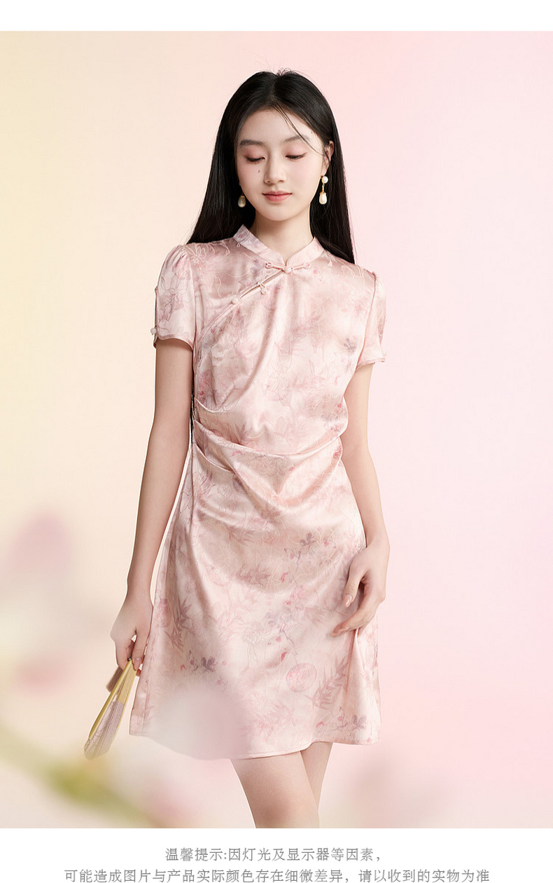 【牡丹倾城】三彩2026夏季新款立领收腰小A字短裙新中式连衣裙C