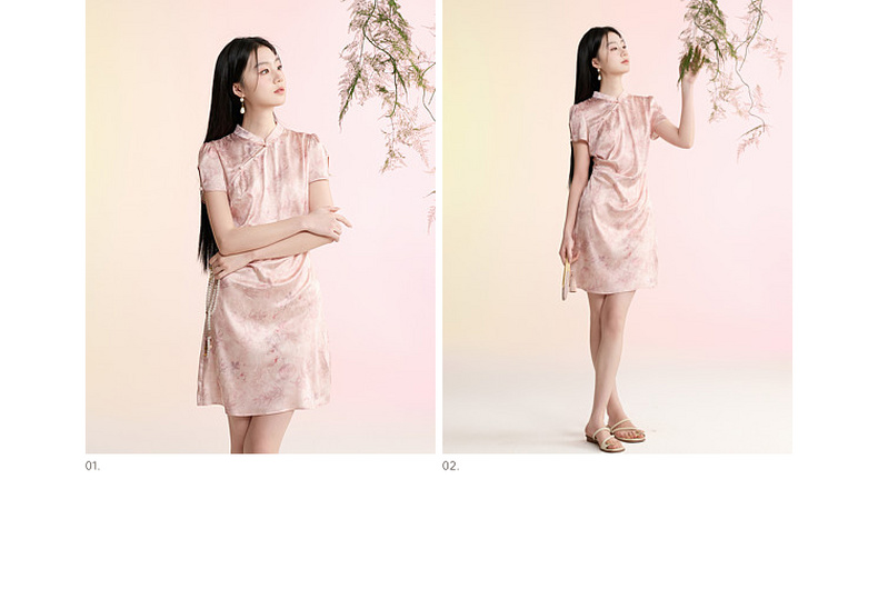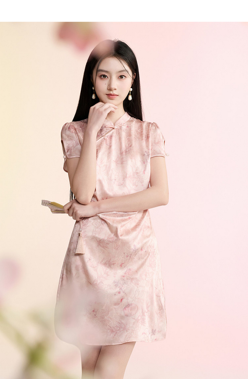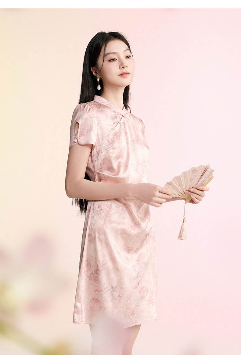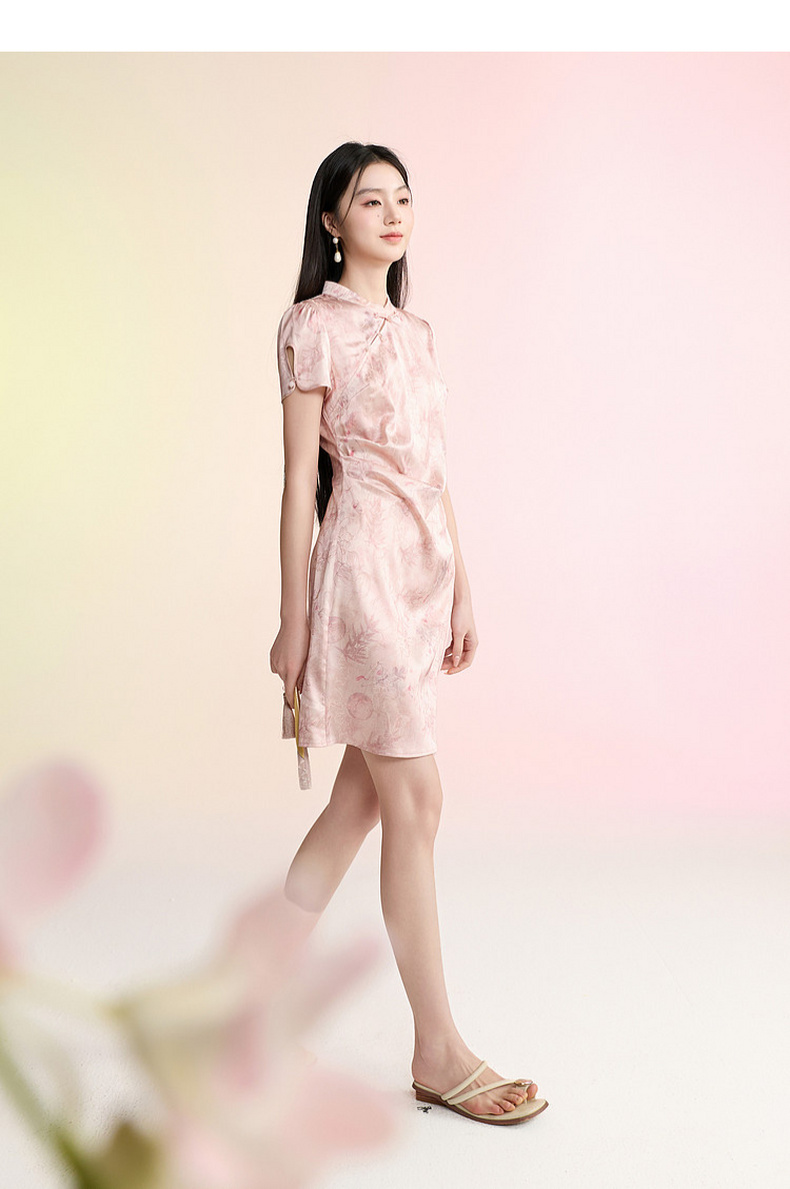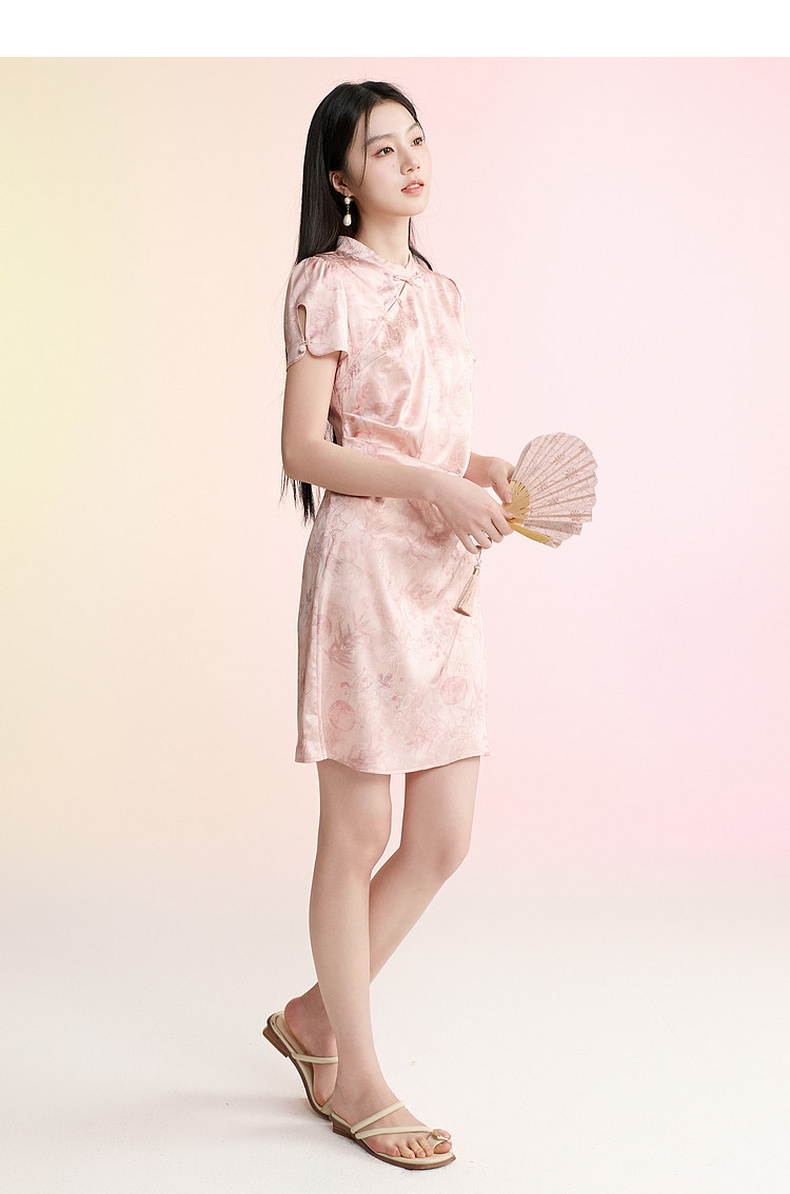 【牡丹倾城】三彩2026夏季新款立领收腰小A字短裙新中式连衣裙C