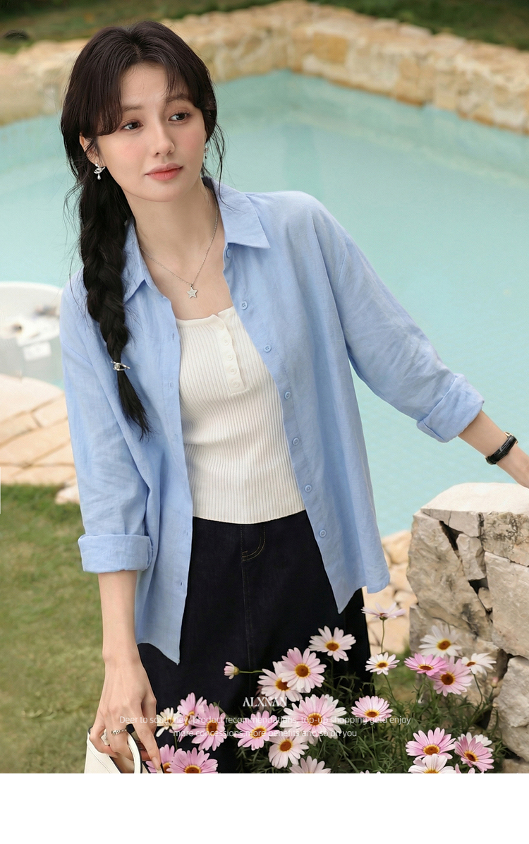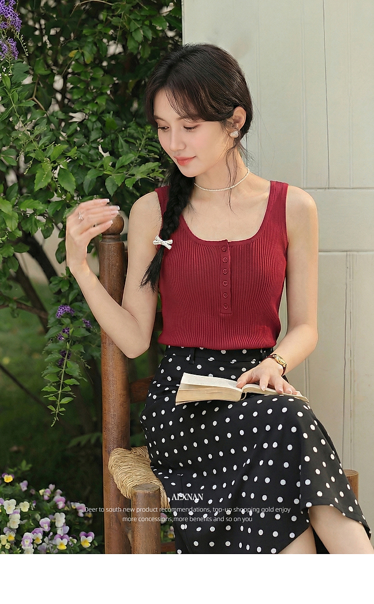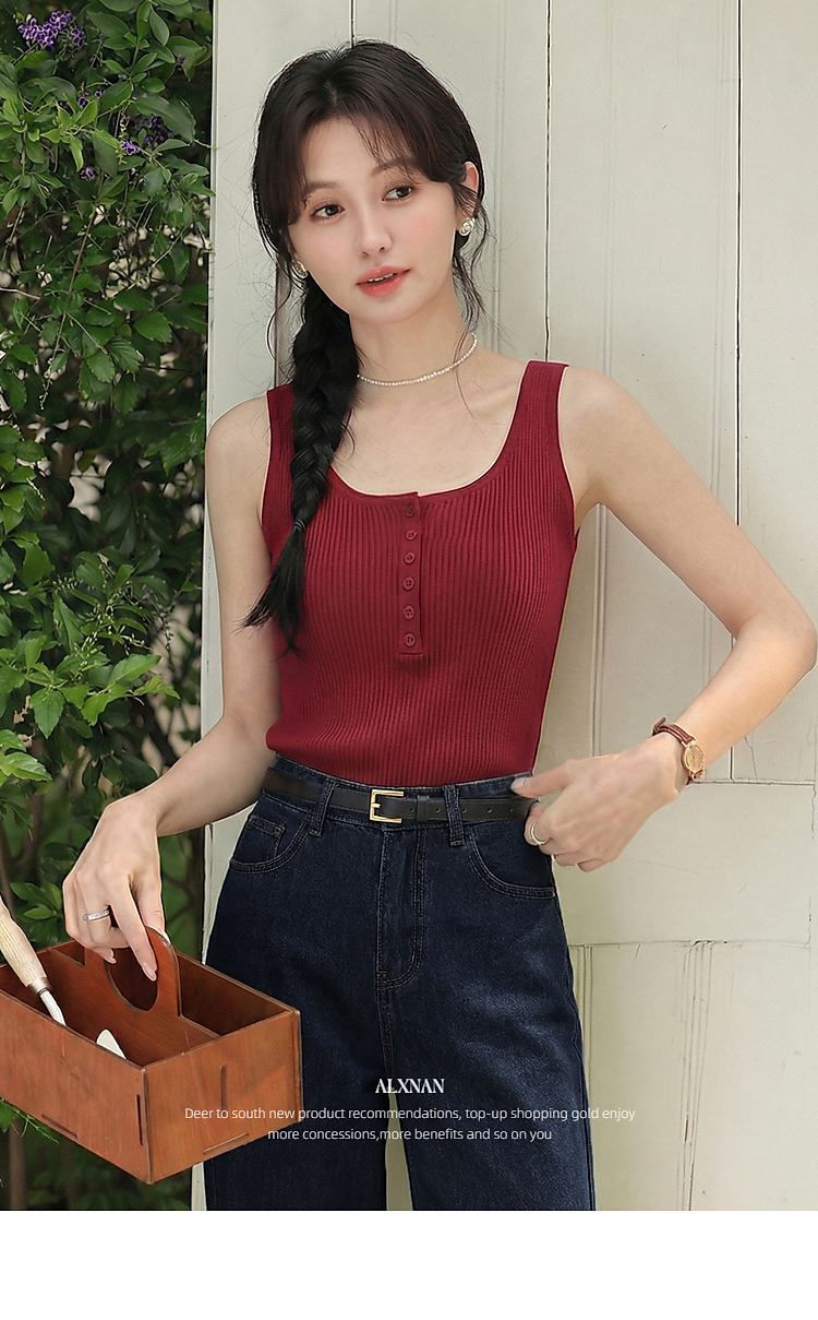 鹿向南「潮汐海岸」蓝色无袖针织背心女春季新款修身短款吊带上衣