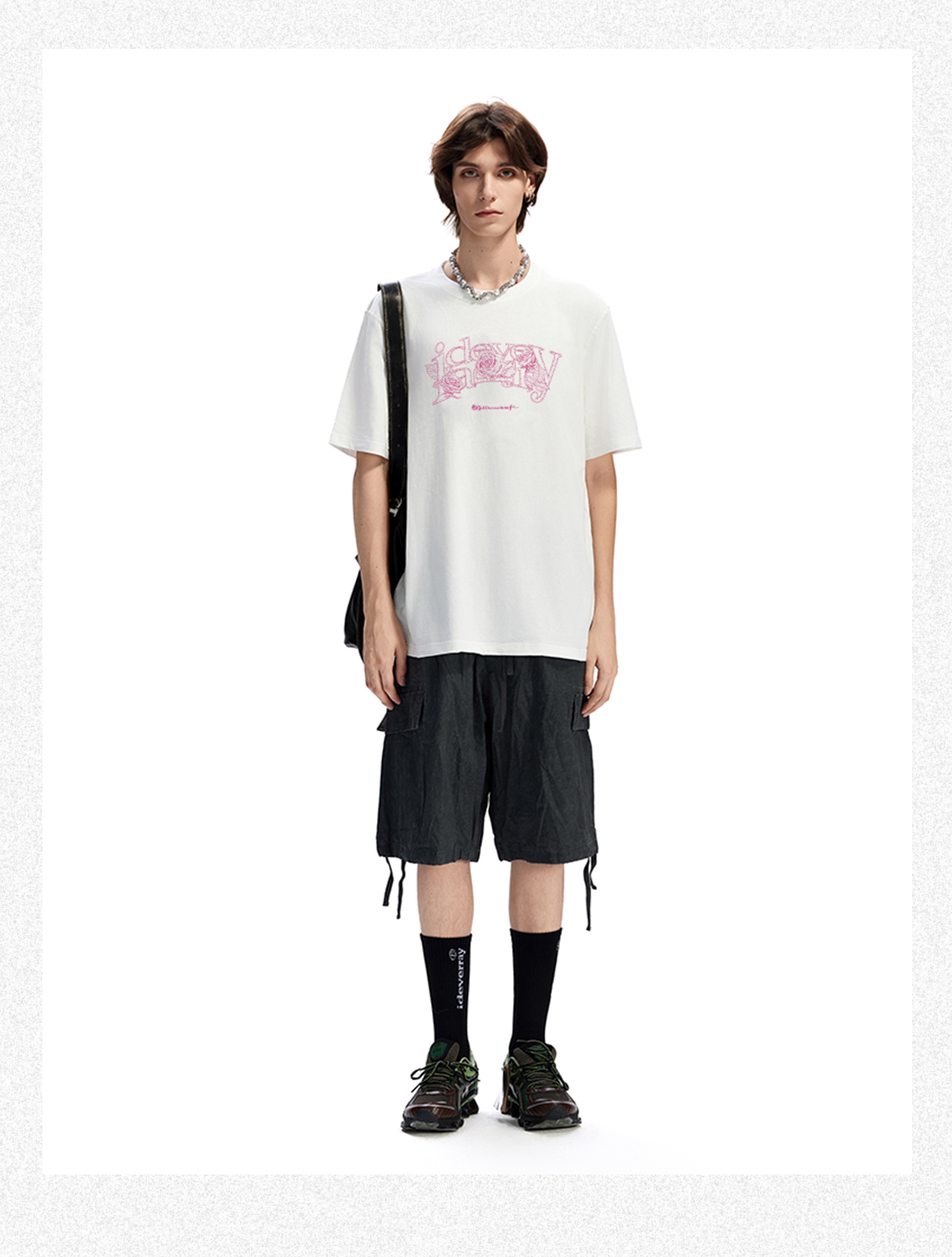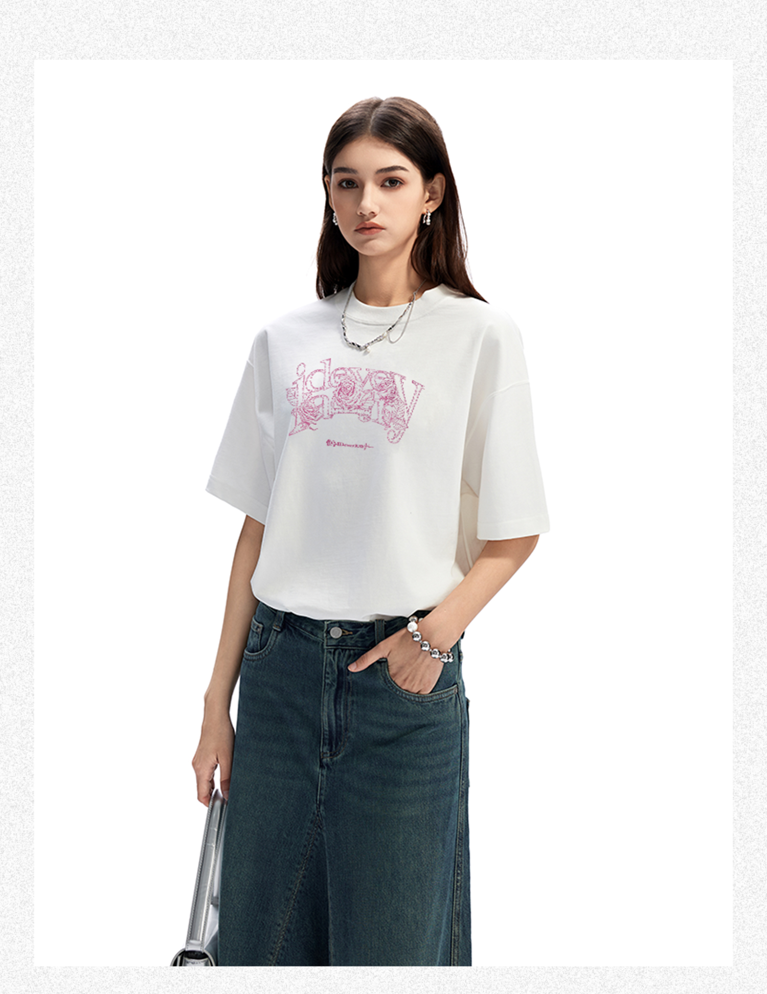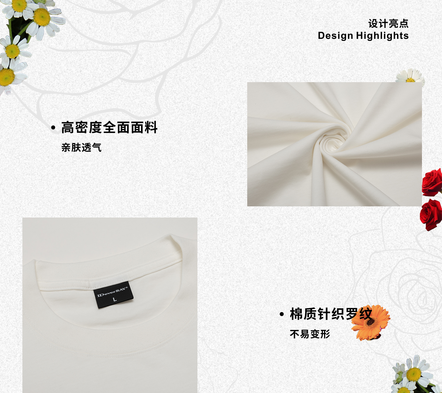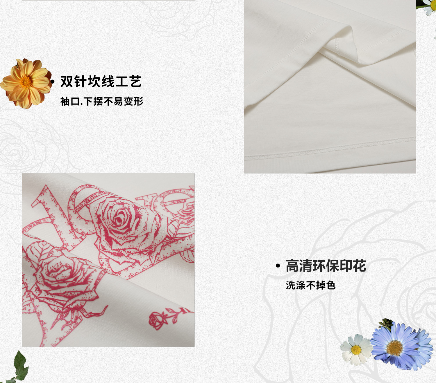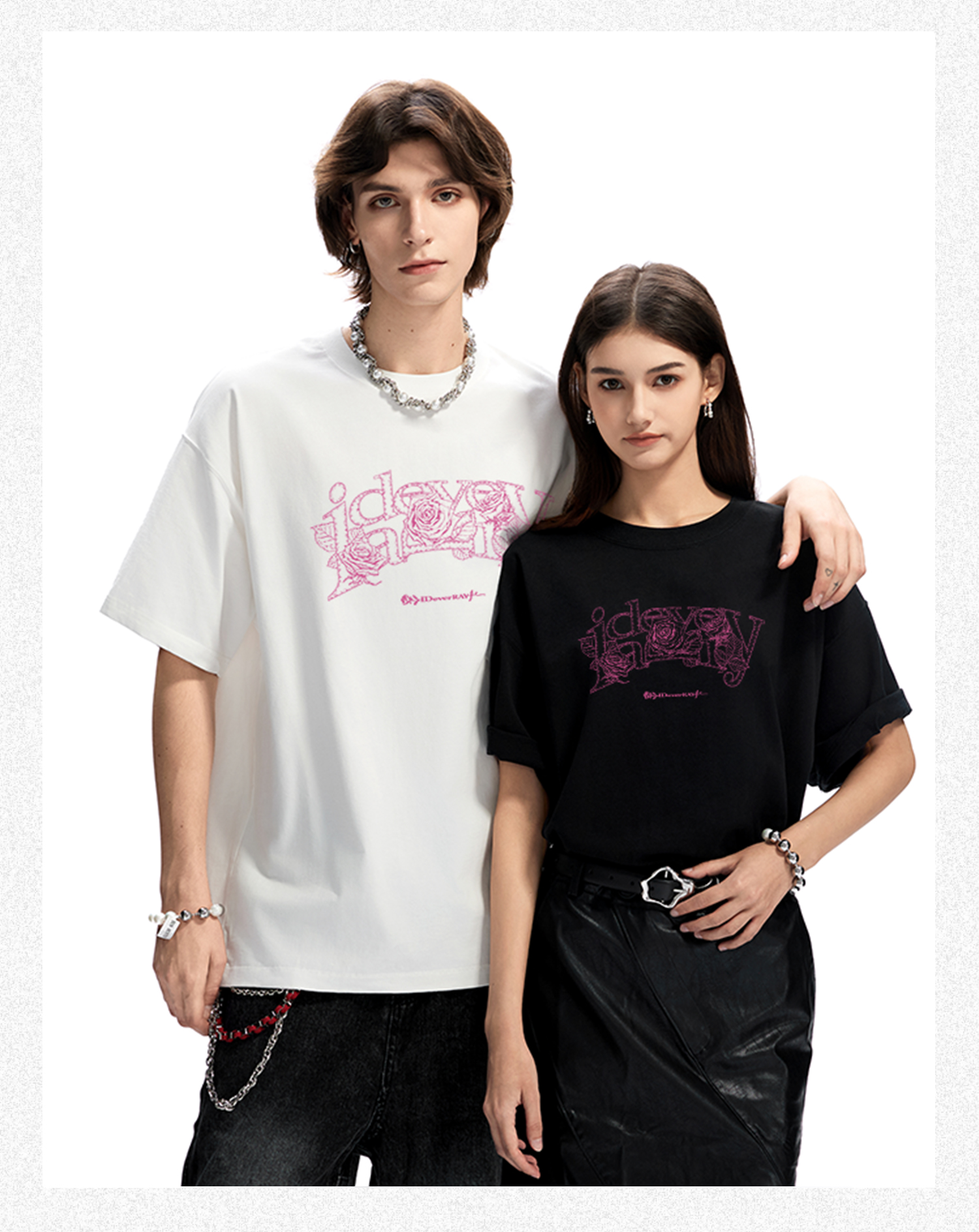 IDEVERRAY夏季新款花卉字母印花休闲情侣装圆领短袖男女士宽松t恤21MSL-ID25SSFAT006