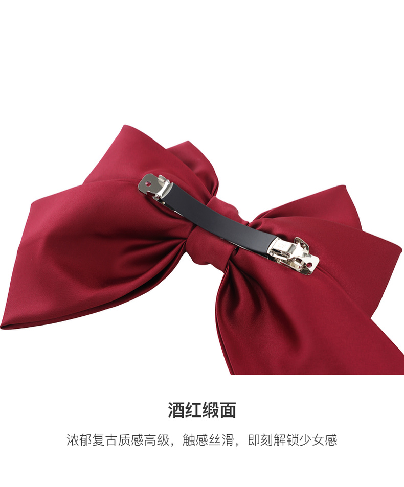 【“红”运相伴 耀启新年】三彩2026新款酒红缎面大蝴蝶结发夹