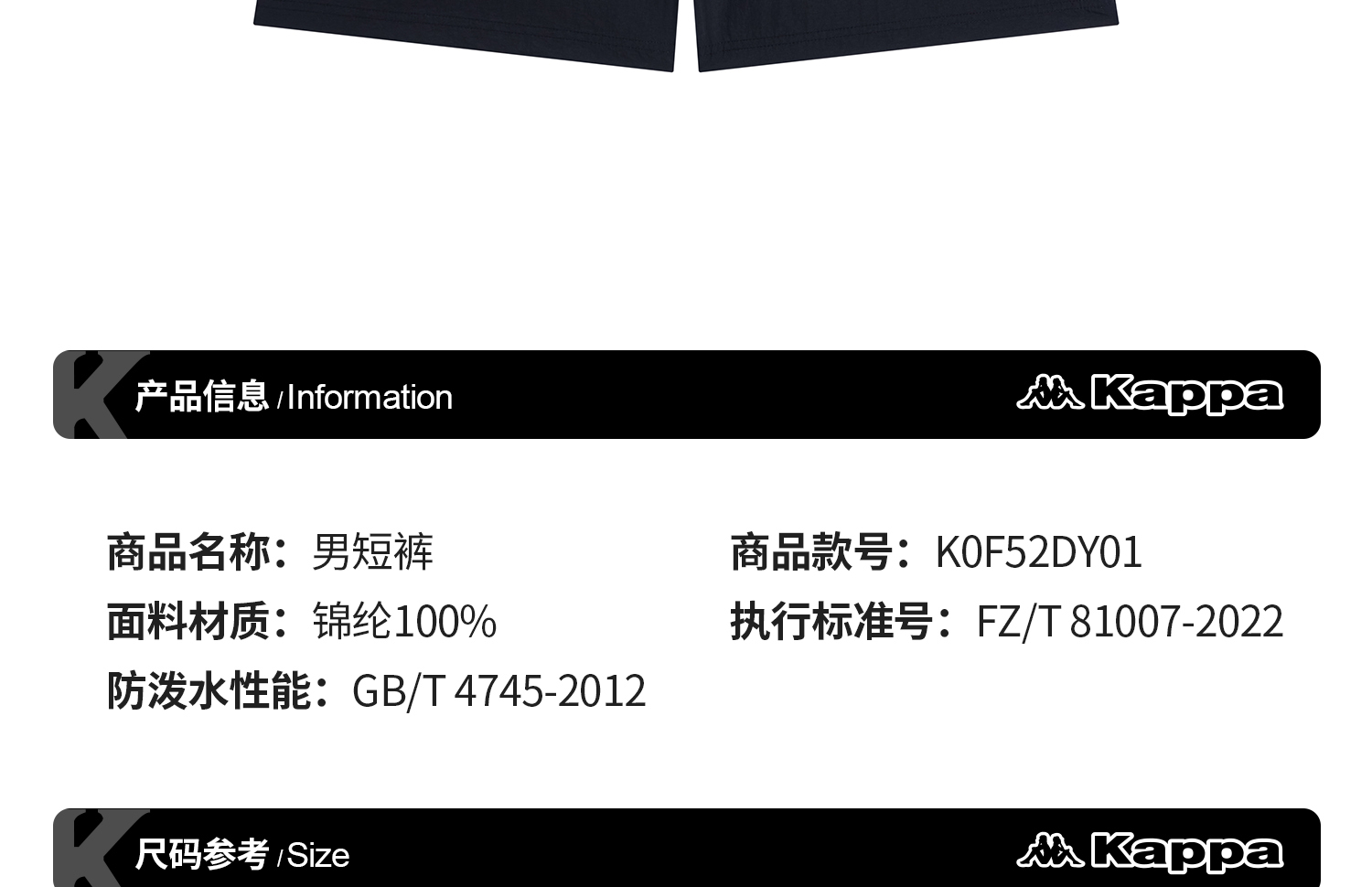 Kappa卡帕背靠背夏季2025新款防泼水运动短裤锦纶五分裤男款裤子K0F52DY01