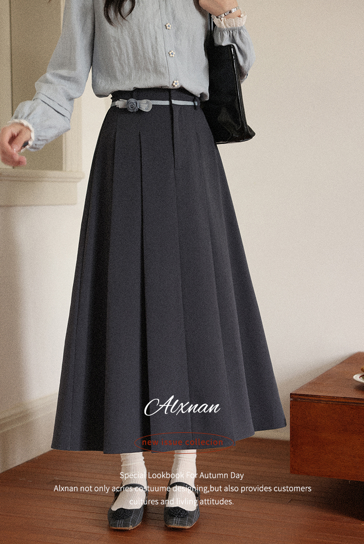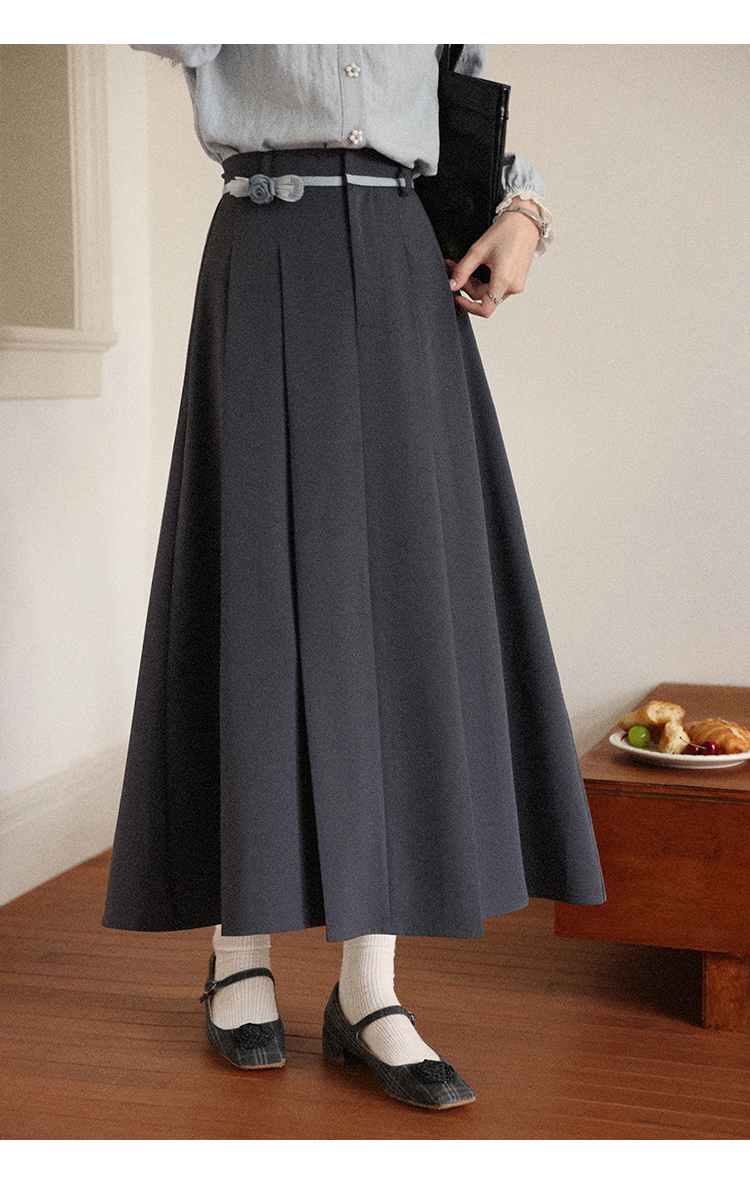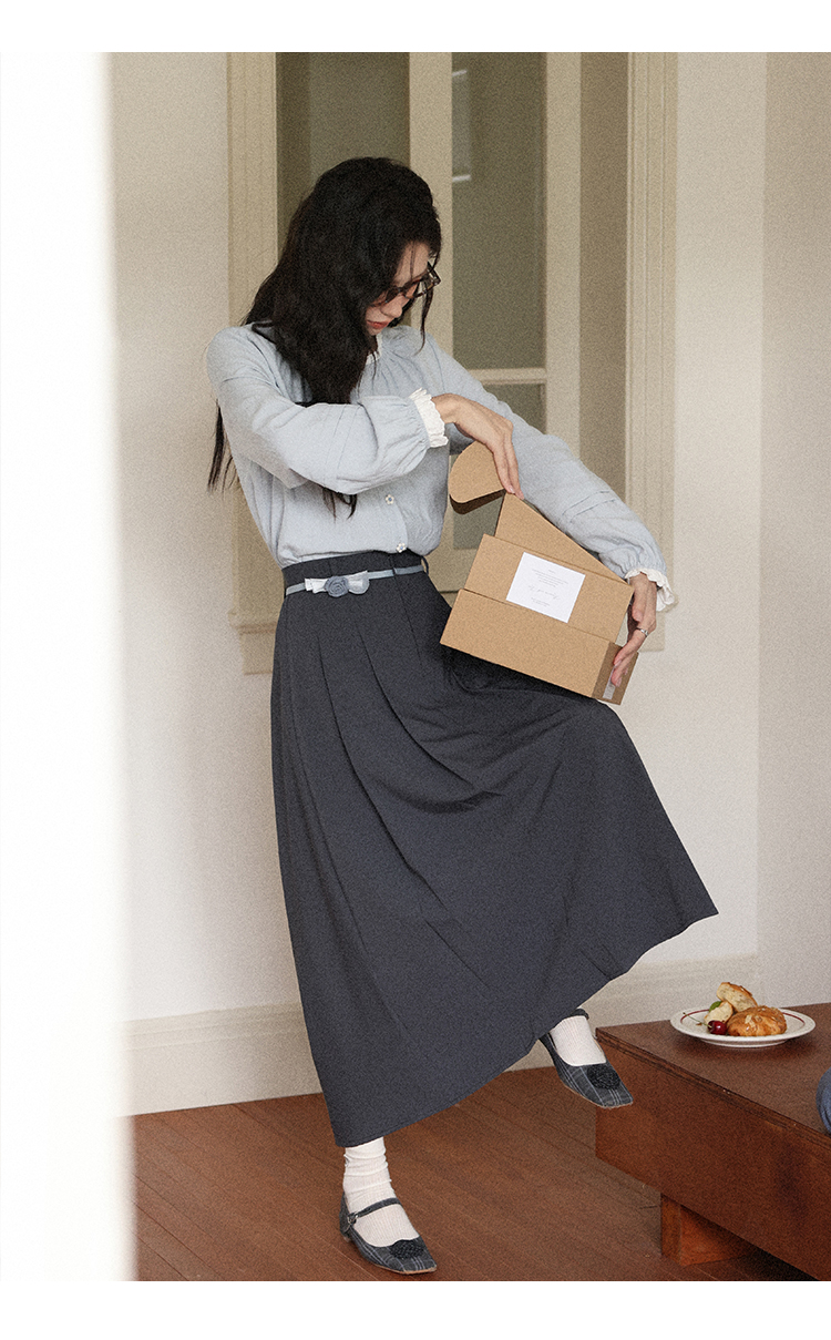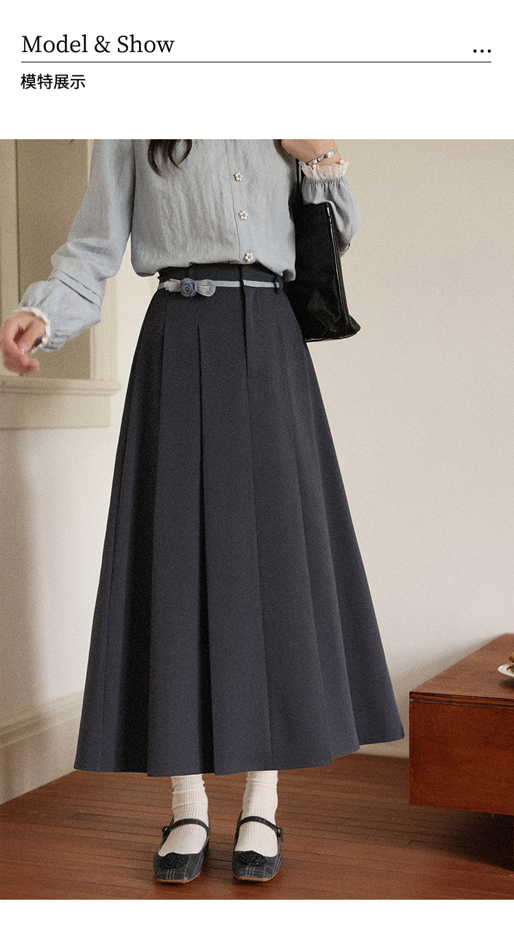 鹿向南「秋意云栖」灰色百褶半身裙女早秋显瘦气质中长款A字伞裙