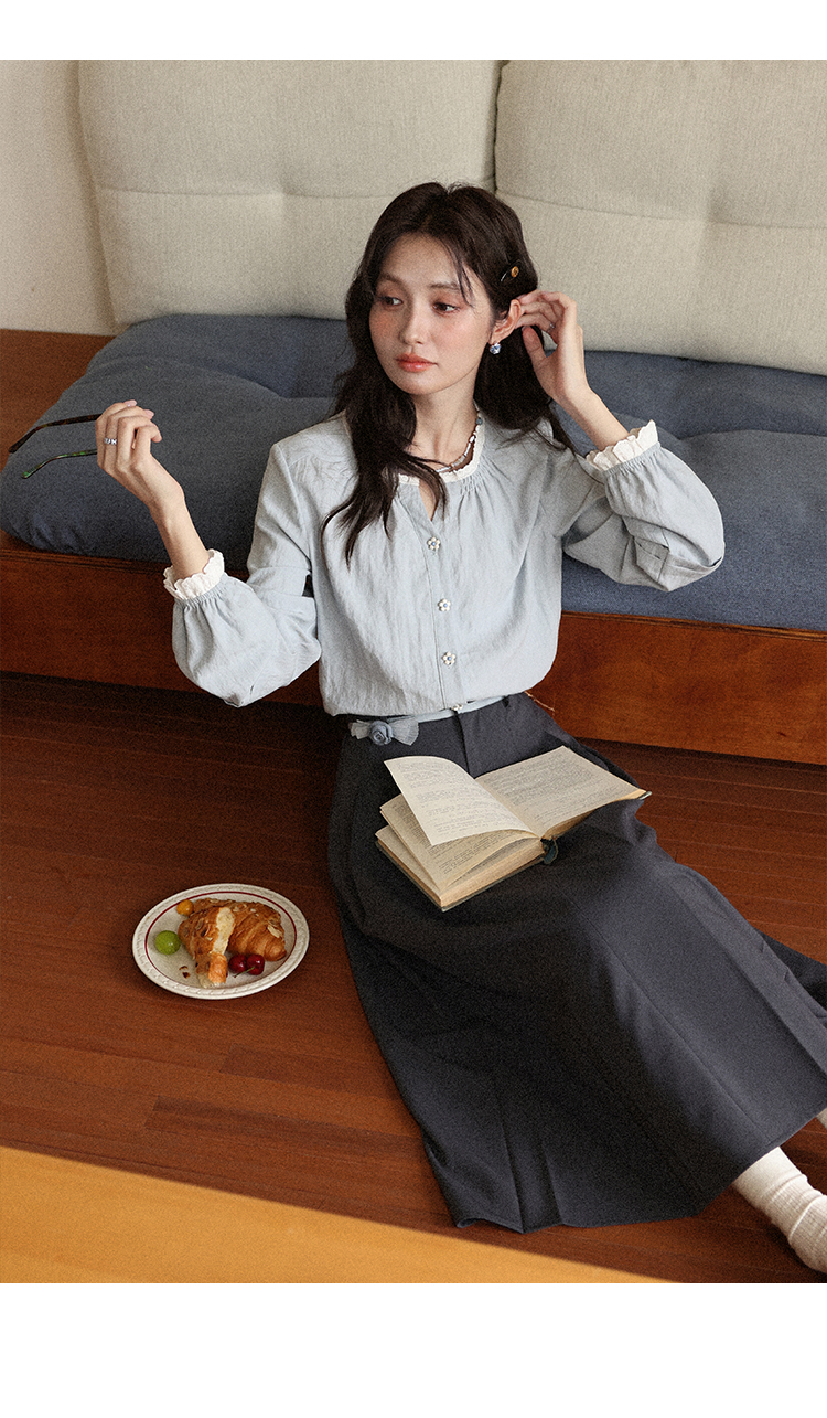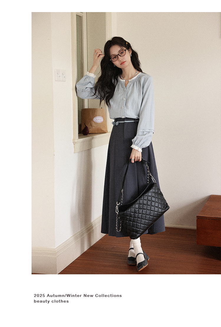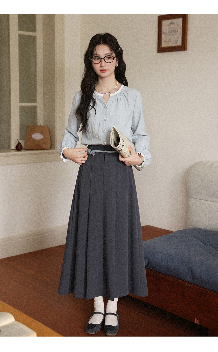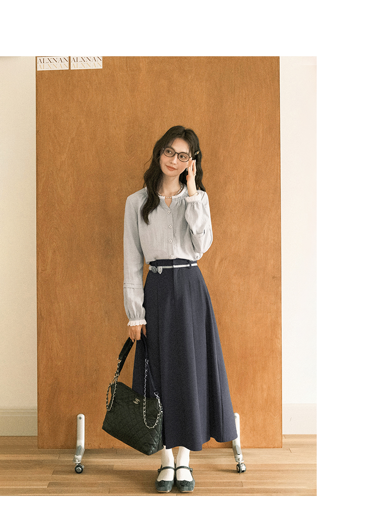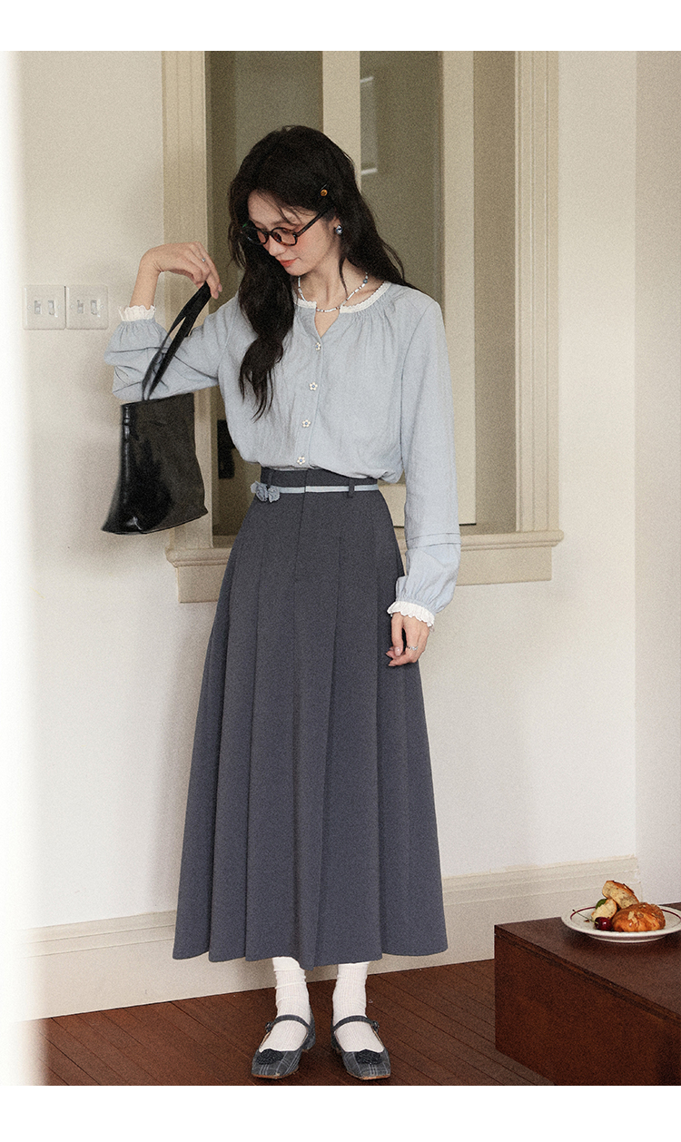鹿向南「秋意云栖」灰色百褶半身裙女早秋显瘦气质中长款A字伞裙