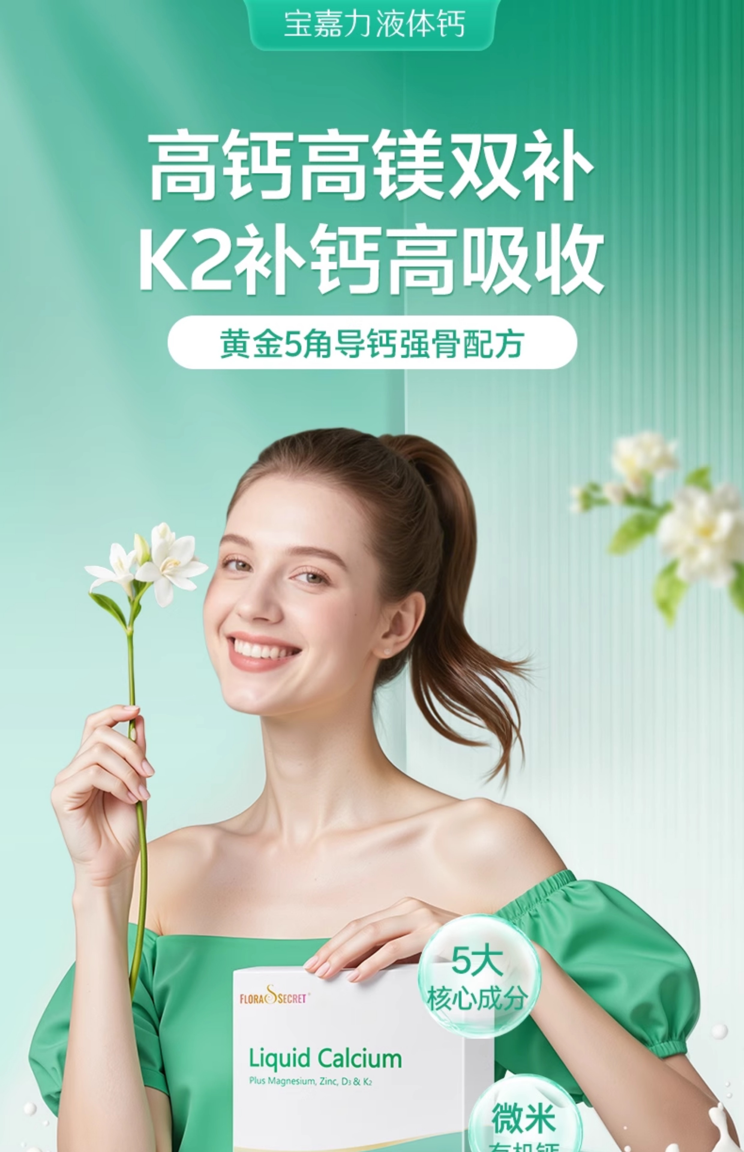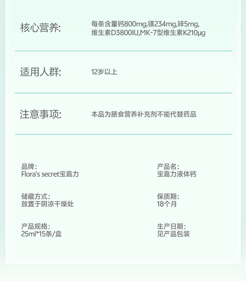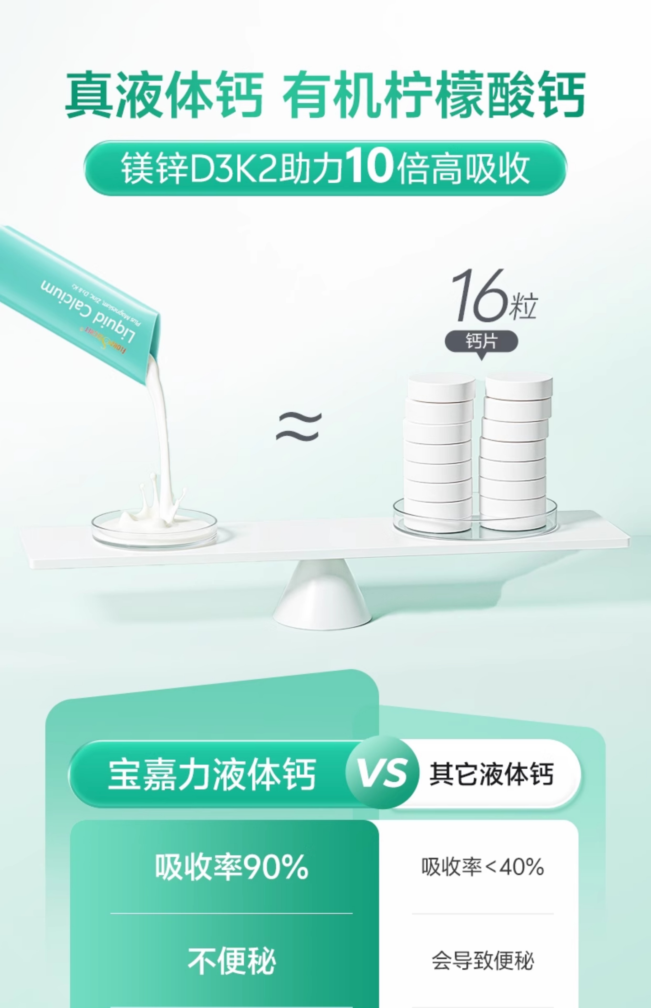 【宝嘉力】液体钙镁锌D3K2茉莉钙柠檬酸钙成人 15条/盒