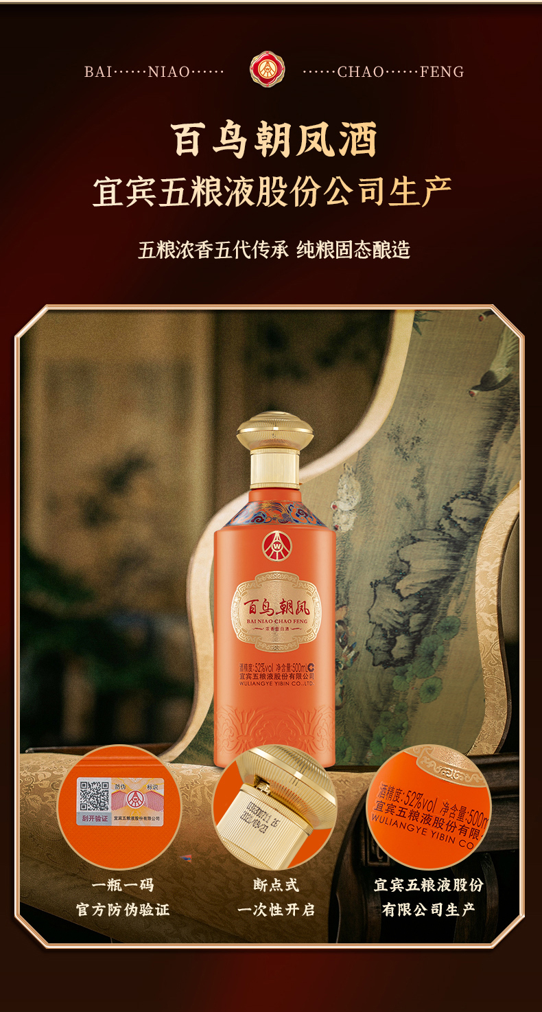 五粮液百鸟朝凤-五彩橙,手工书本礼盒装,一盒一码,防伪保证买的放心,喝的舒心,送人、收藏、自己喝性价比高