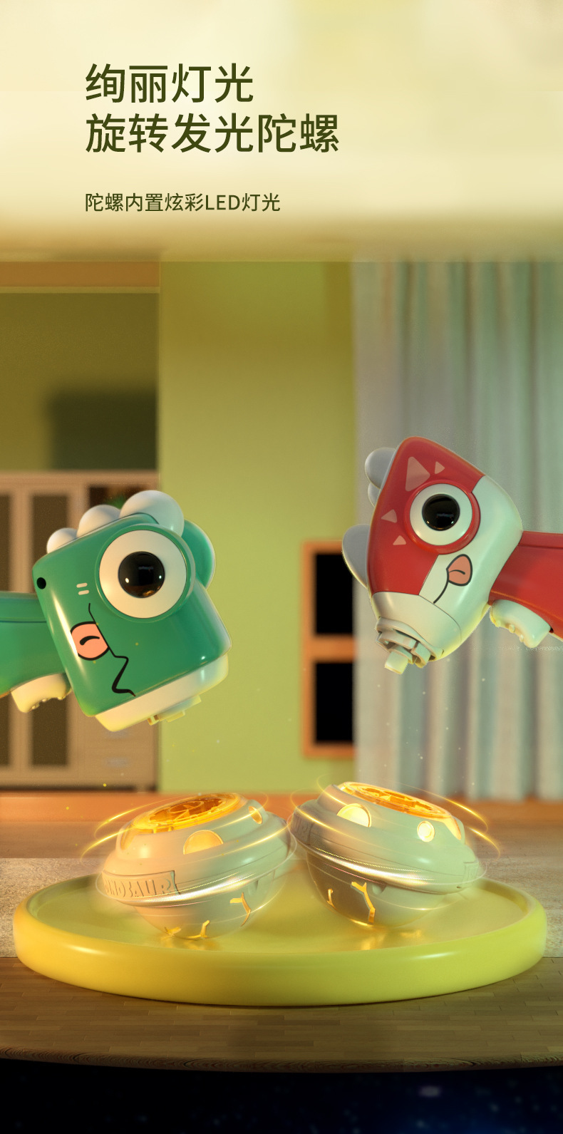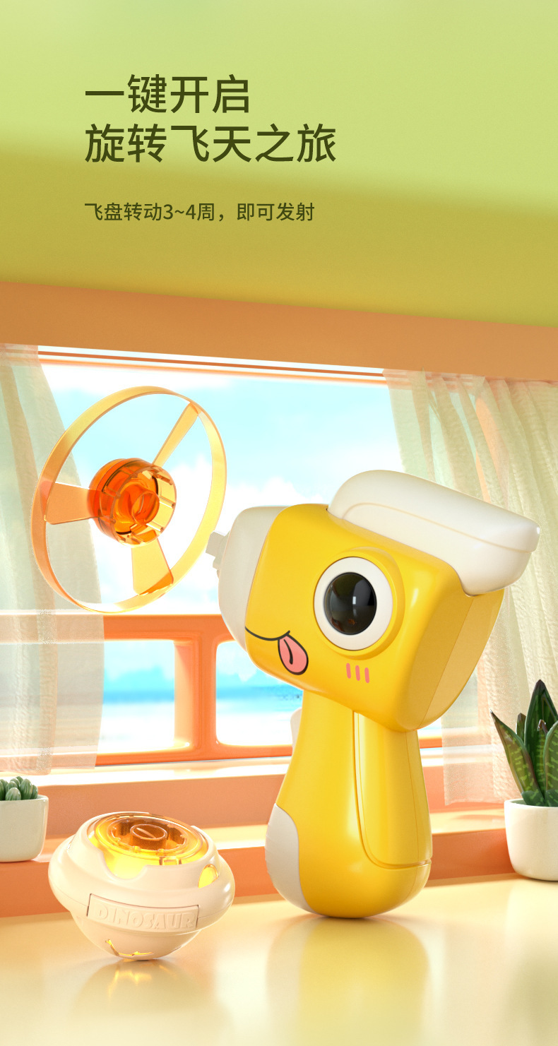 【恐龙夜光飞碟 一键开启旋转飞天之旅】恐龙飞碟陀螺手枪高配版 彩盒装 无需电池 飞盘两用 绚丽灯光 一键开启 即可发射