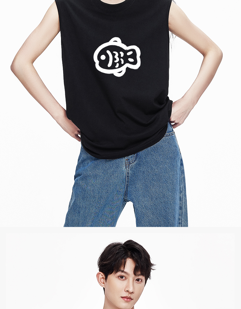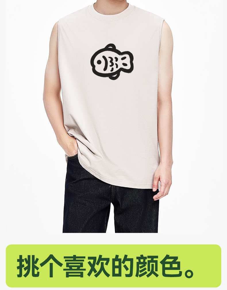「棉的美学」纯棉无袖男款背心夏季印花运动透气宽松中性T恤