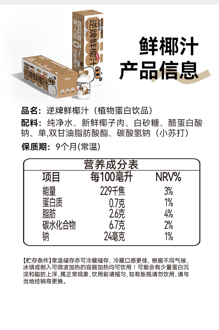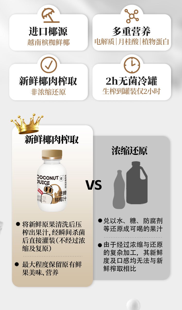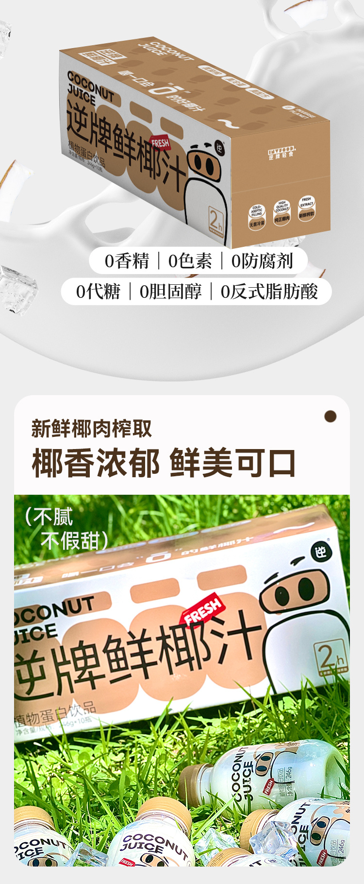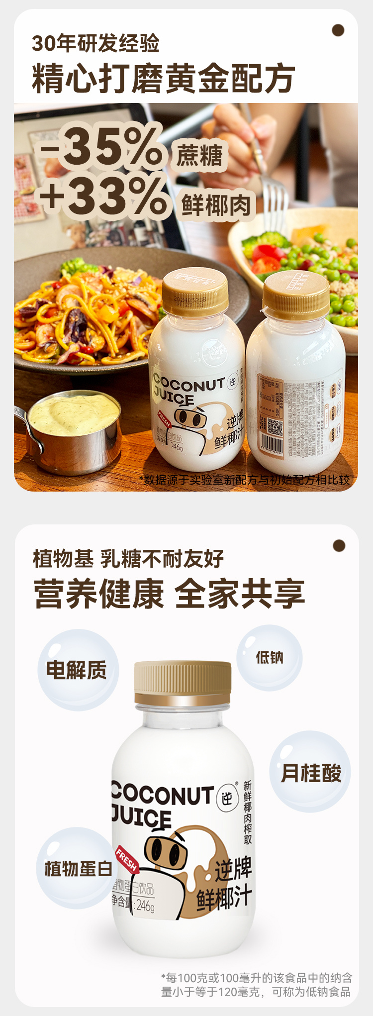 【逆牌鲜椰汁】活力四射‼清新不腻,健康好滋味‼国家食品安全协会《植物基产品质量要求》团体标准起草单位 ✅真·鲜榨 甄选新鲜椰肉物理榨取