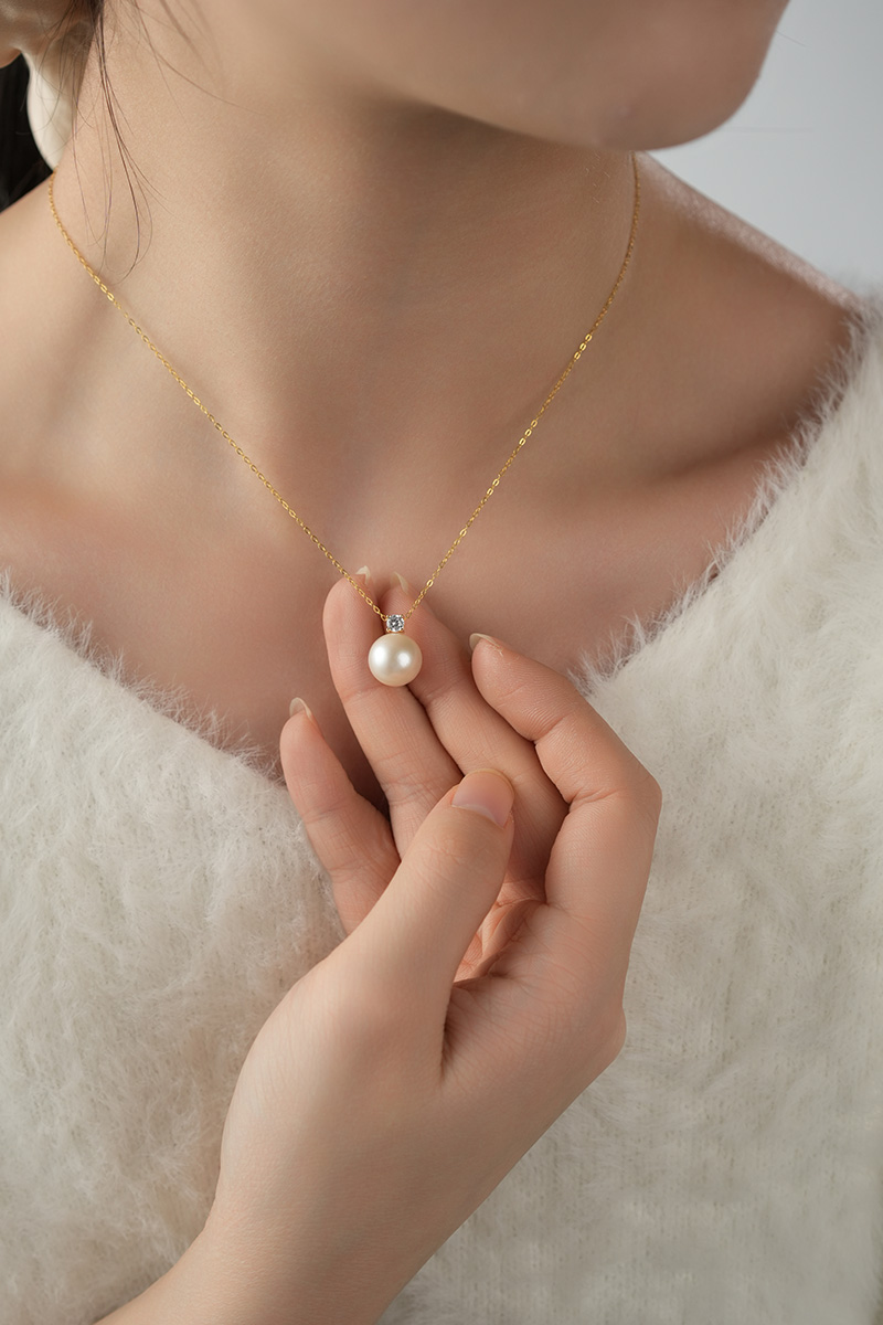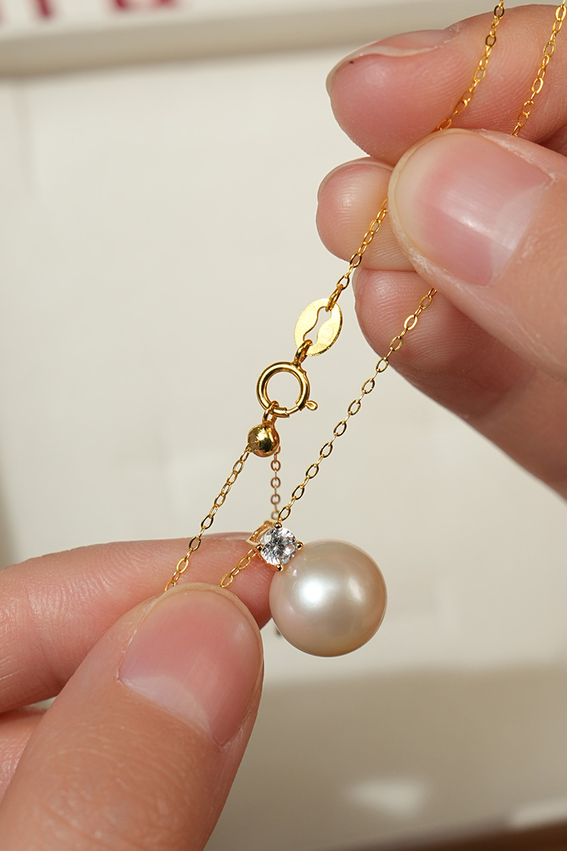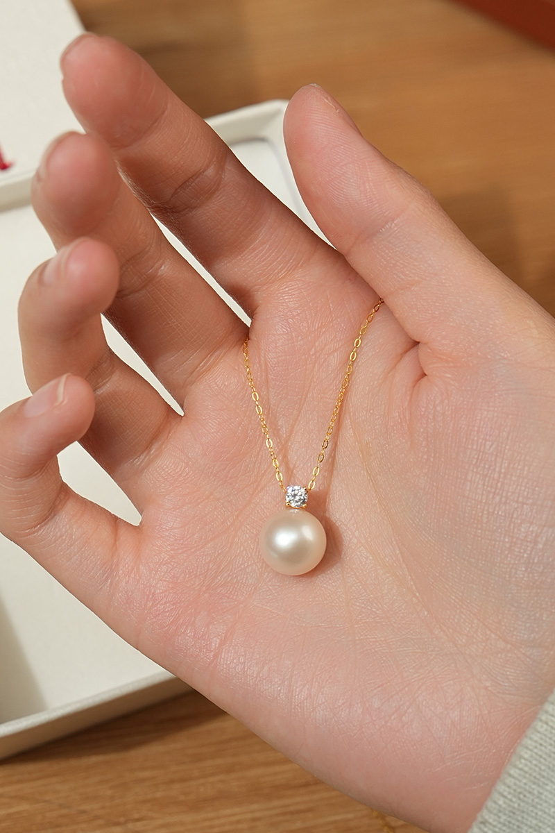 戴妃同款吊坠,轻奢风格,淡水有核珍珠近正圆强光,社交距离近乎无暇。