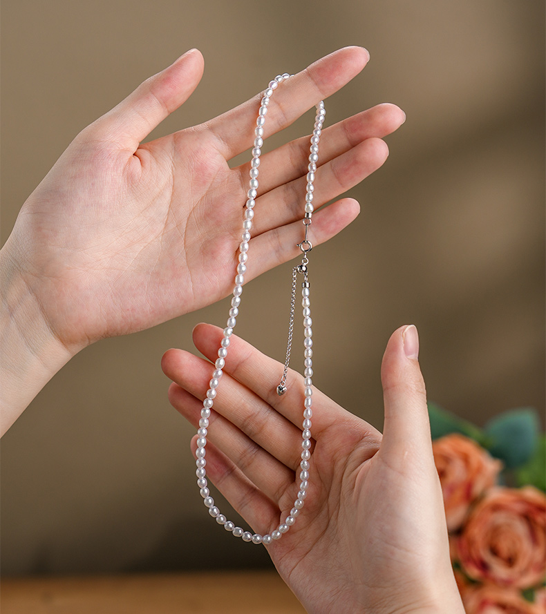小米全珠链,珠子精细,佩戴轻盈,尾链采用S925银材质,佩戴舒适