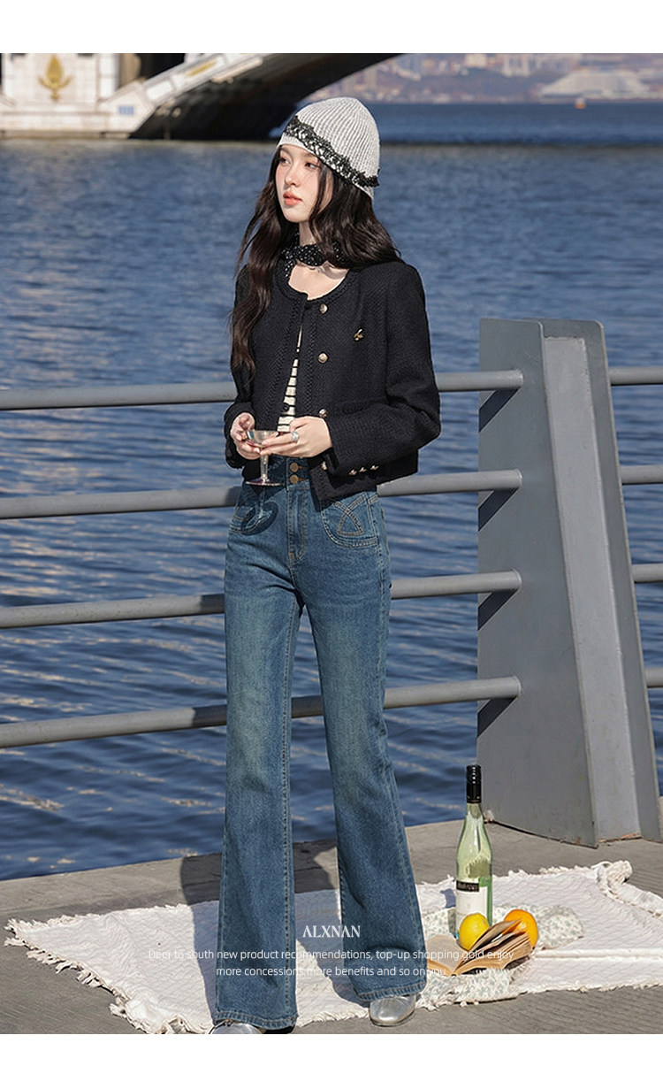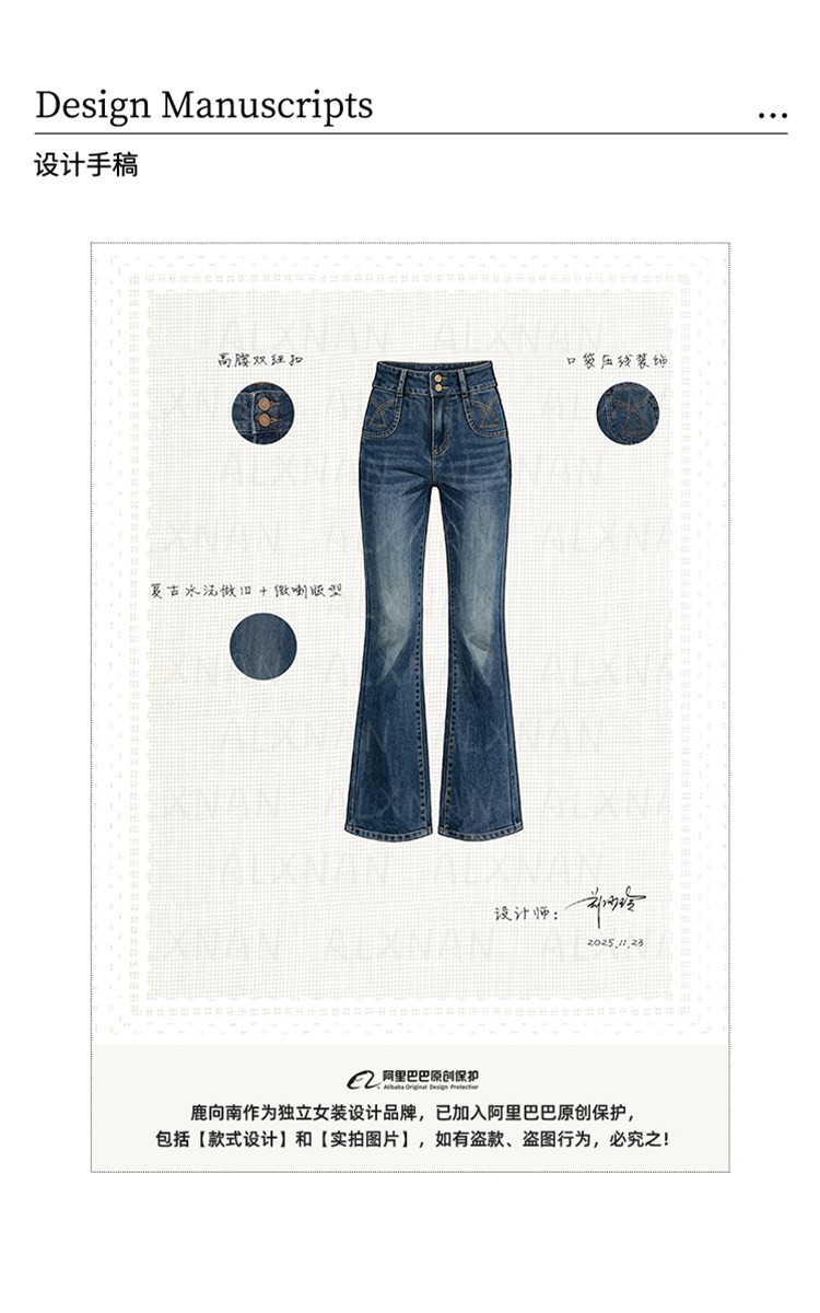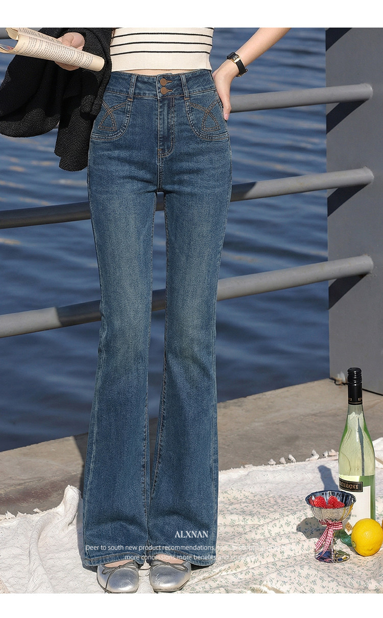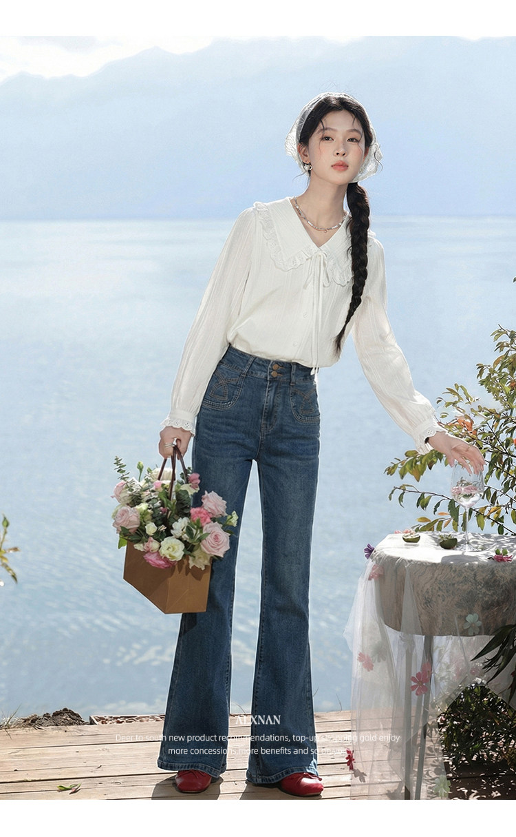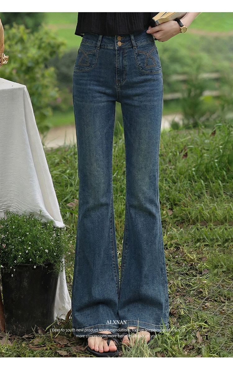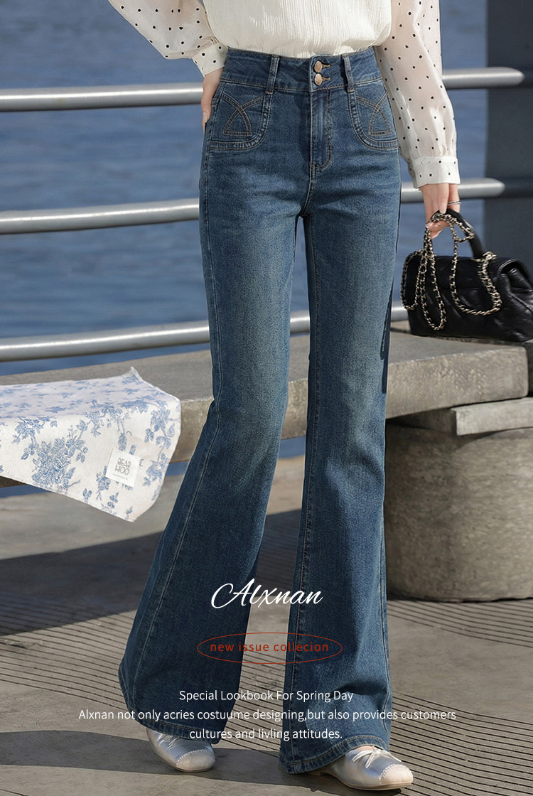 鹿向南「晨光阔步」复古蓝色微喇牛仔裤女春季百搭高腰显瘦长裤子