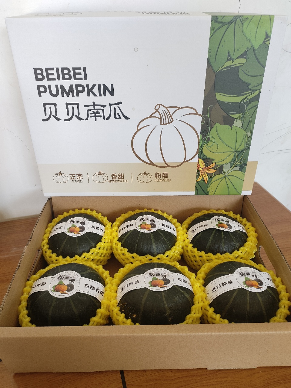 【商品名称】乌兰布和沙漠贝贝南瓜 【规格】活动4.5斤 【个数】6个左右 【包装】纸箱 【产地】内蒙乌兰布和 【发货地】山东潍坊 【储存条件】阴凉通风处,放在零度以上储存,不能冰箱冷藏 【保质期】十五左右 【售后标准】按个售后, 【不发货地区】新疆,西藏,内蒙,海南,甘肃、宁夏、青海不发货。 【快递】极兔 品质保证❗❗南瓜保老保粉,不粉视为坏果售后,想吃甜度高一点的,可以多放一段时间哦