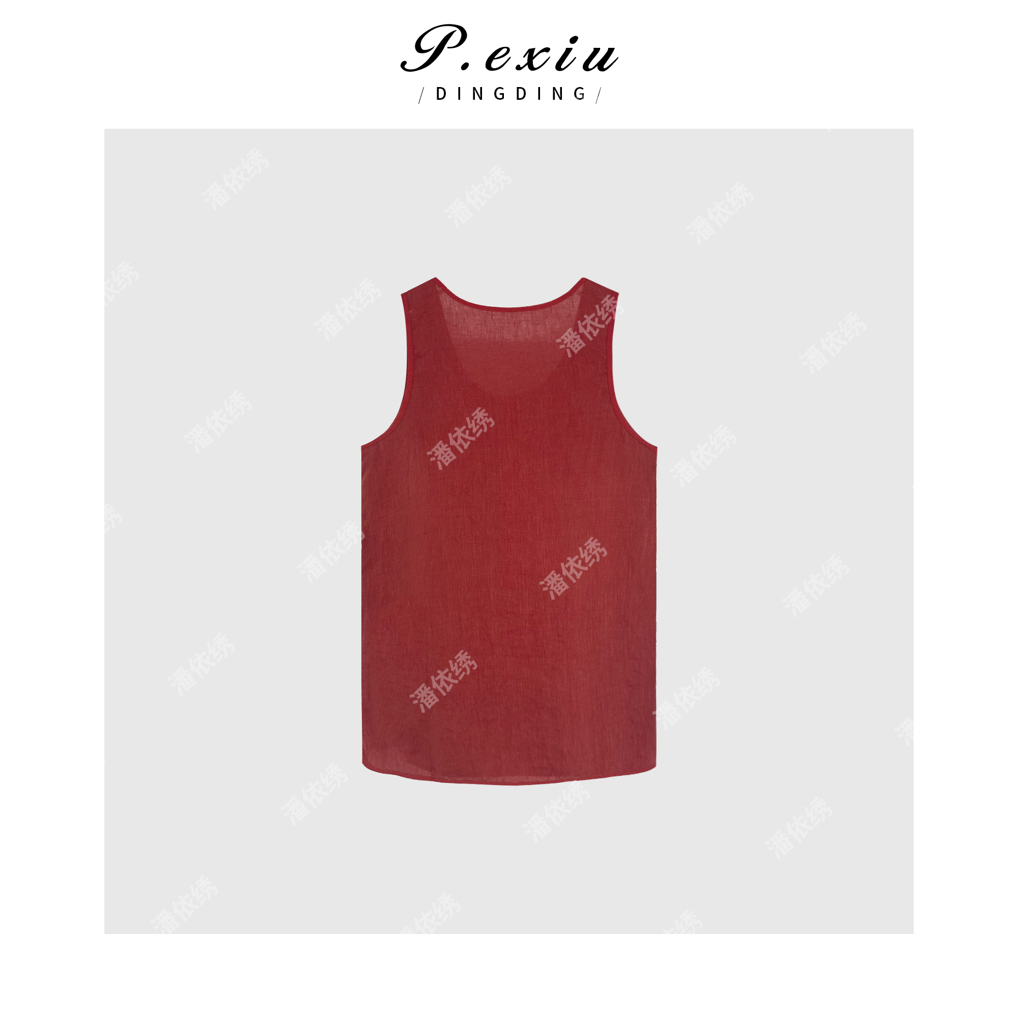 03-3潘依绣丁丁宠粉100%麻高级感定织凉感透气无袖背心 W-62112