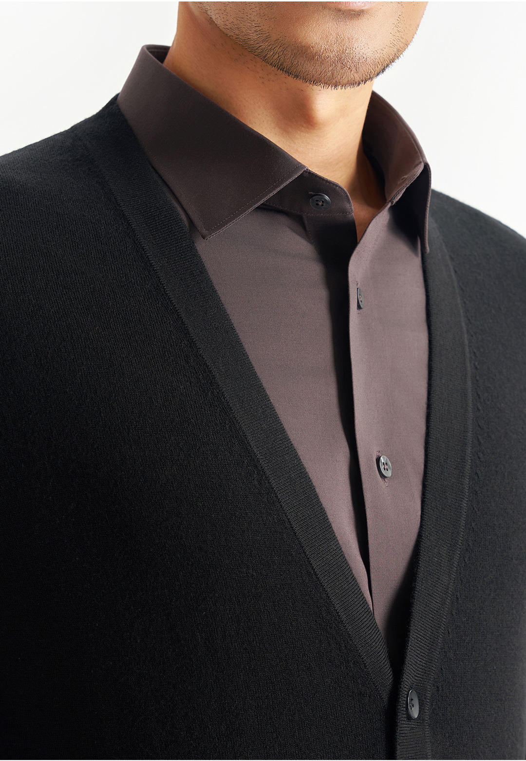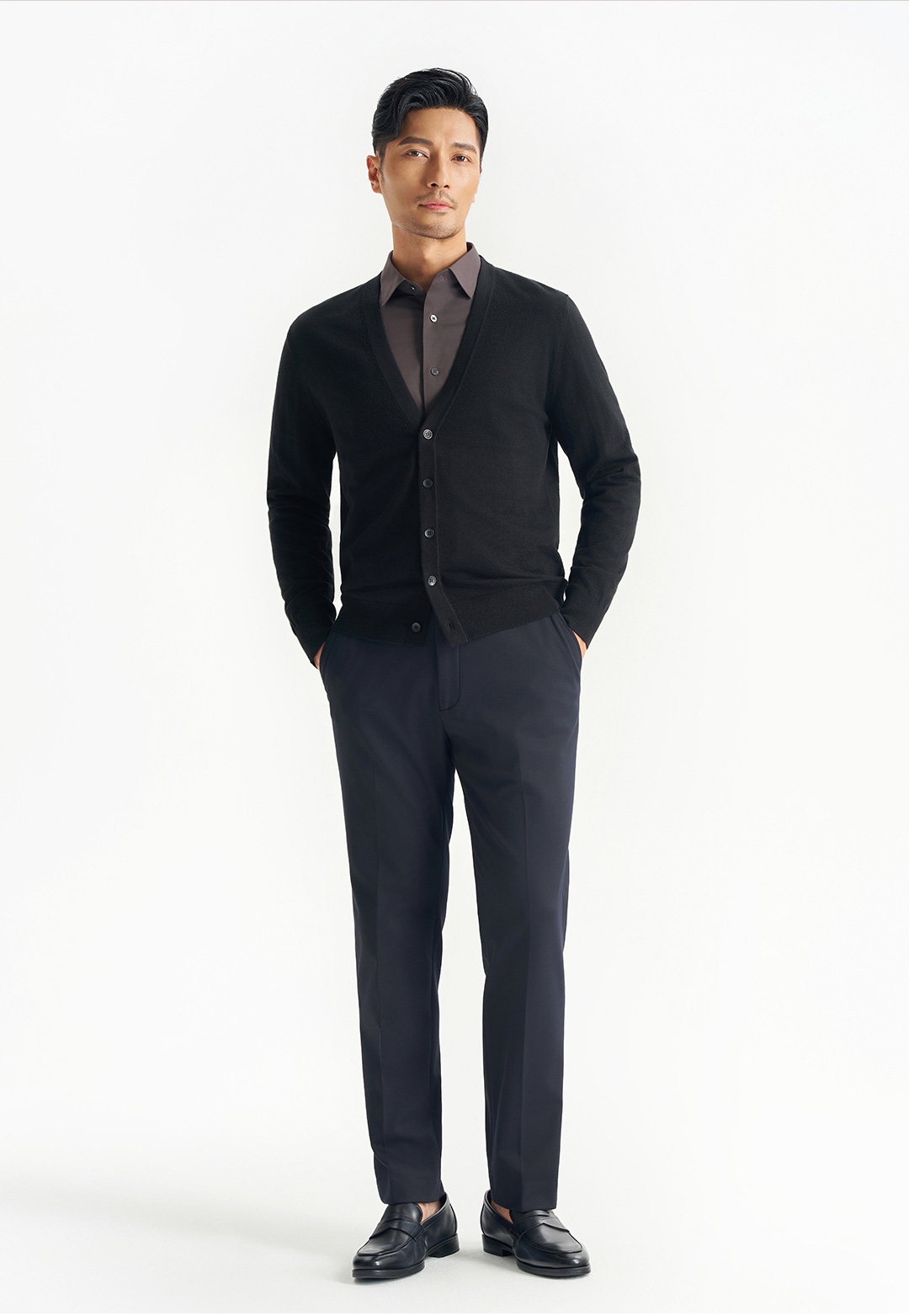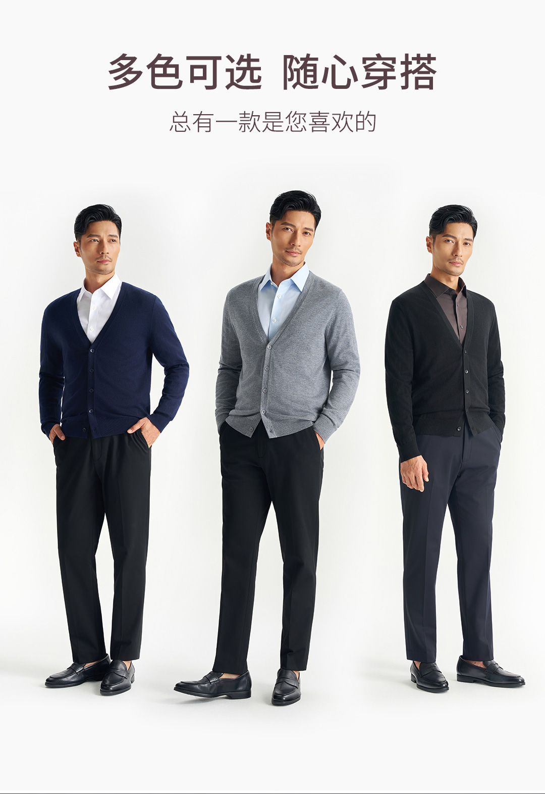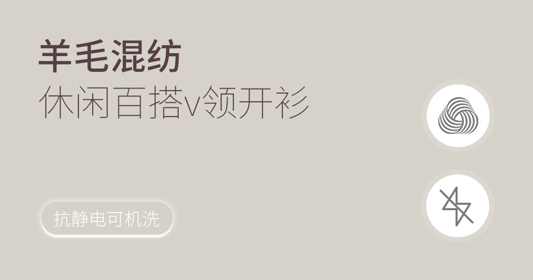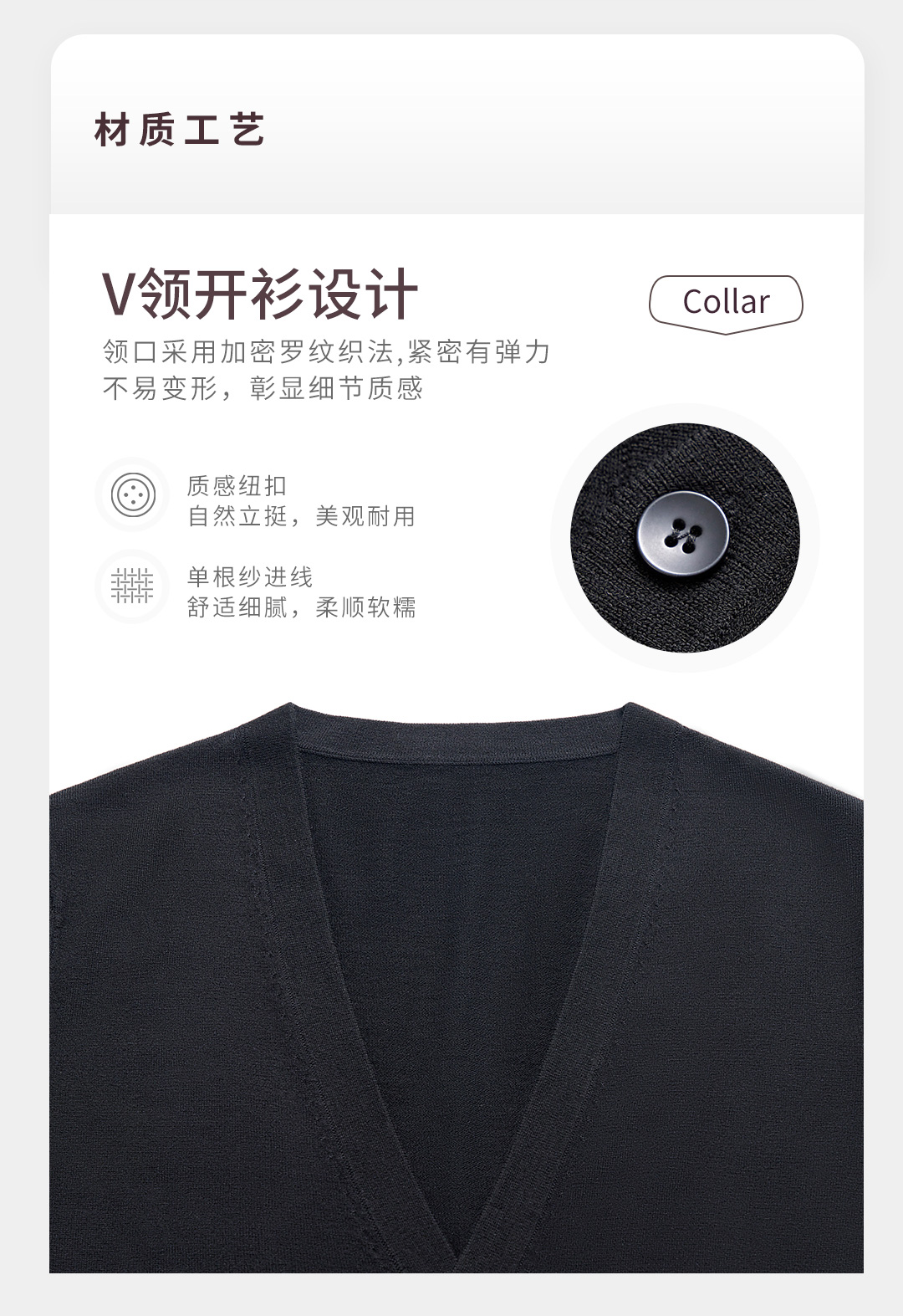 【轻织系列】可机洗羊毛V领纽扣针织开衫毛衣247X0C722L