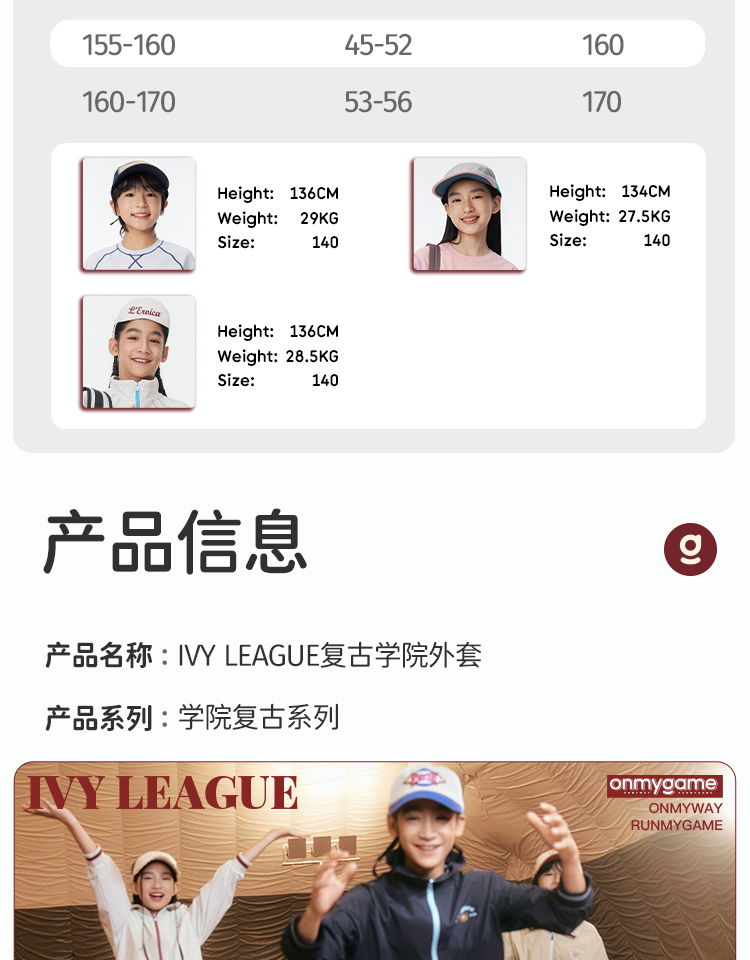 onmygame【IVY LEAGUE】复古学院外套男女童上衣KE11C310589