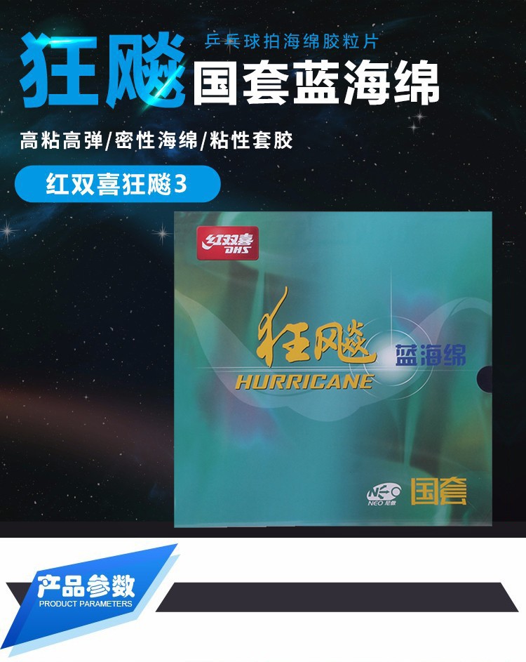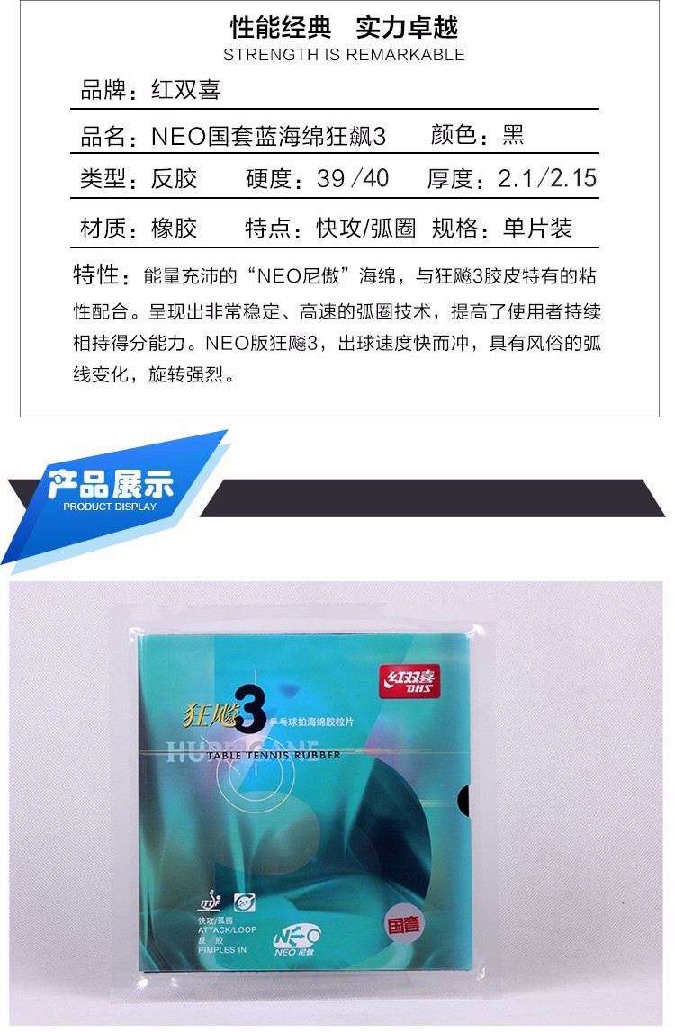 红双喜国套狂飙3蓝海绵37度柔NEO国狂3套胶国狂乒乓球胶皮