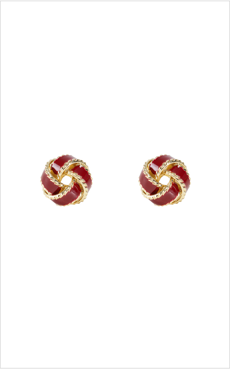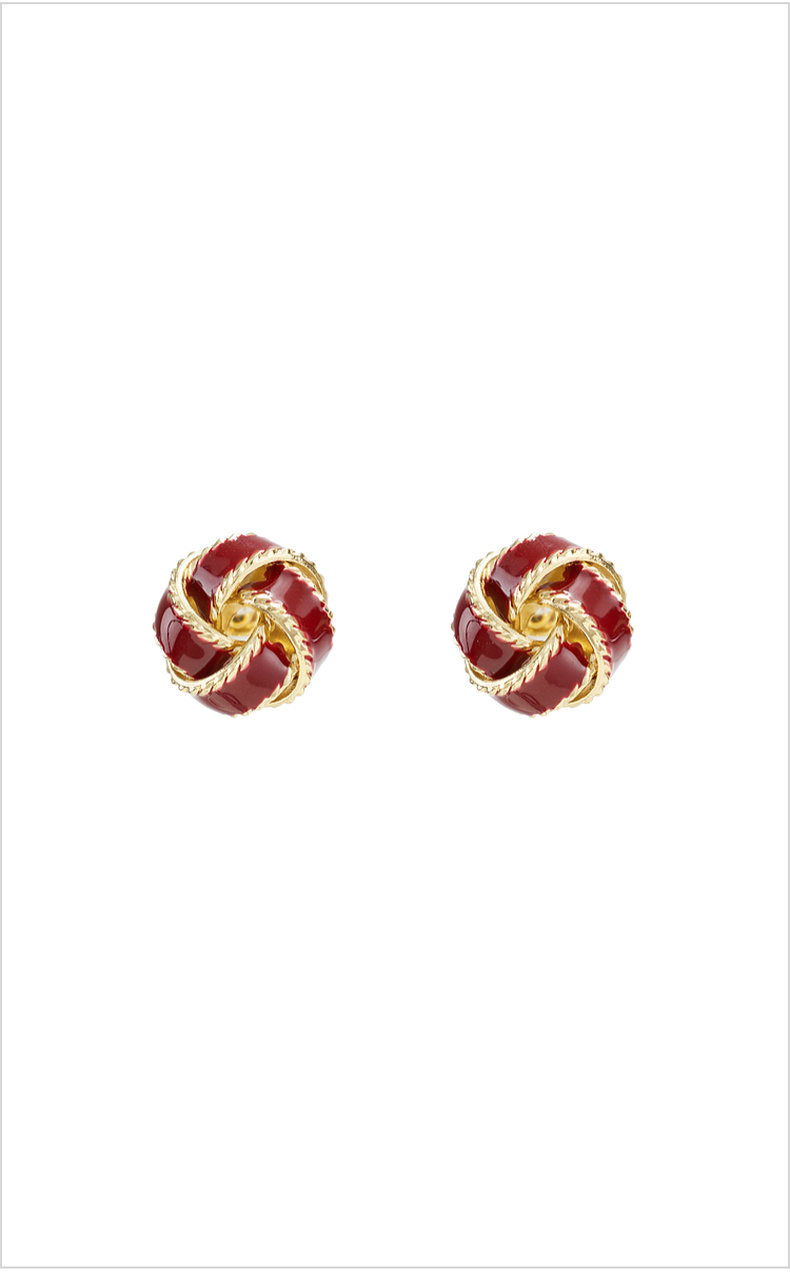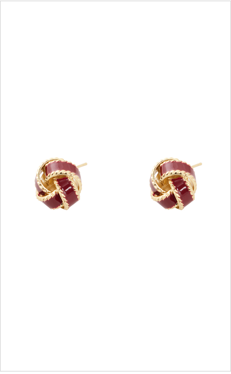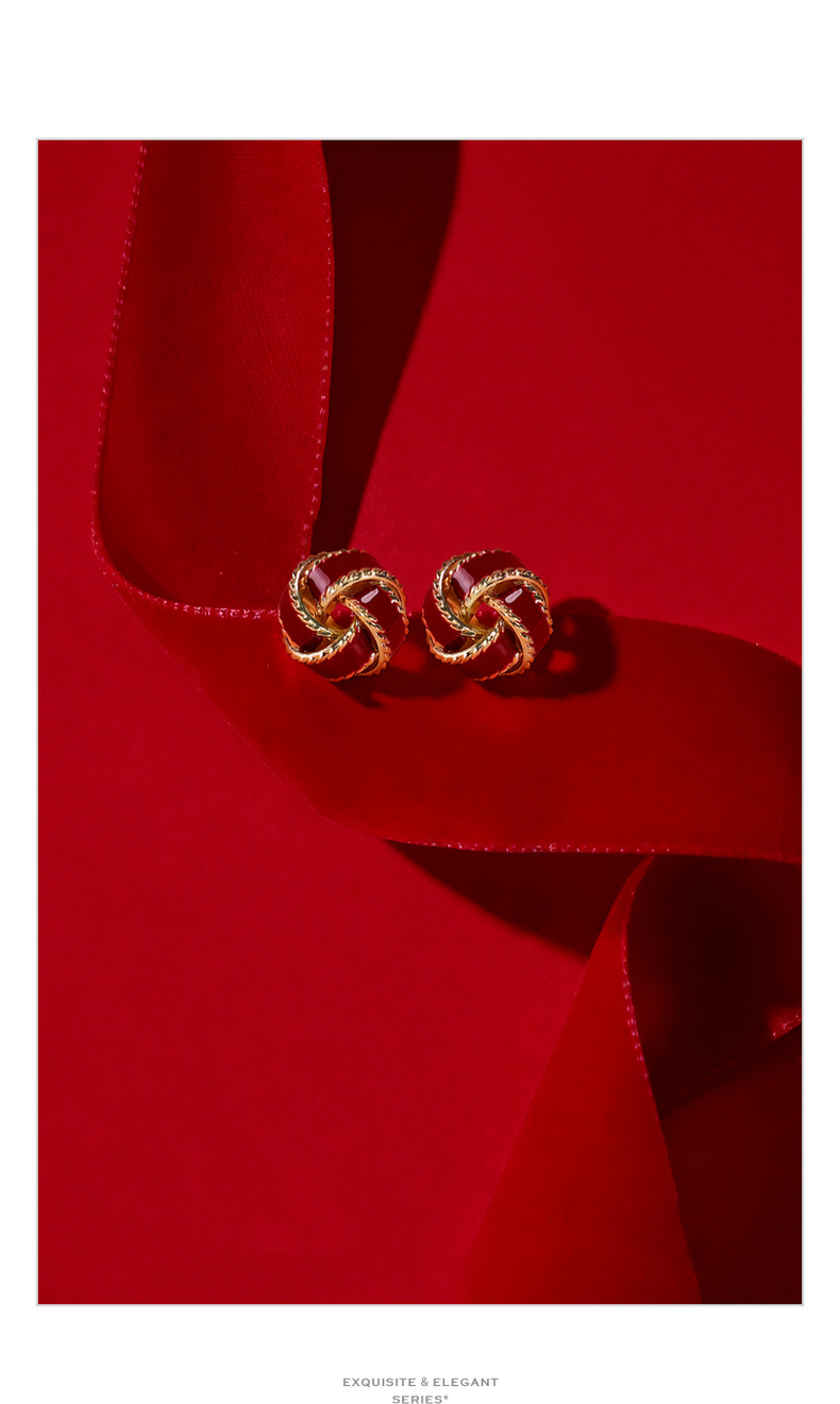 三彩2026新款扭结酒红滴釉耳钉S925银针国风立体麻花金边氛围感女