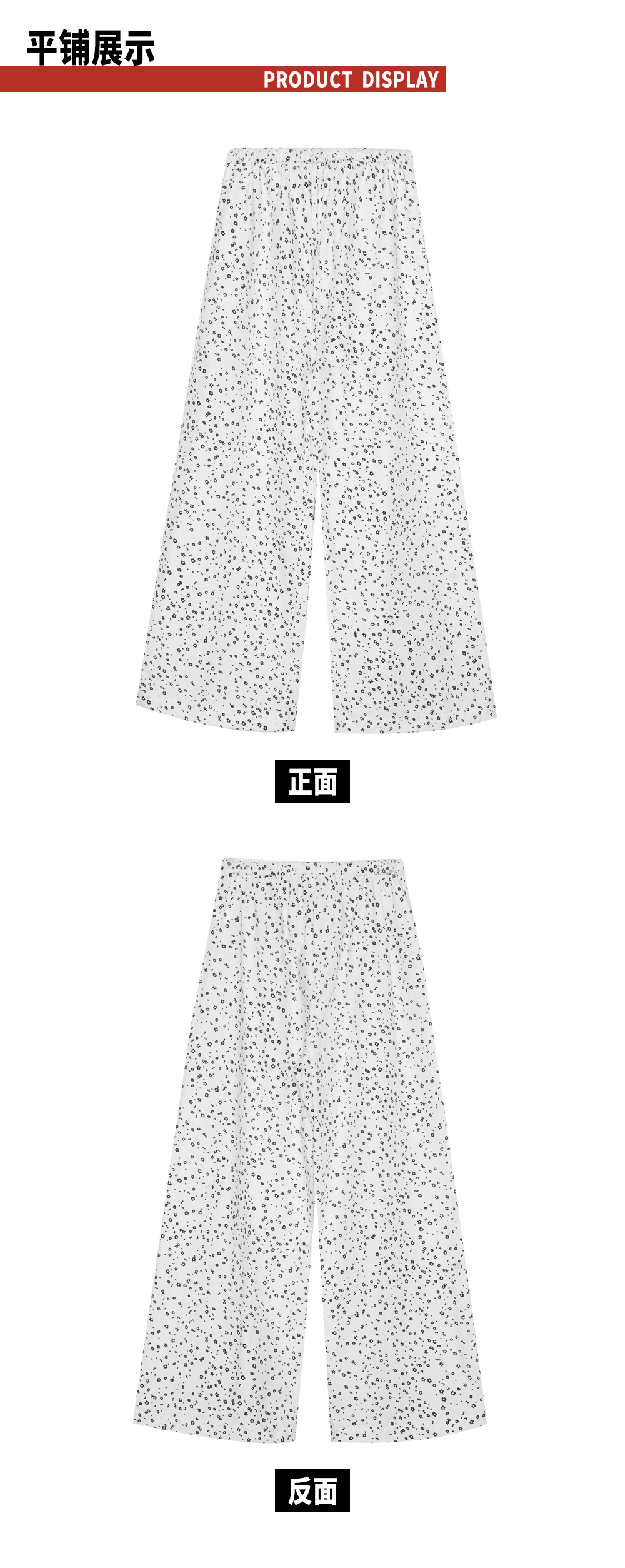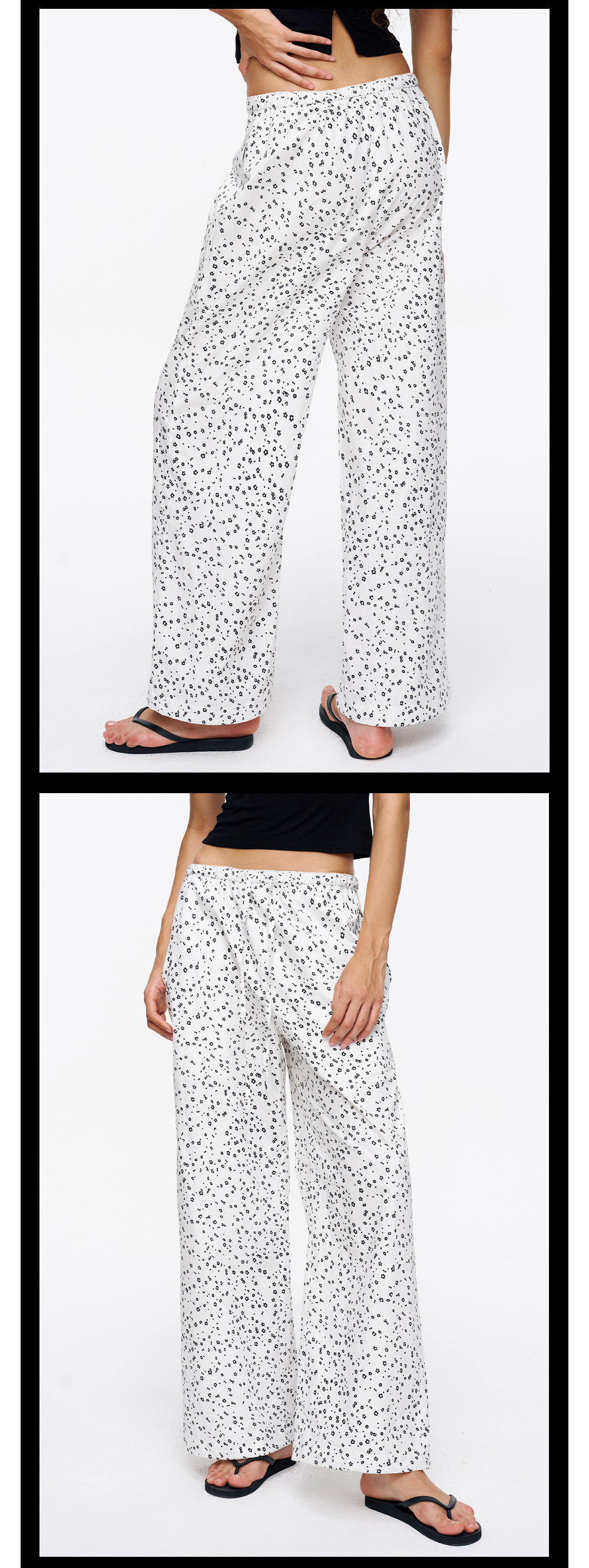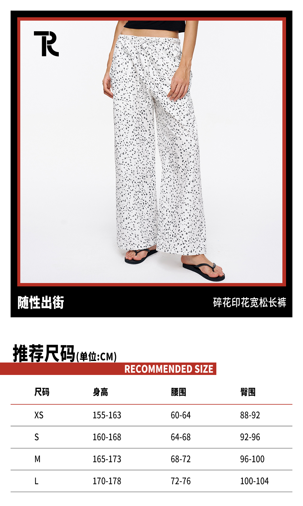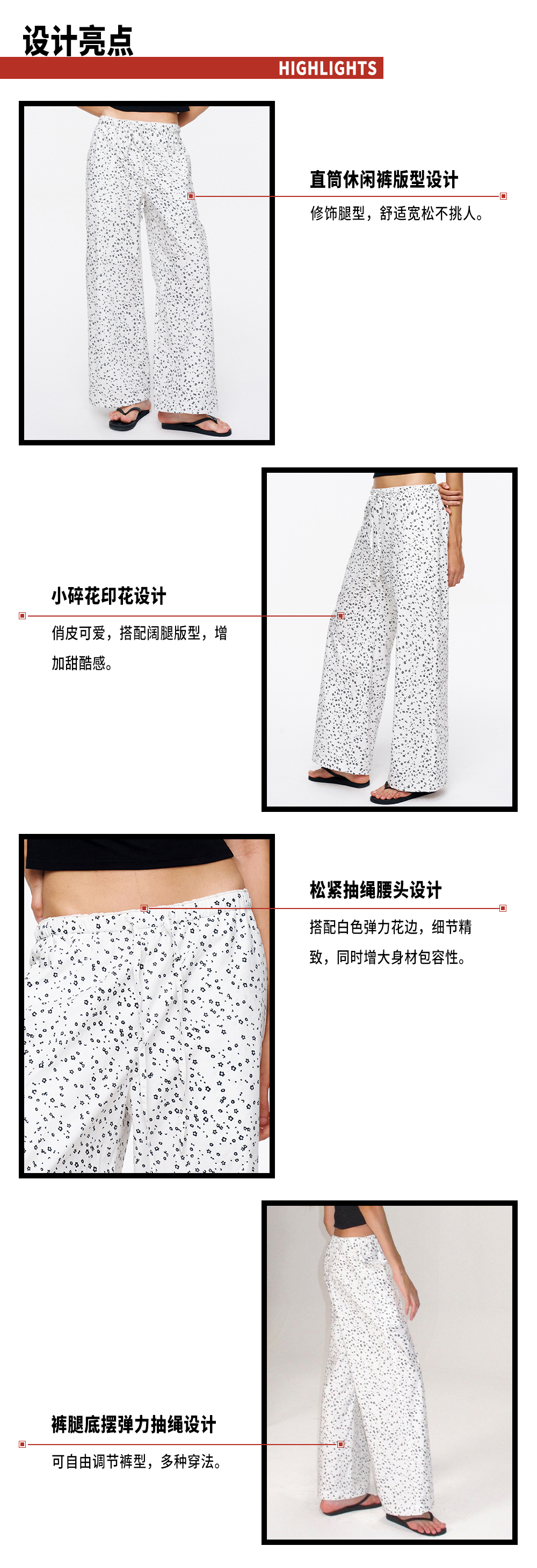TR她热 随性出街 白色碎花抽绳花边松紧腰百搭阔腿直筒休闲裤