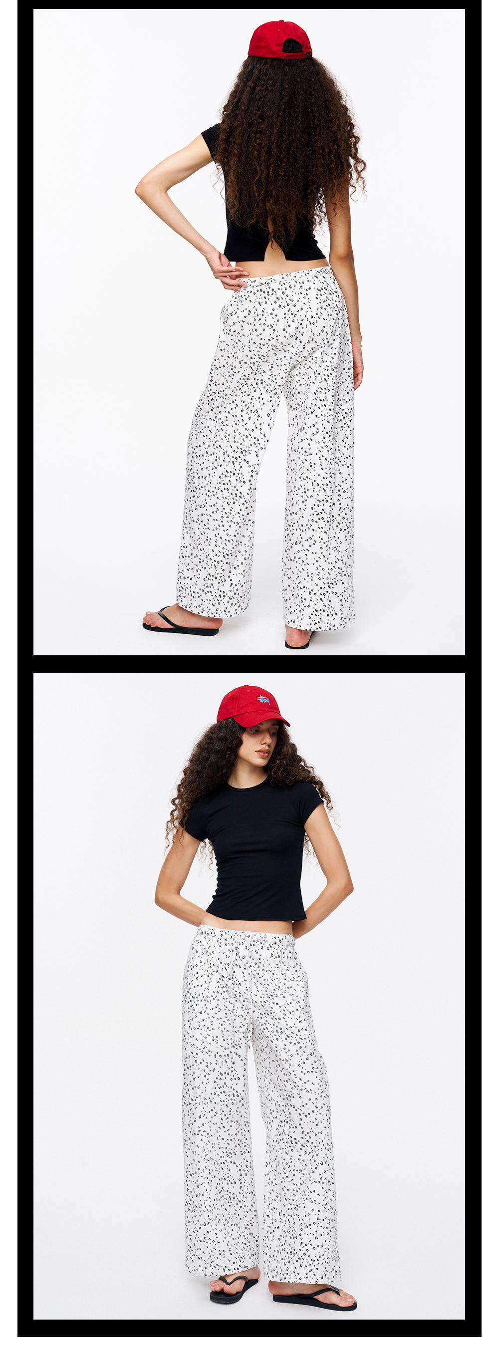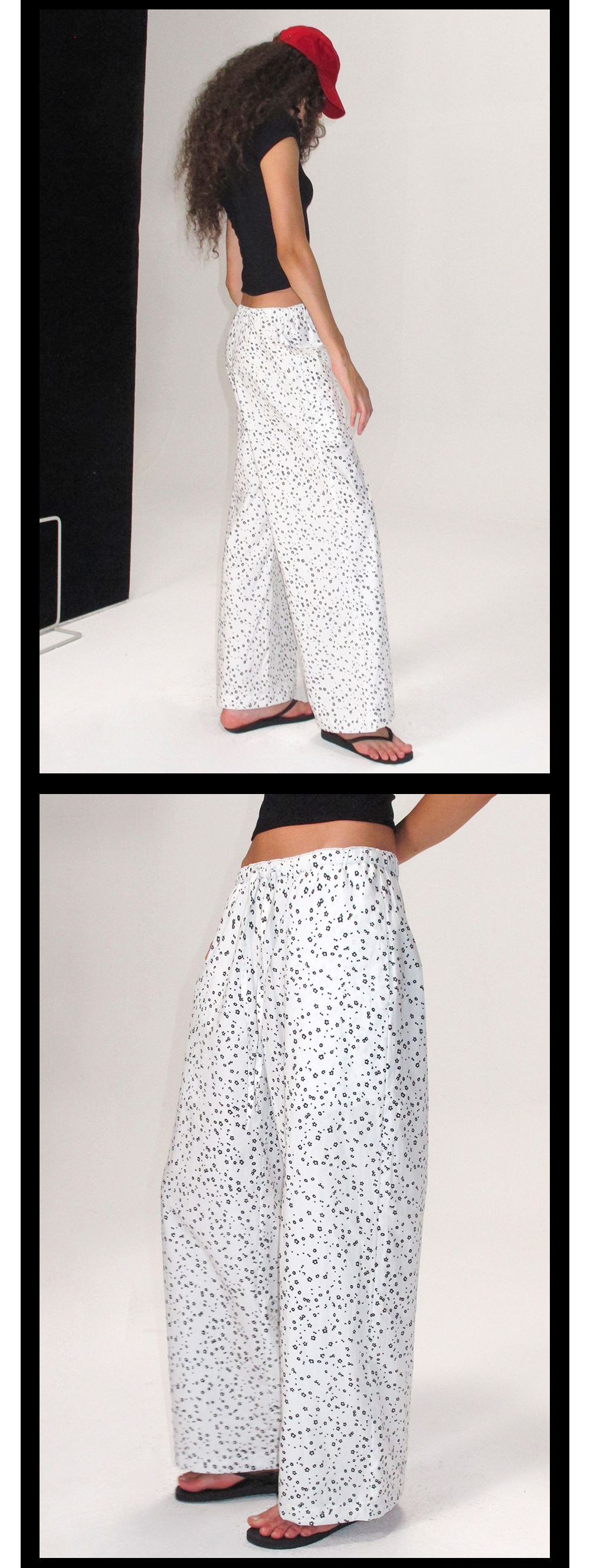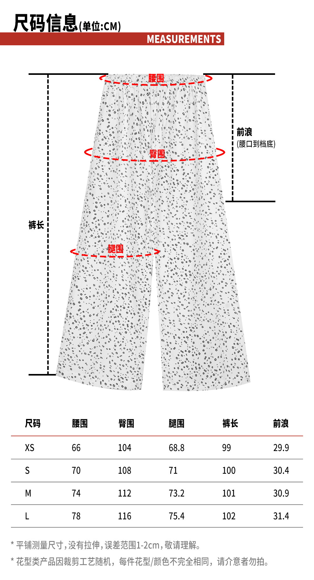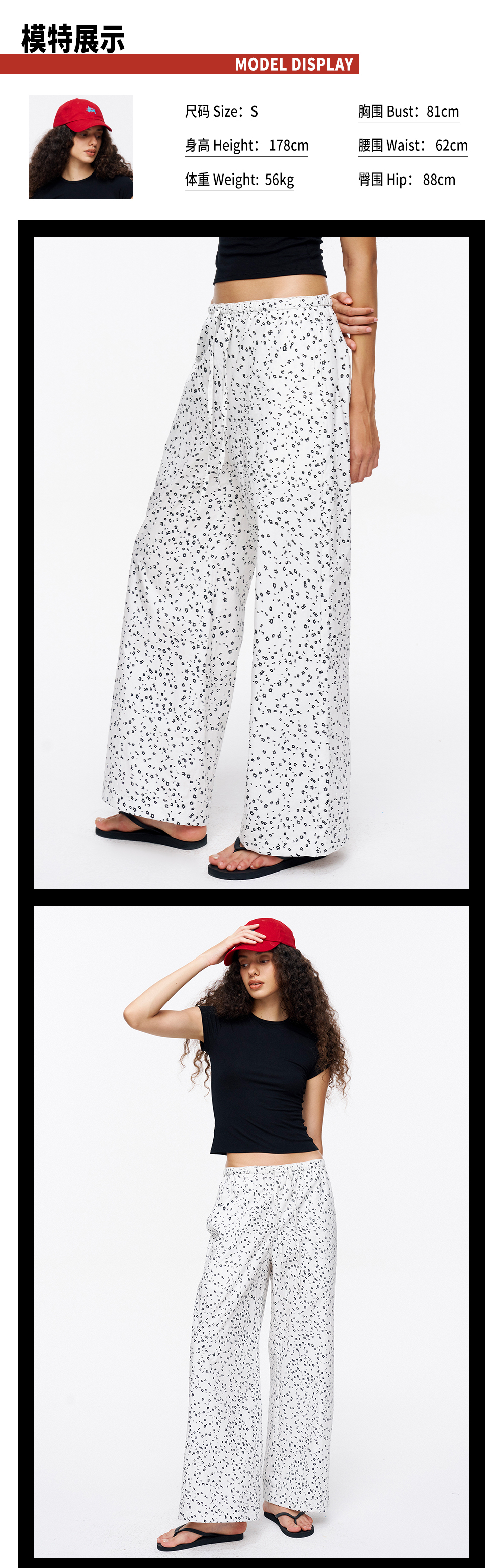 TR她热 随性出街 白色碎花抽绳花边松紧腰百搭阔腿直筒休闲裤