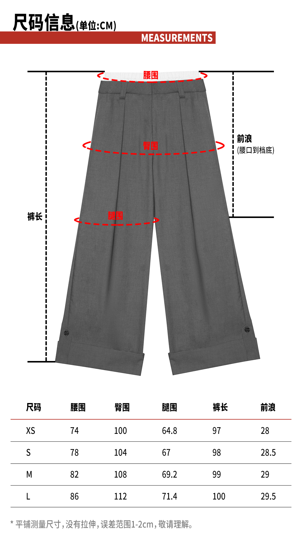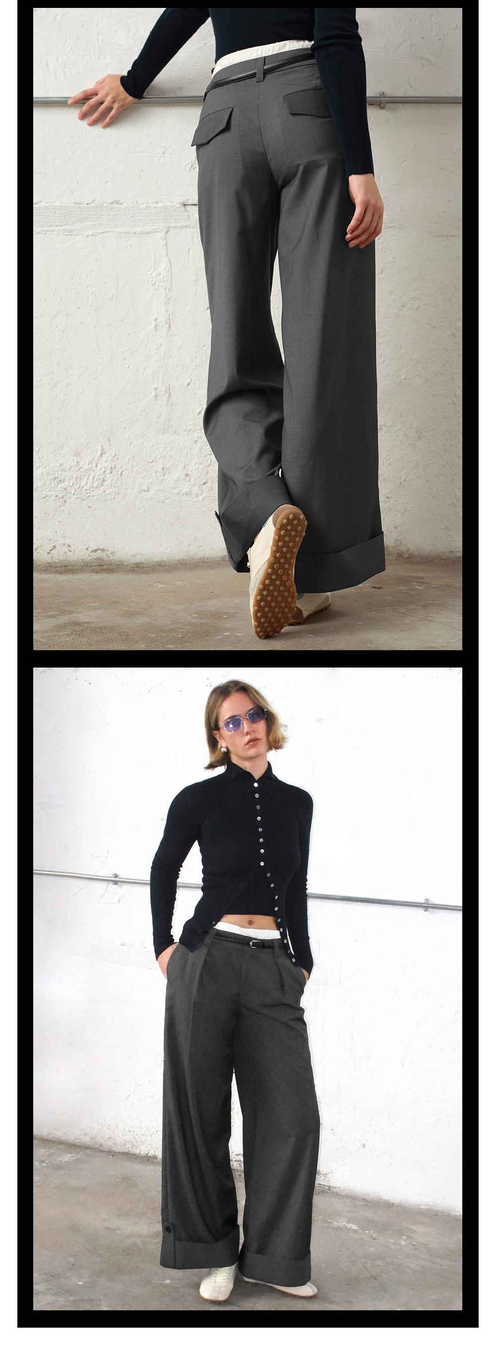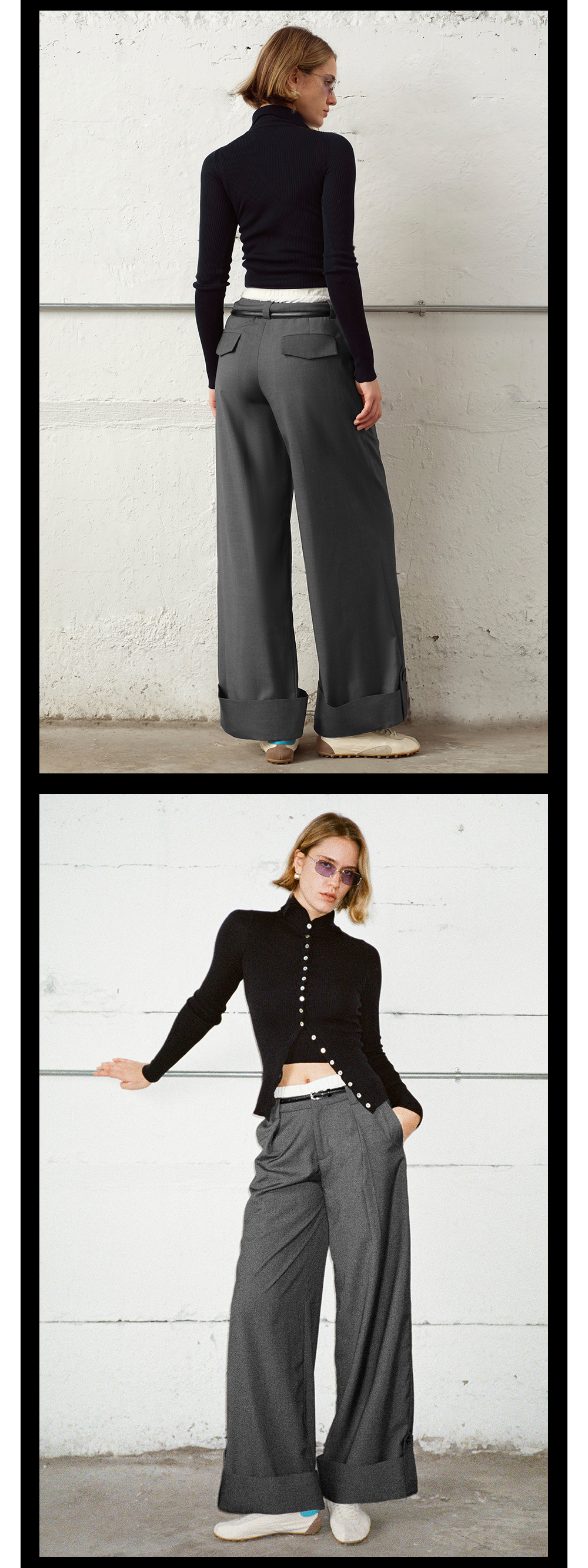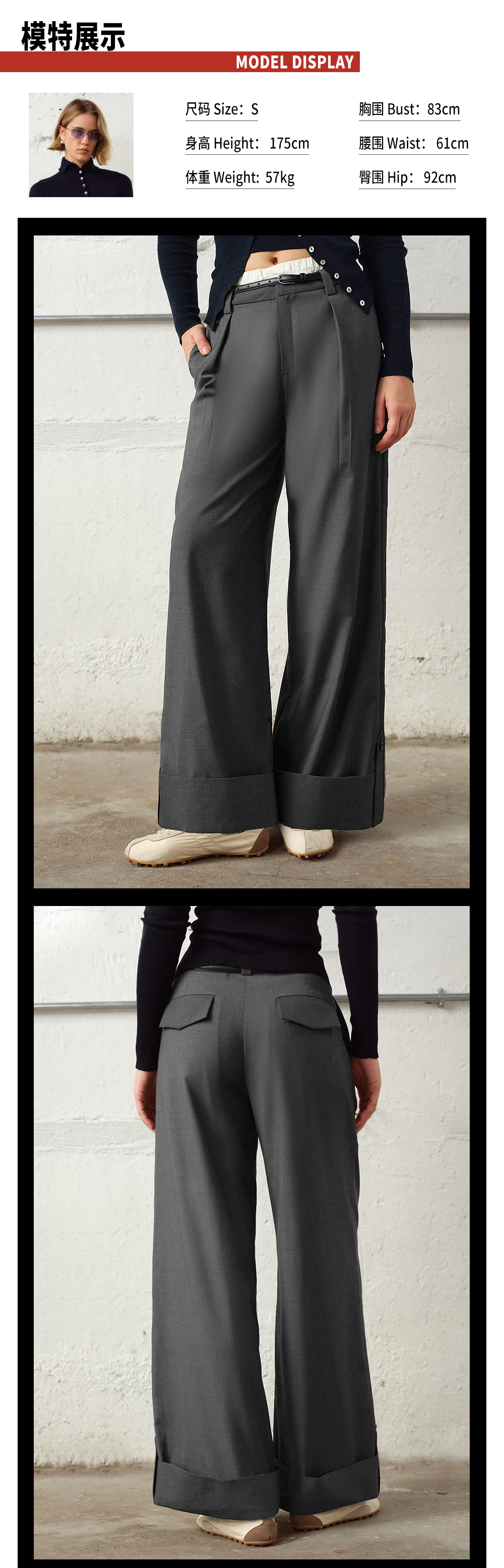 TR她热 都市丽人 灰白撞色拼接翻边通勤百搭西装阔腿裤