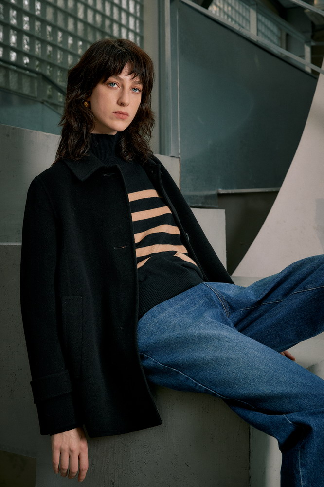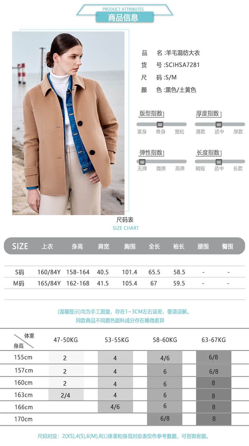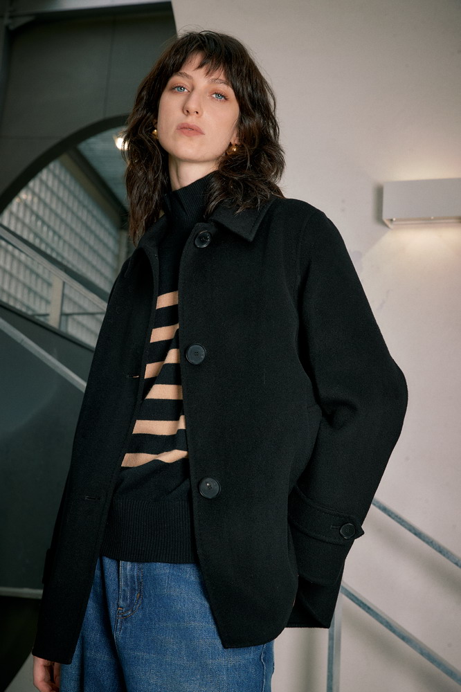 ICB日系秋季通勤宽松羊毛桑蚕丝混纺方领毛呢外套短大衣商场同款