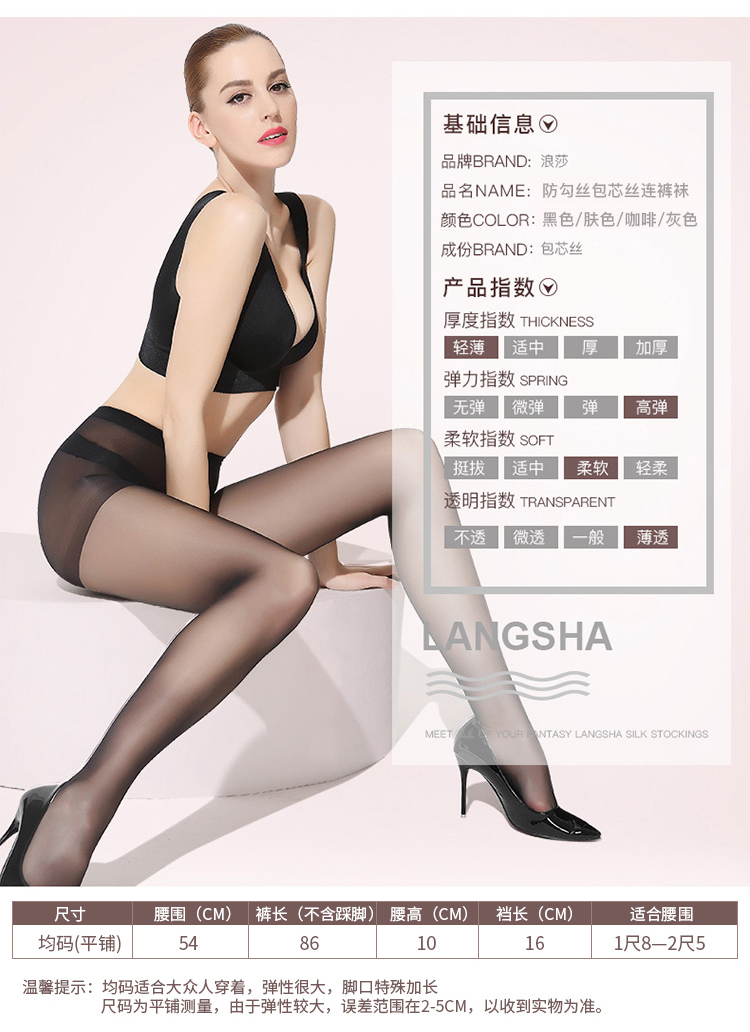 浪莎丝袜女12双春夏超薄连裤袜6黑6肤 均码ZT6615a-12