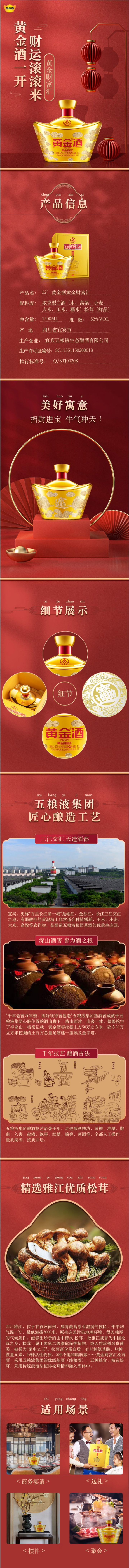 【健康礼赠】五粮液 52度 黄金酒松茸酒 1.5L*1瓶礼盒装