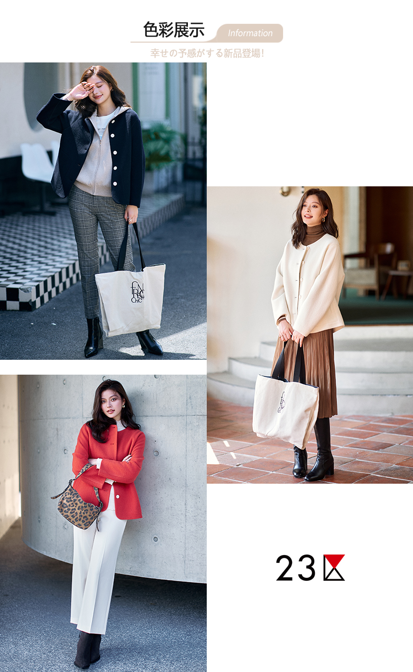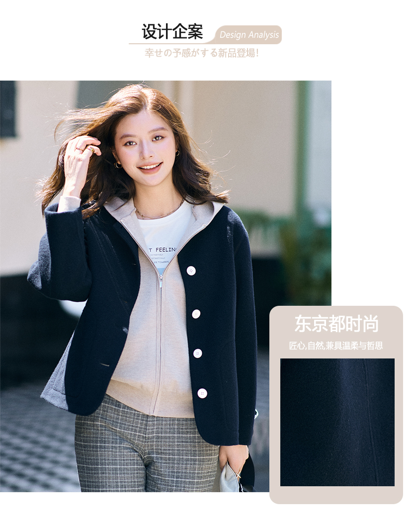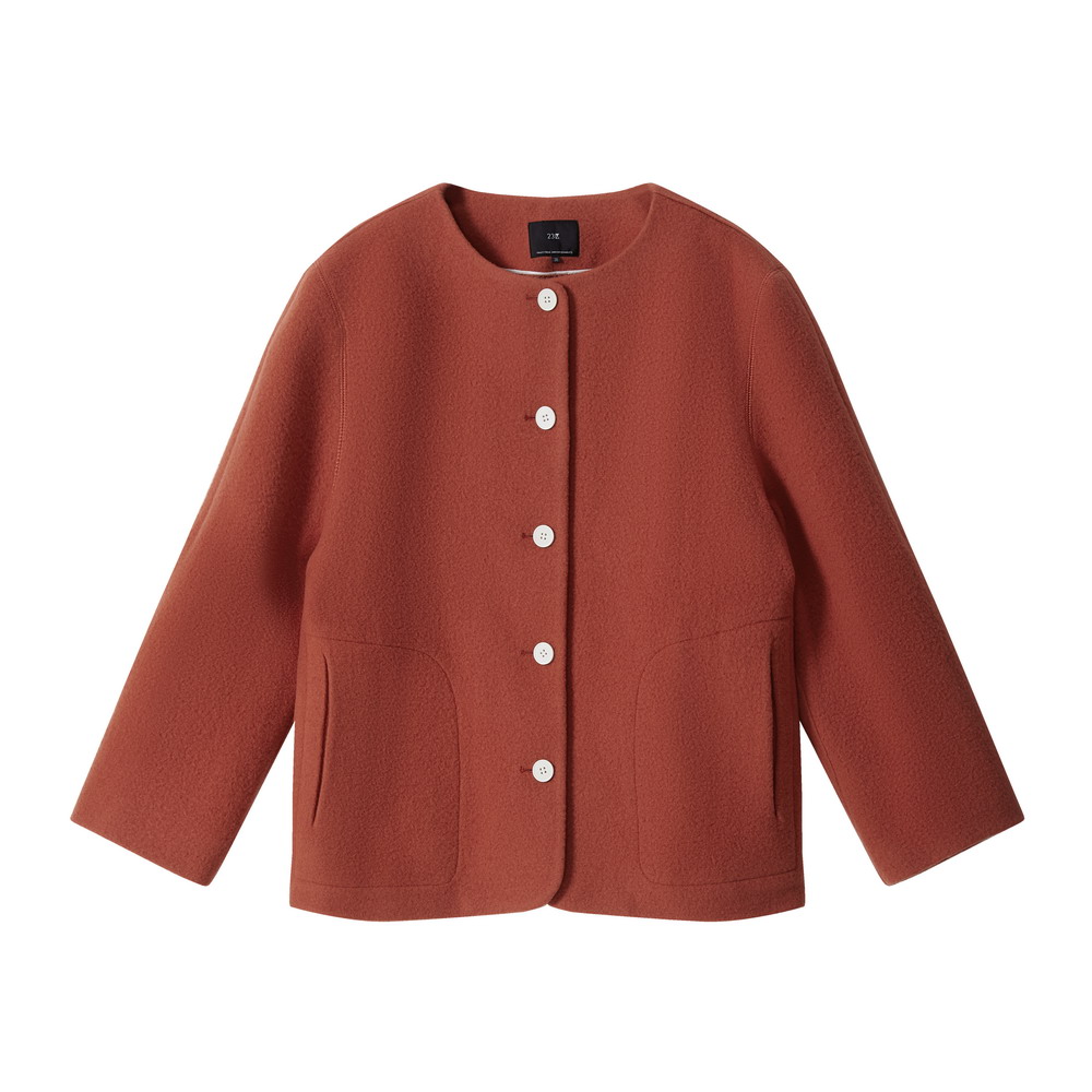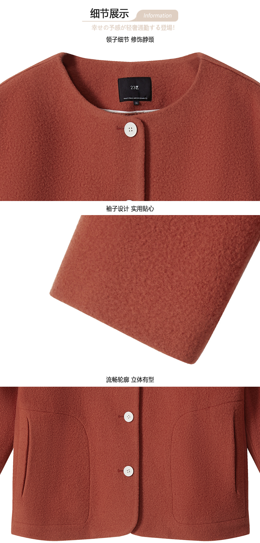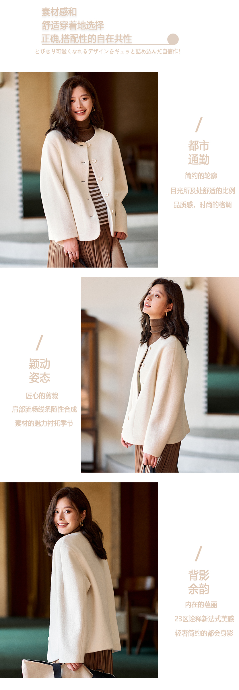 23区日系春季通勤宽松款羊毛混纺圆领毛呢外套休闲上衣商场同款