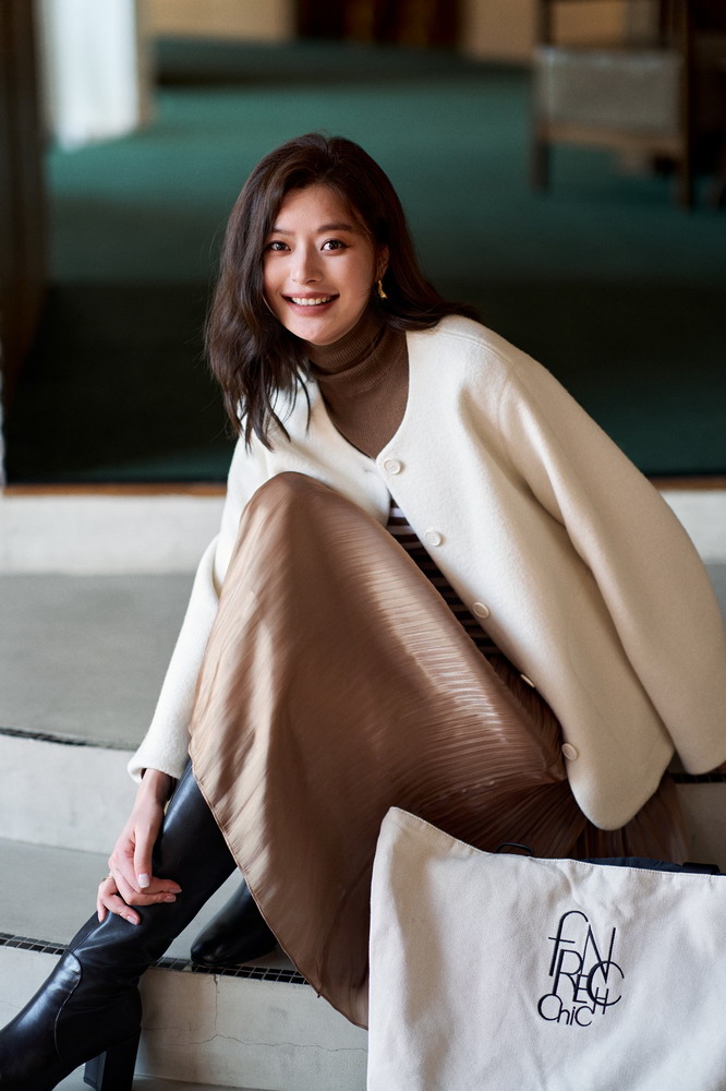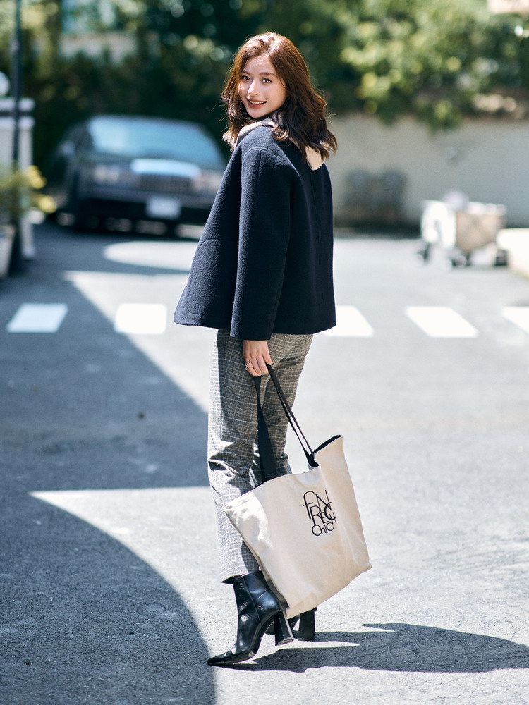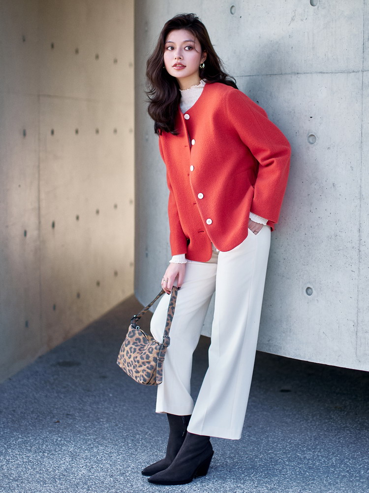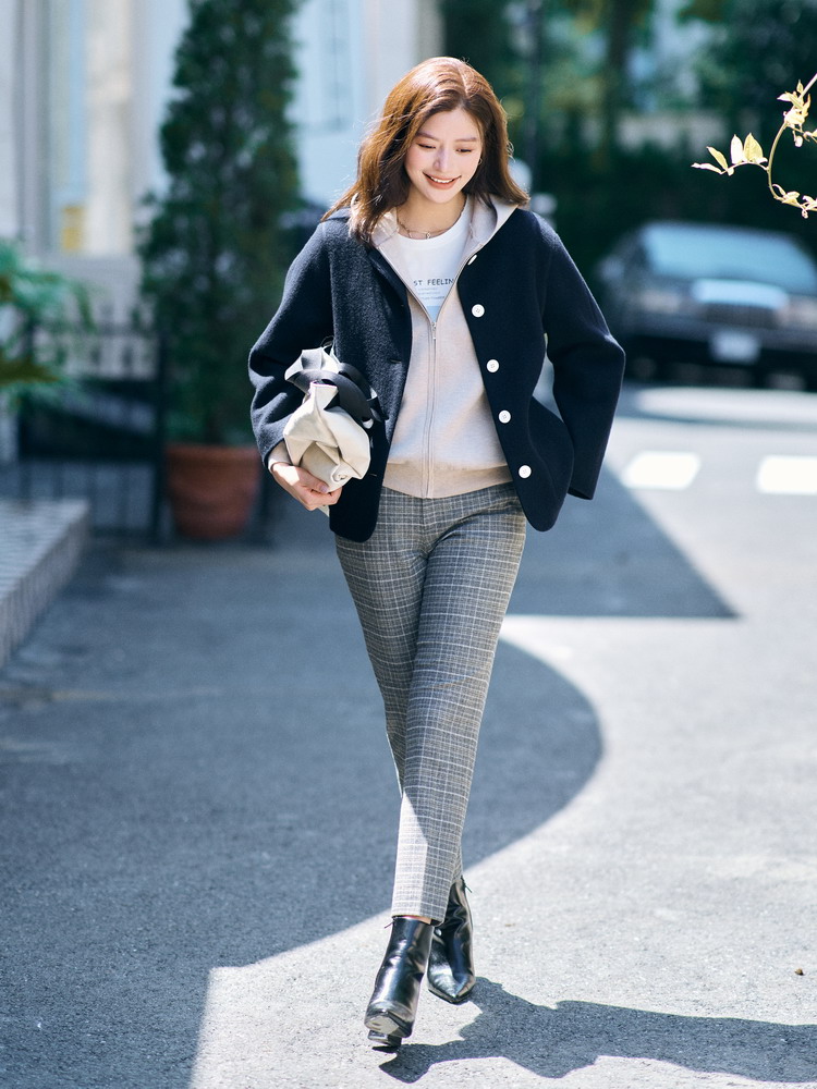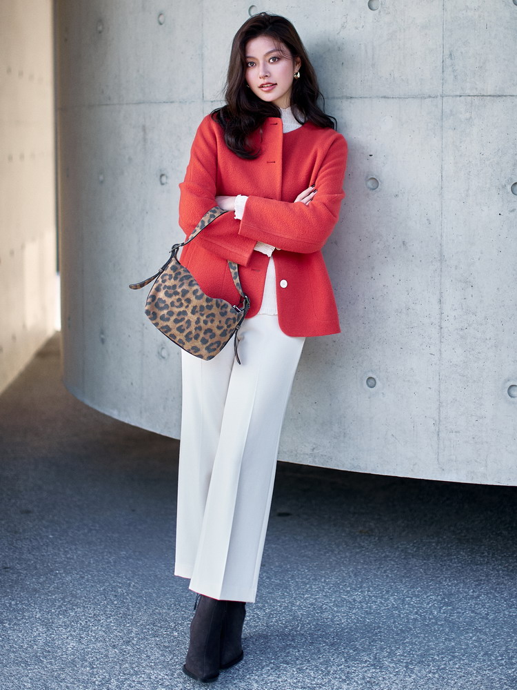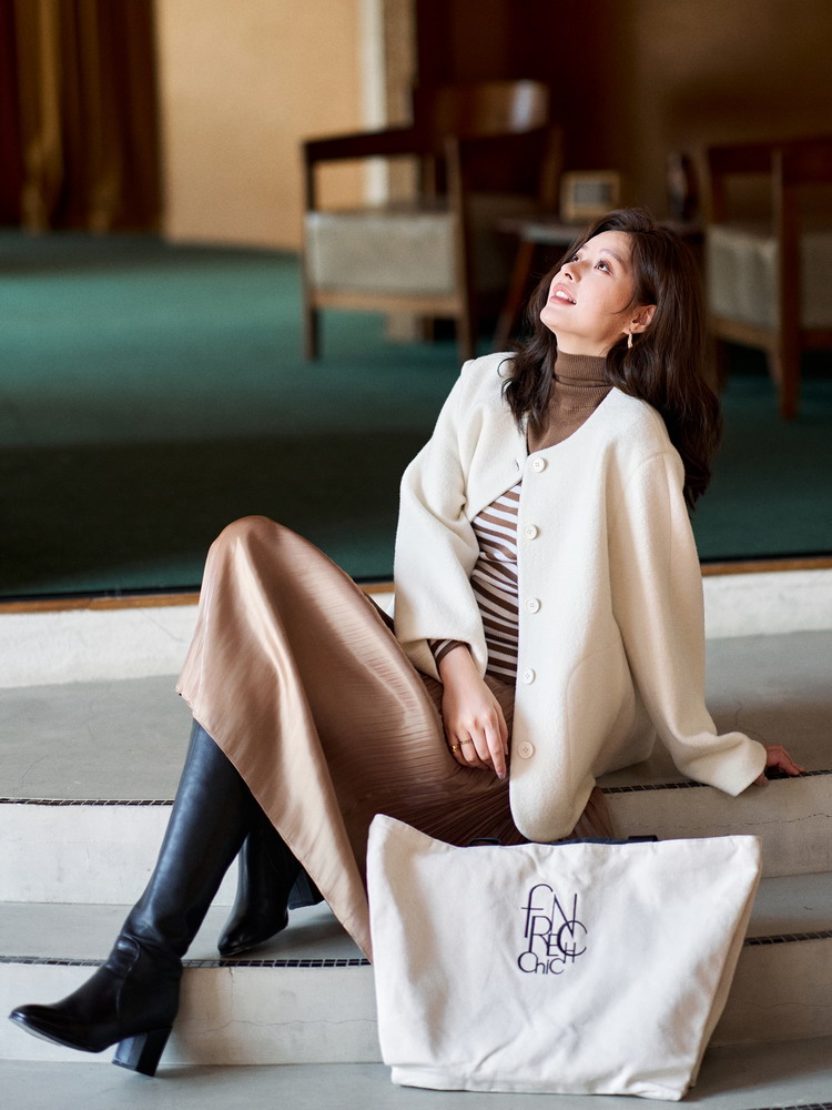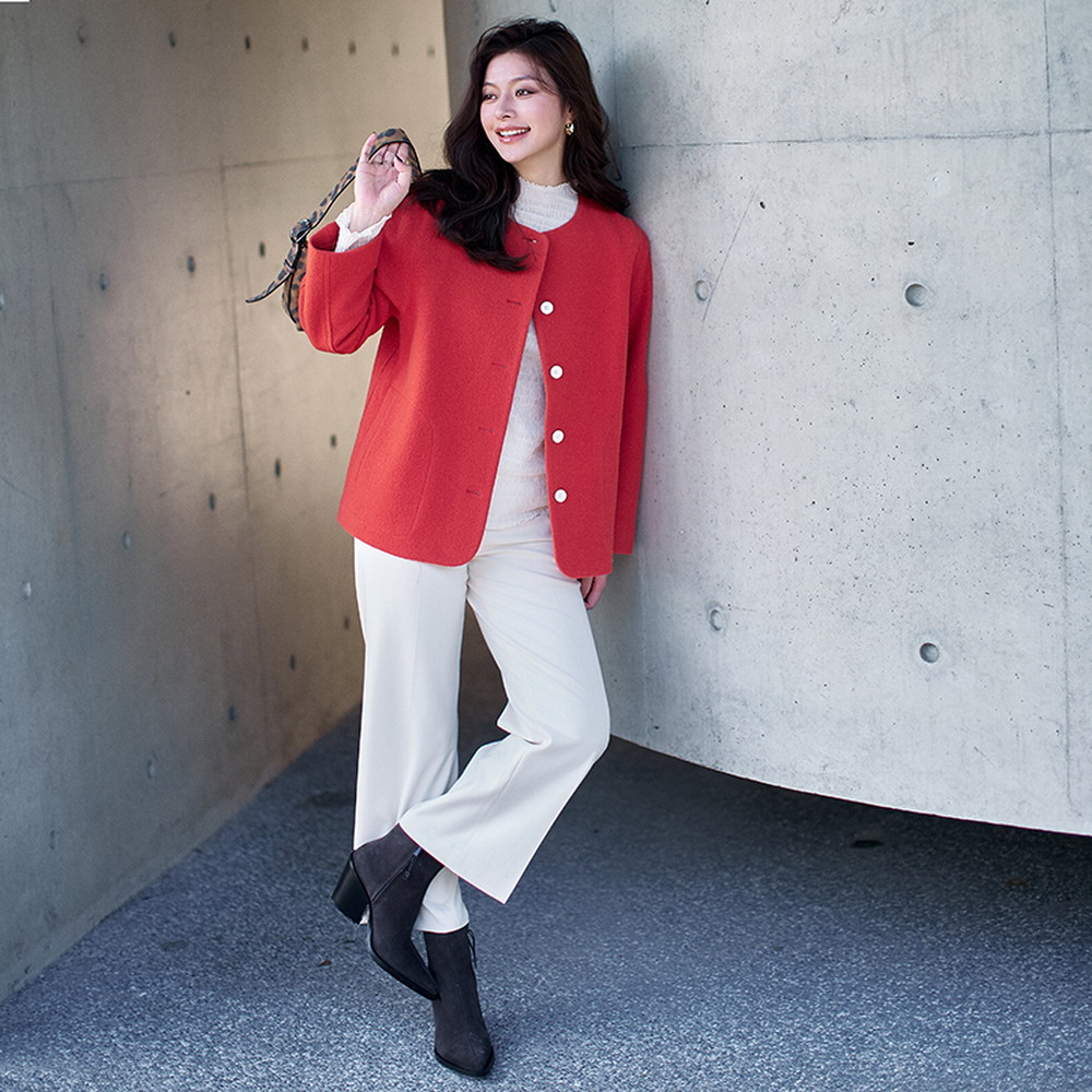 23区日系春季通勤宽松款羊毛混纺圆领毛呢外套休闲上衣商场同款