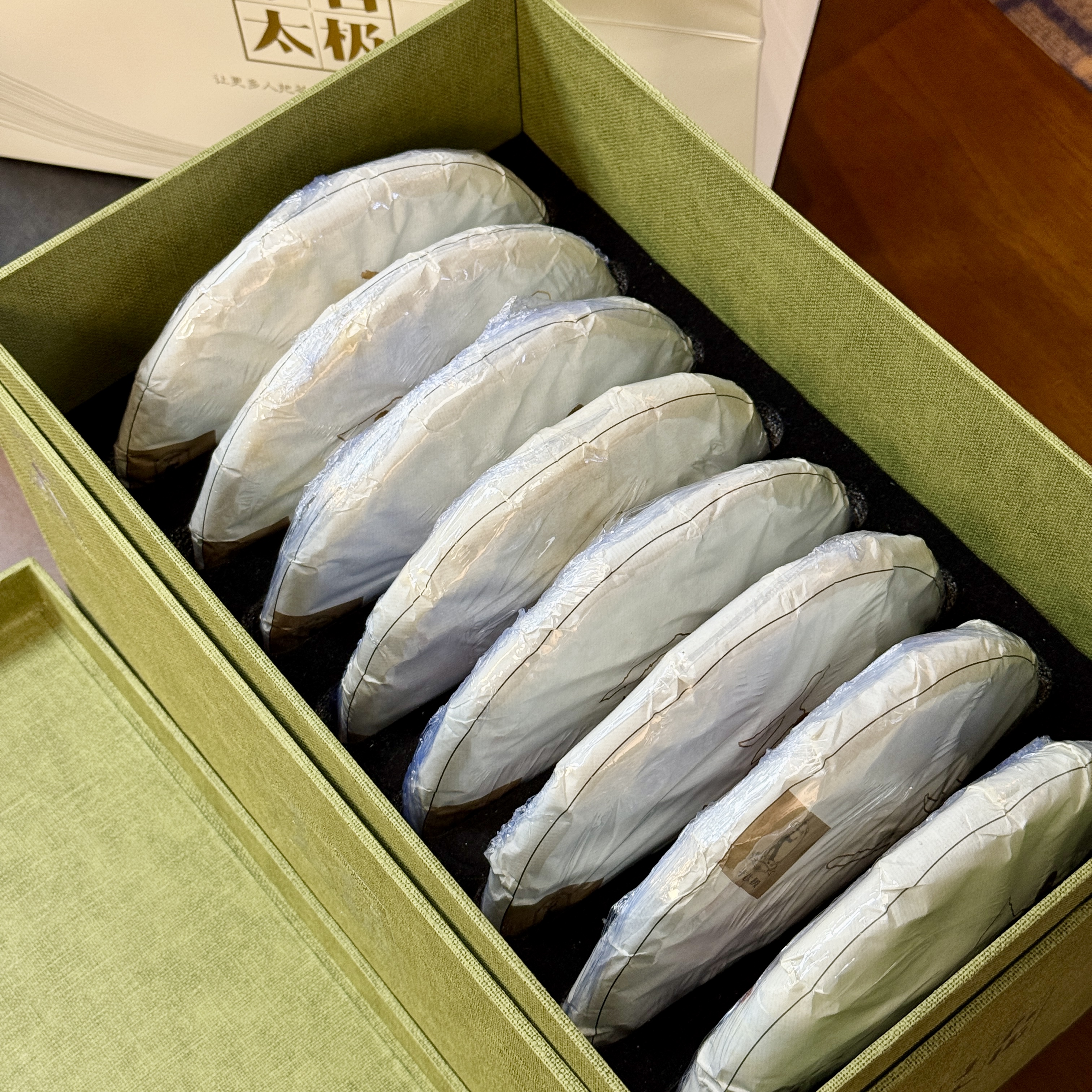 太极禅才者太极八式国潮新品,生茶套装(3040克)8片*380克;熟茶套装(3040克)8片*380克——套装助力品饮、收藏及茶礼。 太极禅《太极八式》八式太极拳动作舒展大方,柔和平稳,圆活连贯,由简至繁;练起来轻松自如,阴阳相合,刚柔相济,均匀缓慢,如行云流水,连绵不断。